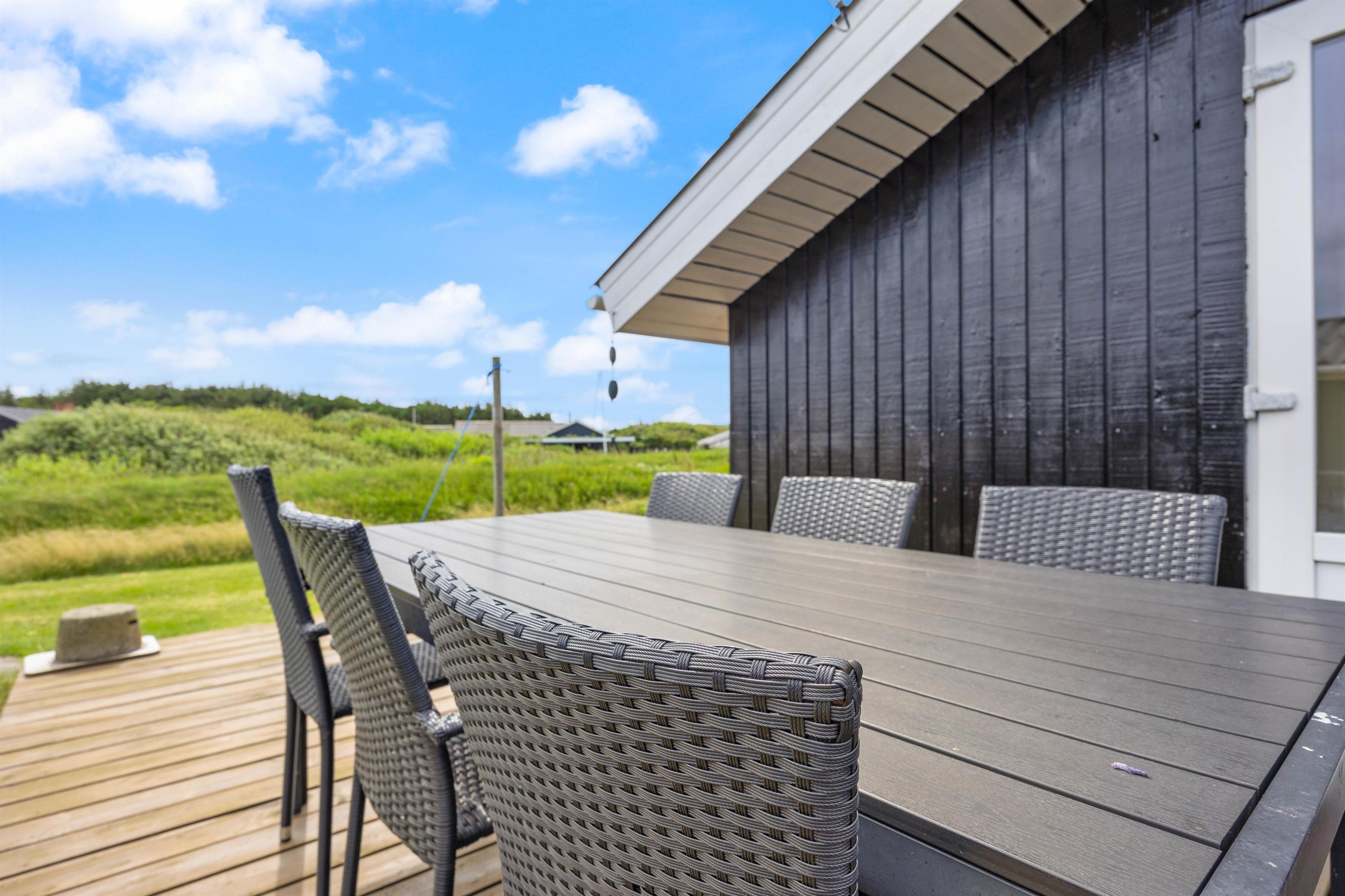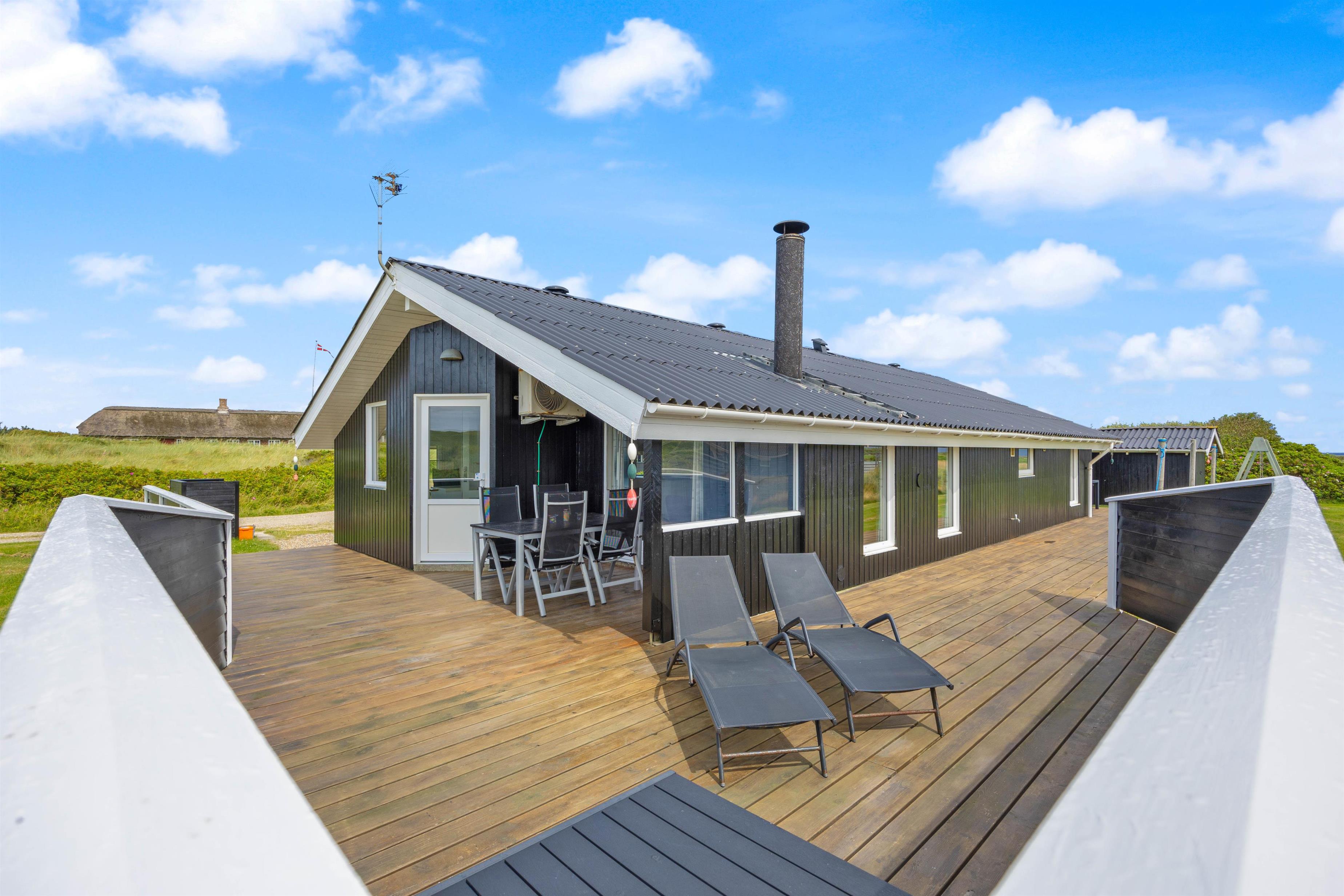 Dette skønne, lyse og velindrettede sommerhus til 6 personer ligger på en smuk plænegrund blot 300 meter fra Vesterhavet. Dette sommerhus er et ideelt valg til børnefamilien, da den store plænegrund giver masser plads til leg og boldspil. Desuden er der en sauna, så I rigtig kan få slappet af på jeres ferie.
