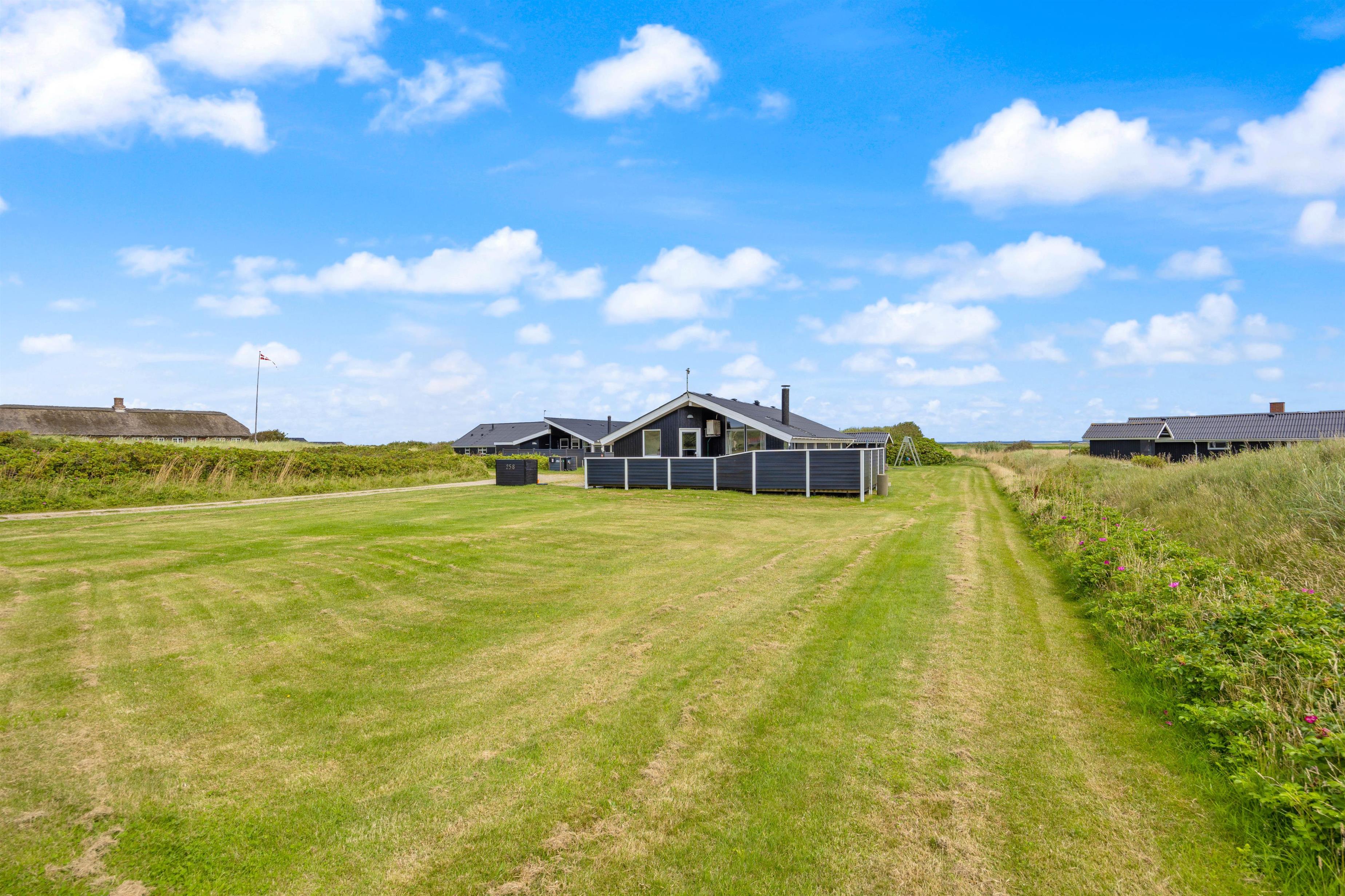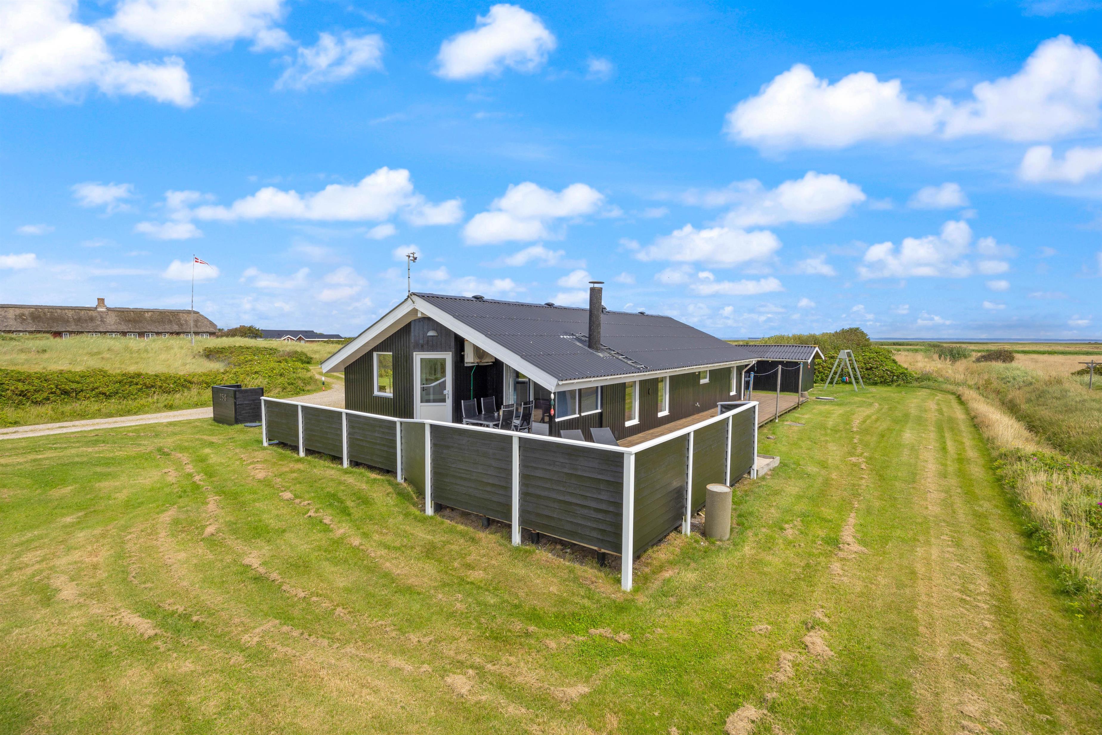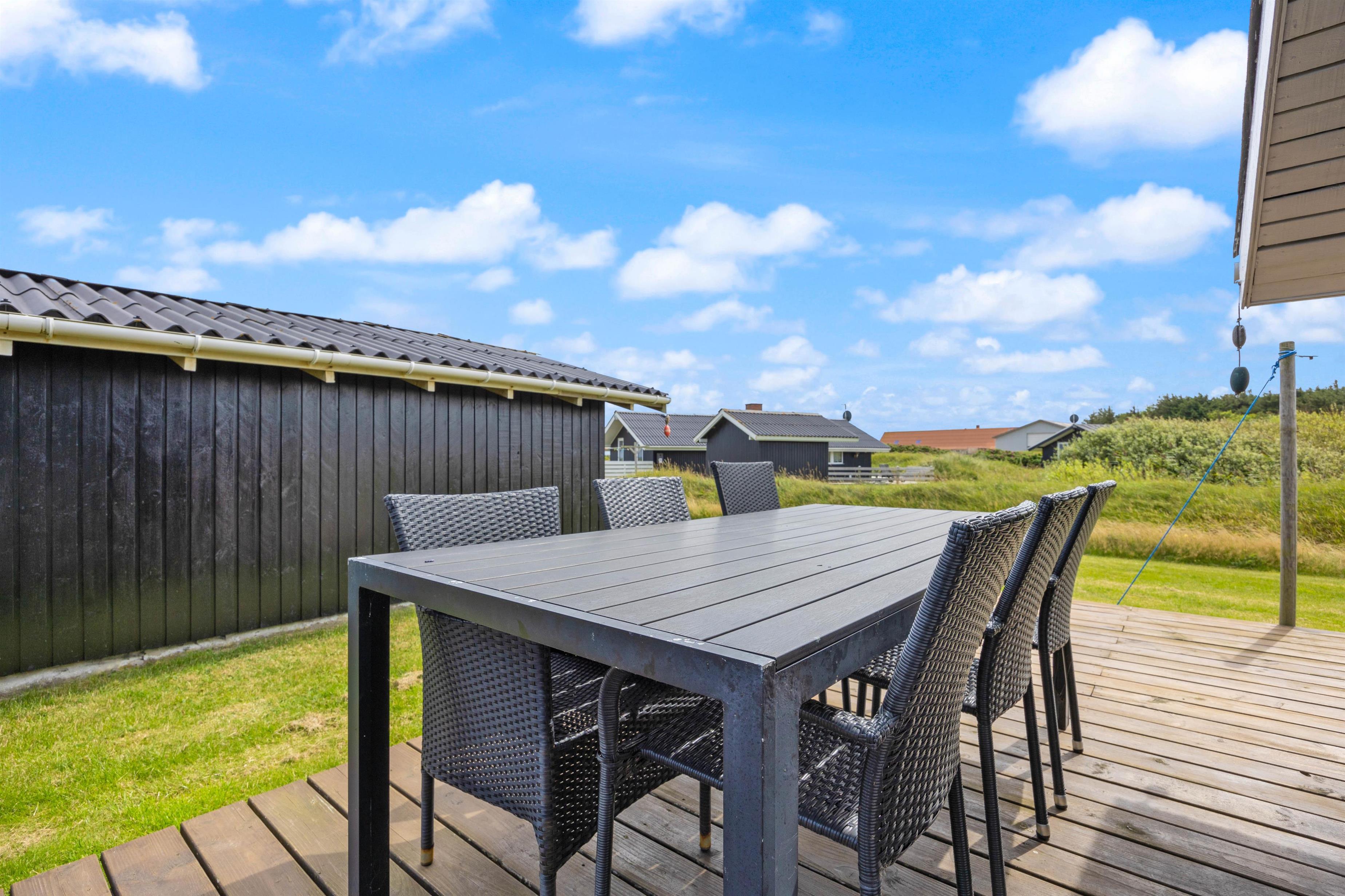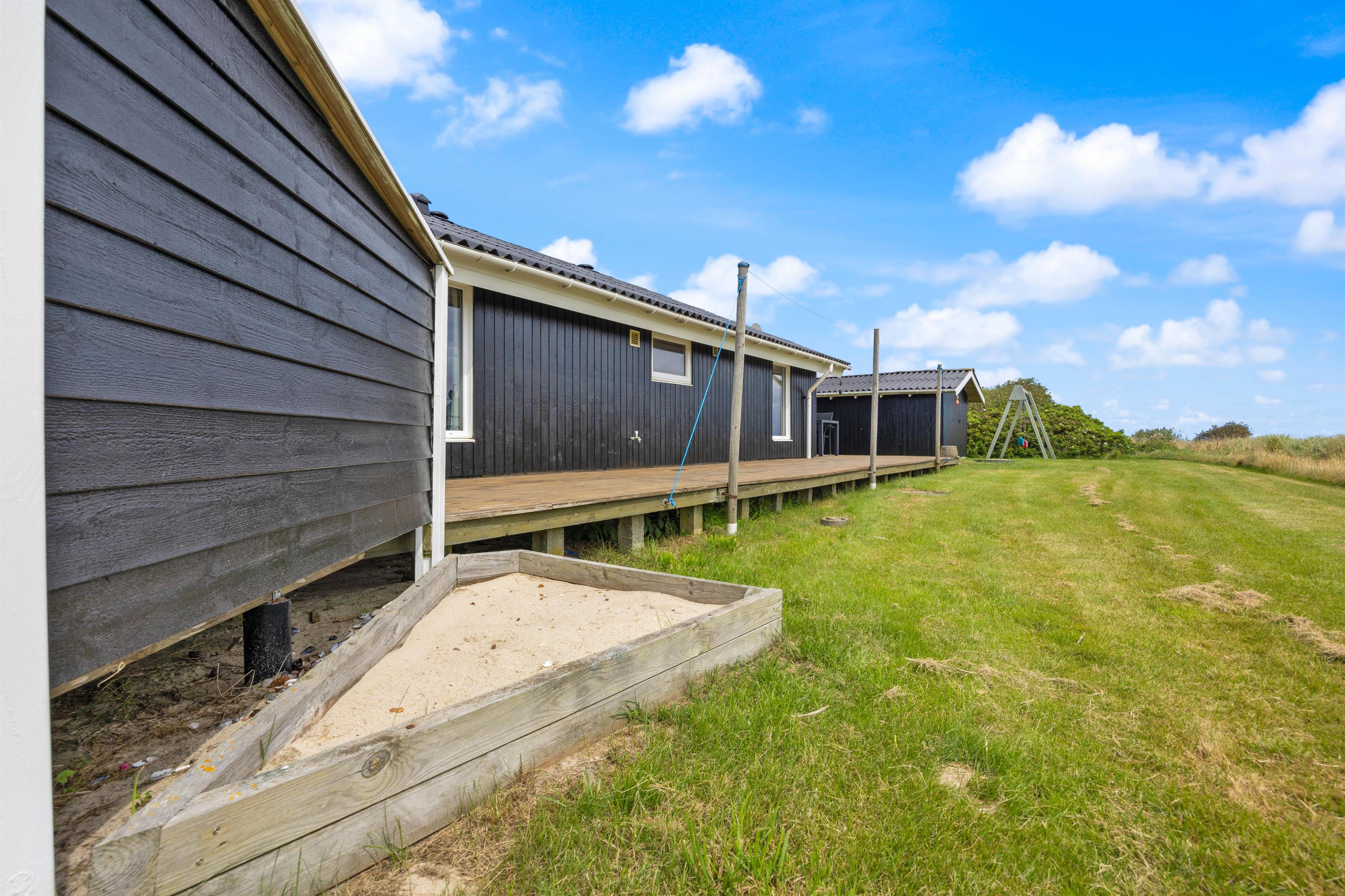 Hvis I kommer til vestkysten for at nyde den skønne natur, så er dette sommerhus et oplagt valg. Her er der nemlig en skøn plænegrund, som inviterer til leg for både børn og vokse. Her kan I spille fodbold og andre havespil, og for de mindste gæster er der både gyngestativ og sandkasse.