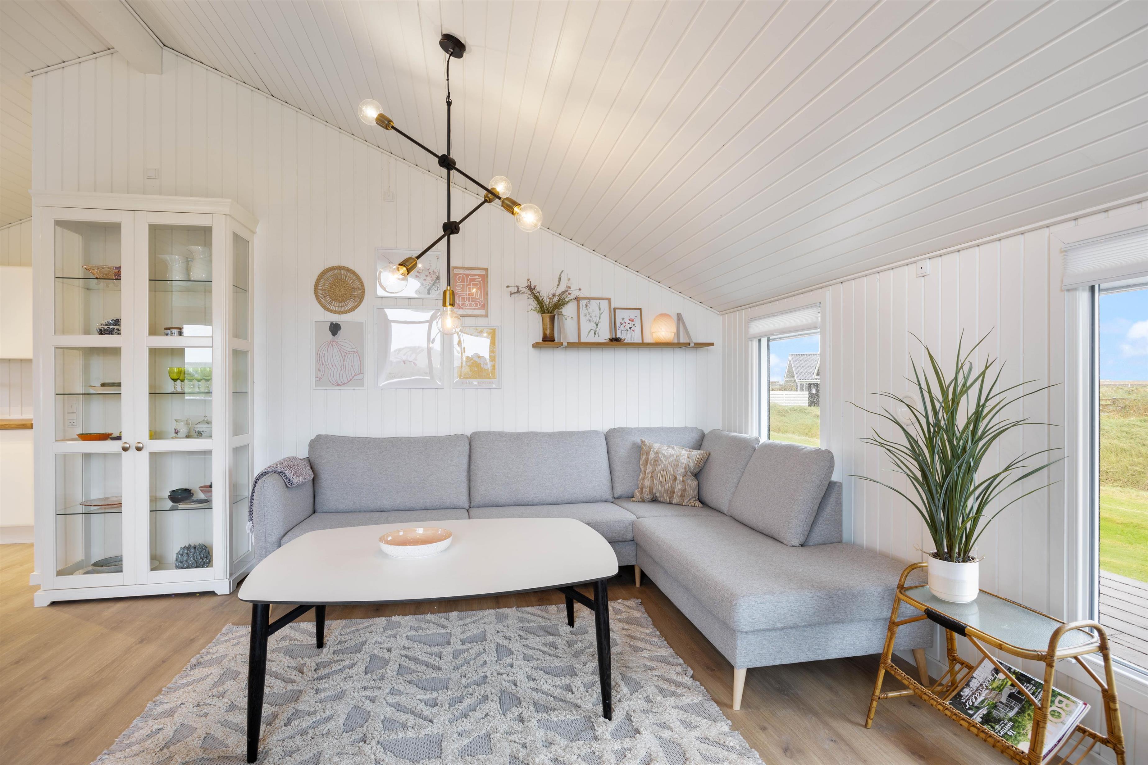 Sommerhuset har en enkel, moderne og indbydende indretning med både gode møbler og faciliteter. Derudover blev sommerhuset renoveret i 2023, og alt fremstår derfor både lyst og velholdt. Hjertet af sommerhuset er med garanti det store køkkenalrum, hvor familien naturligvis samles i løbet af dagen.