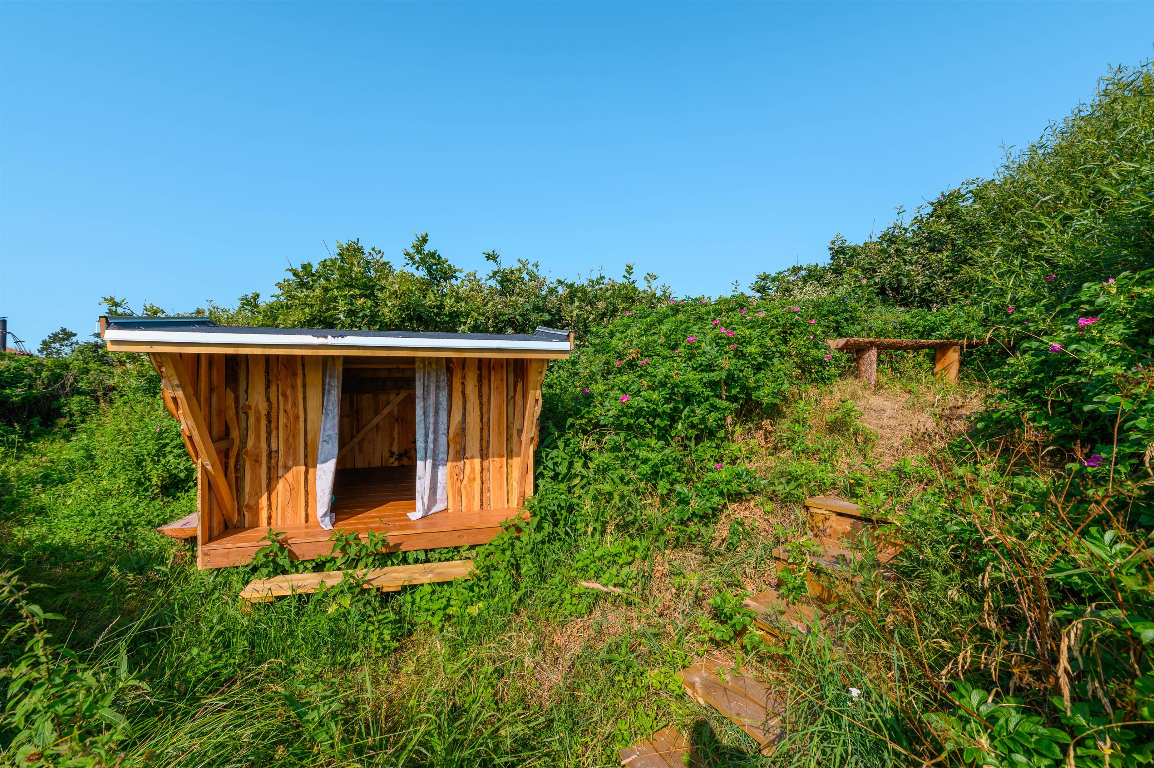 Har I lyst til en nat i det fri i det gode vejr? Så kan i benytte jer af den fine shelter, som ligger ved sommerhuset.