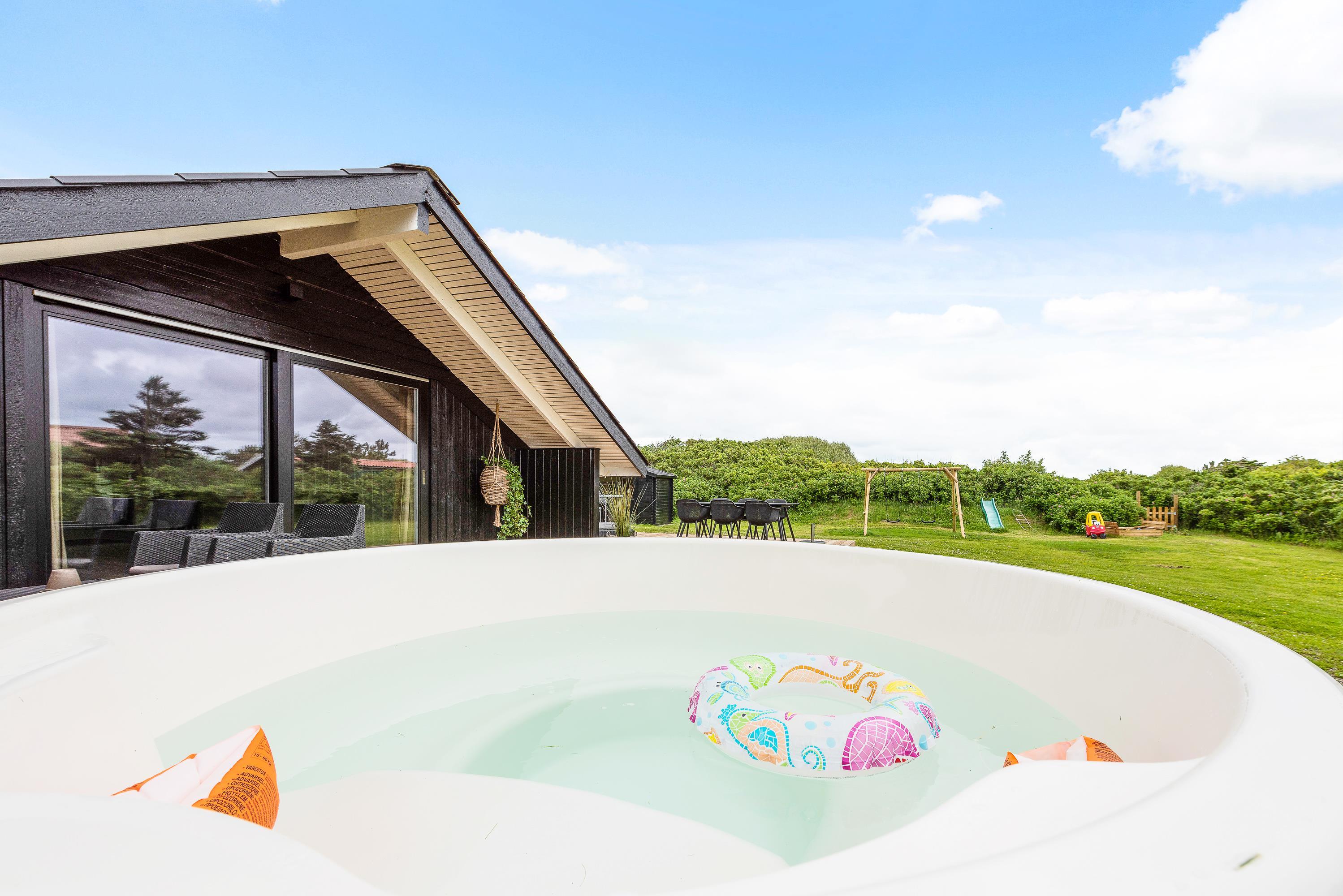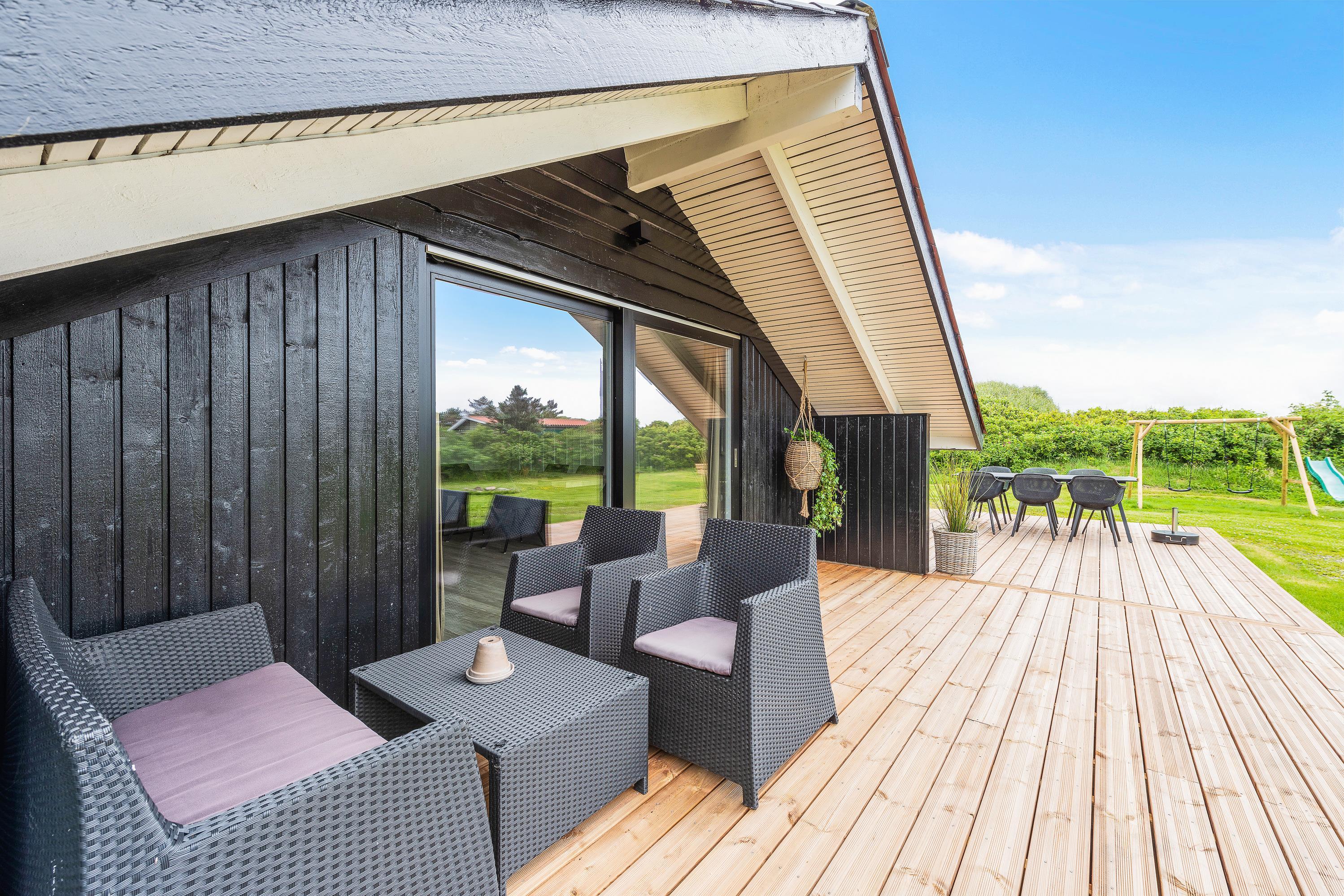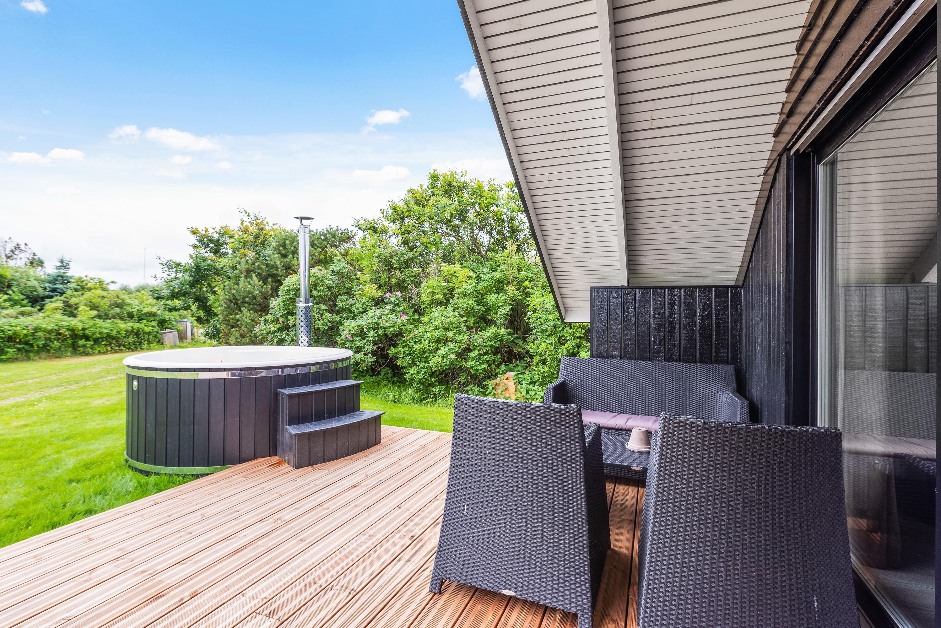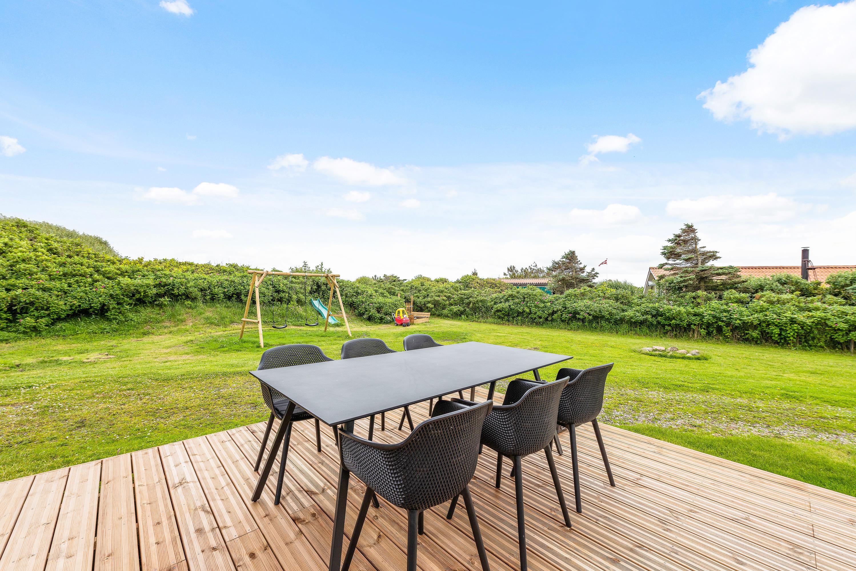 Også rundt om feriehuset har I gode muligheder for at slappe af og nyde fridagene i fulde drag. En stor og delvist overdækket terrasse med gode havemøbler og grill inviterer til masser af udeliv i den friske vesterhavsluft.