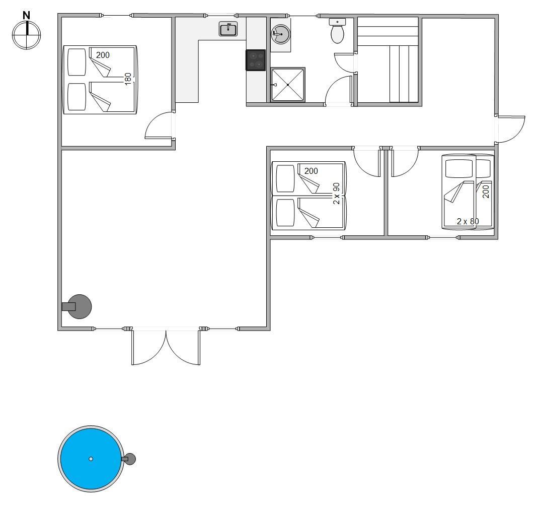 Et helt specielt highlight ved dette sommerhus er naturligvis det brændefyrede vildmarksbad. Via en lille ovn opvarmes det udendørs bassin og når vandet har opnået den perfekte temperatur, tager I plads i badet og lader jer forkæle af den velgørende varme. Hvad kan være bedre end et varmt bad under åben himmel?