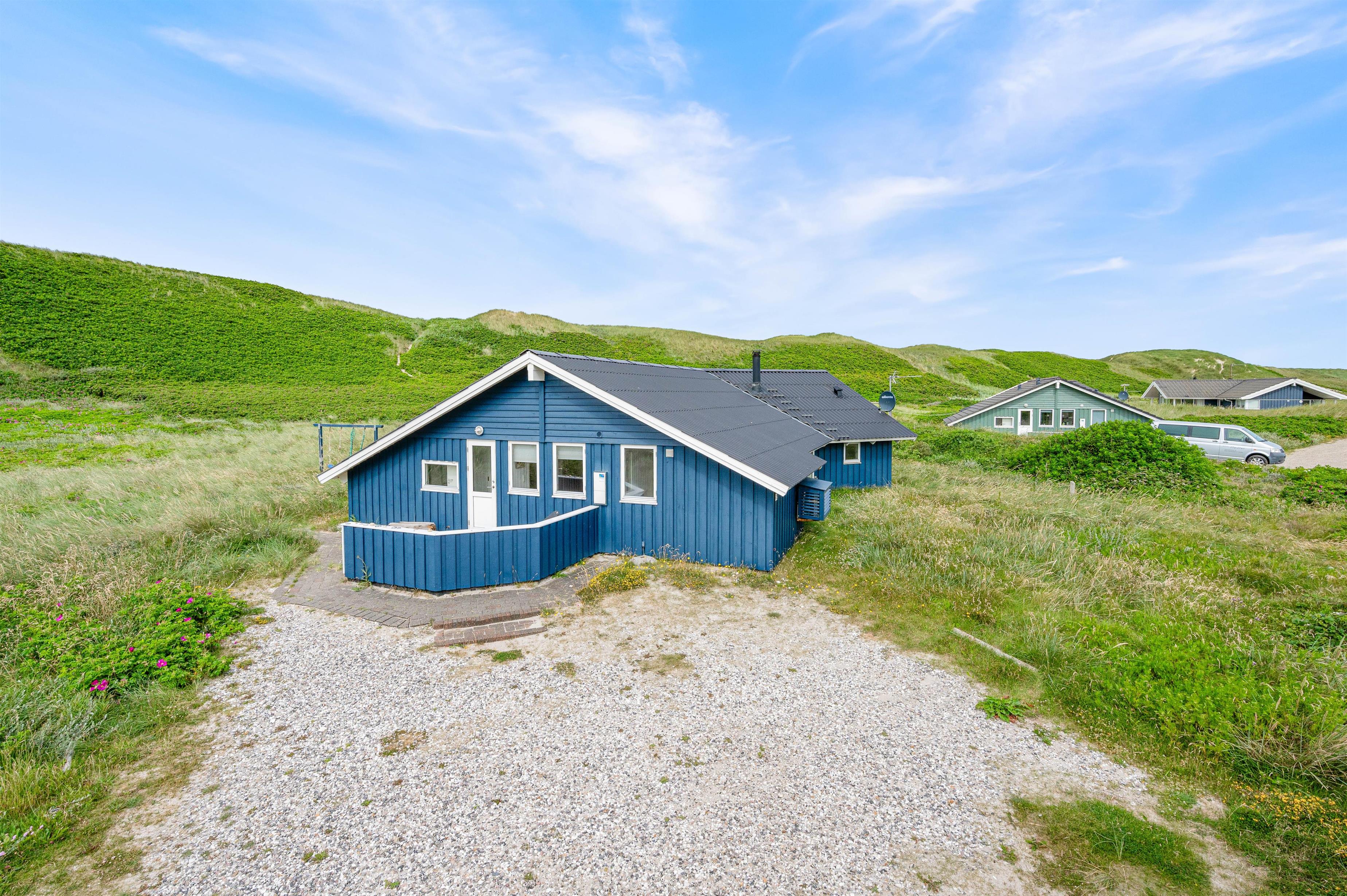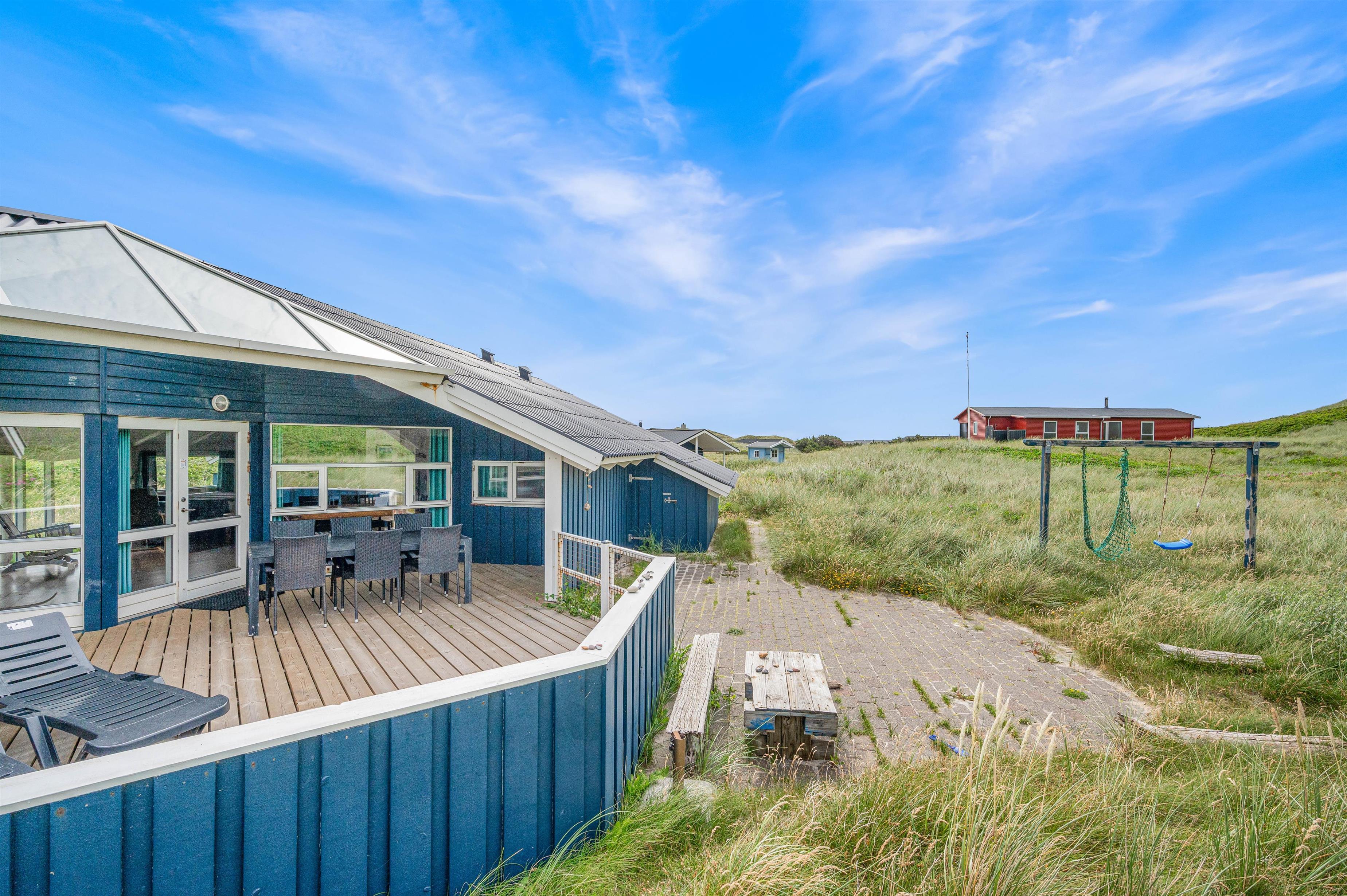 Nyd Vesterhavets brusen fra den dejlige lukkede og delvis overdækkede terrasse, hvor børnene og hunden kan opholde sig uden at gå på eventyr alene. Direkte ud til klitterne og kun 100 meter fra Vesterhavet.