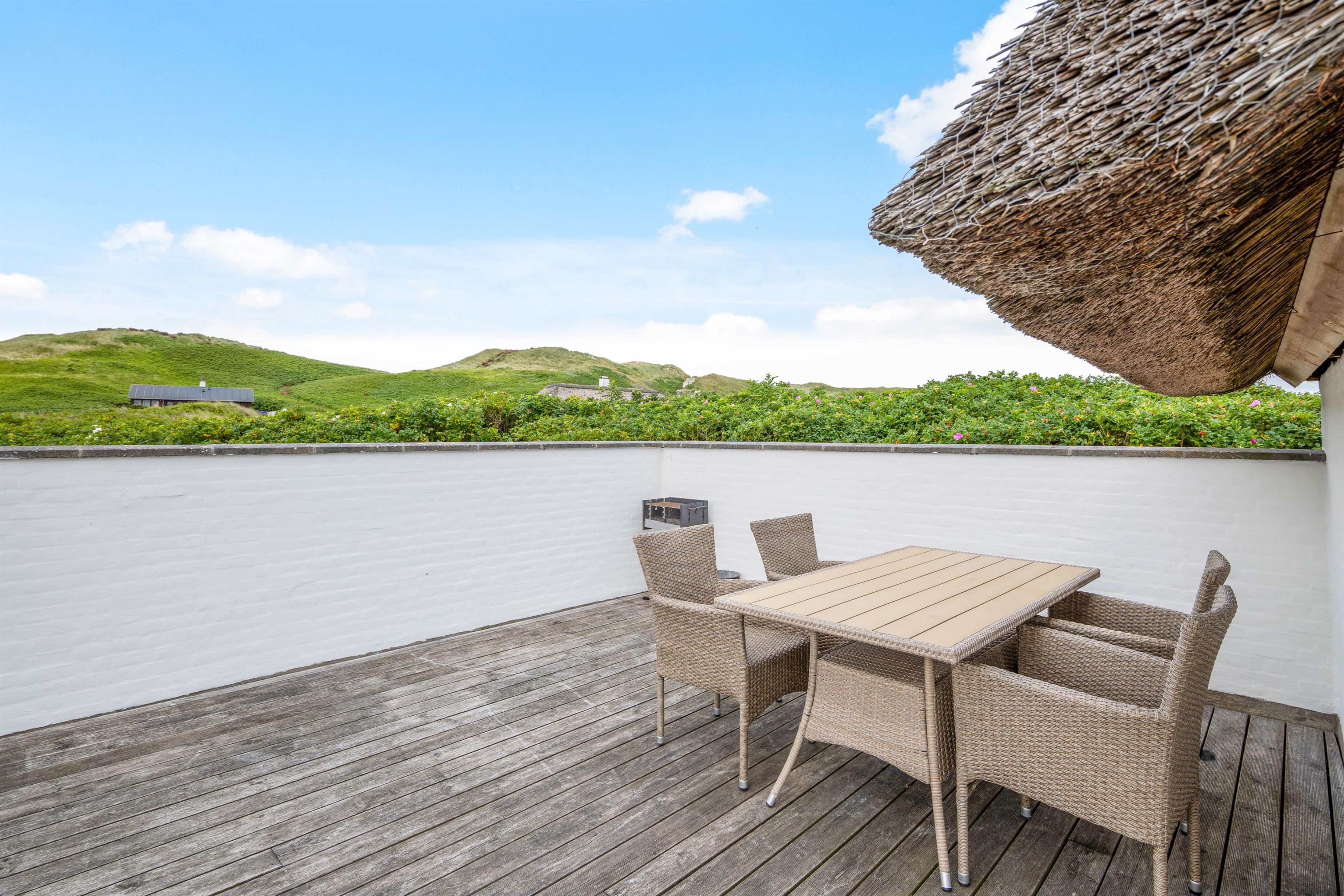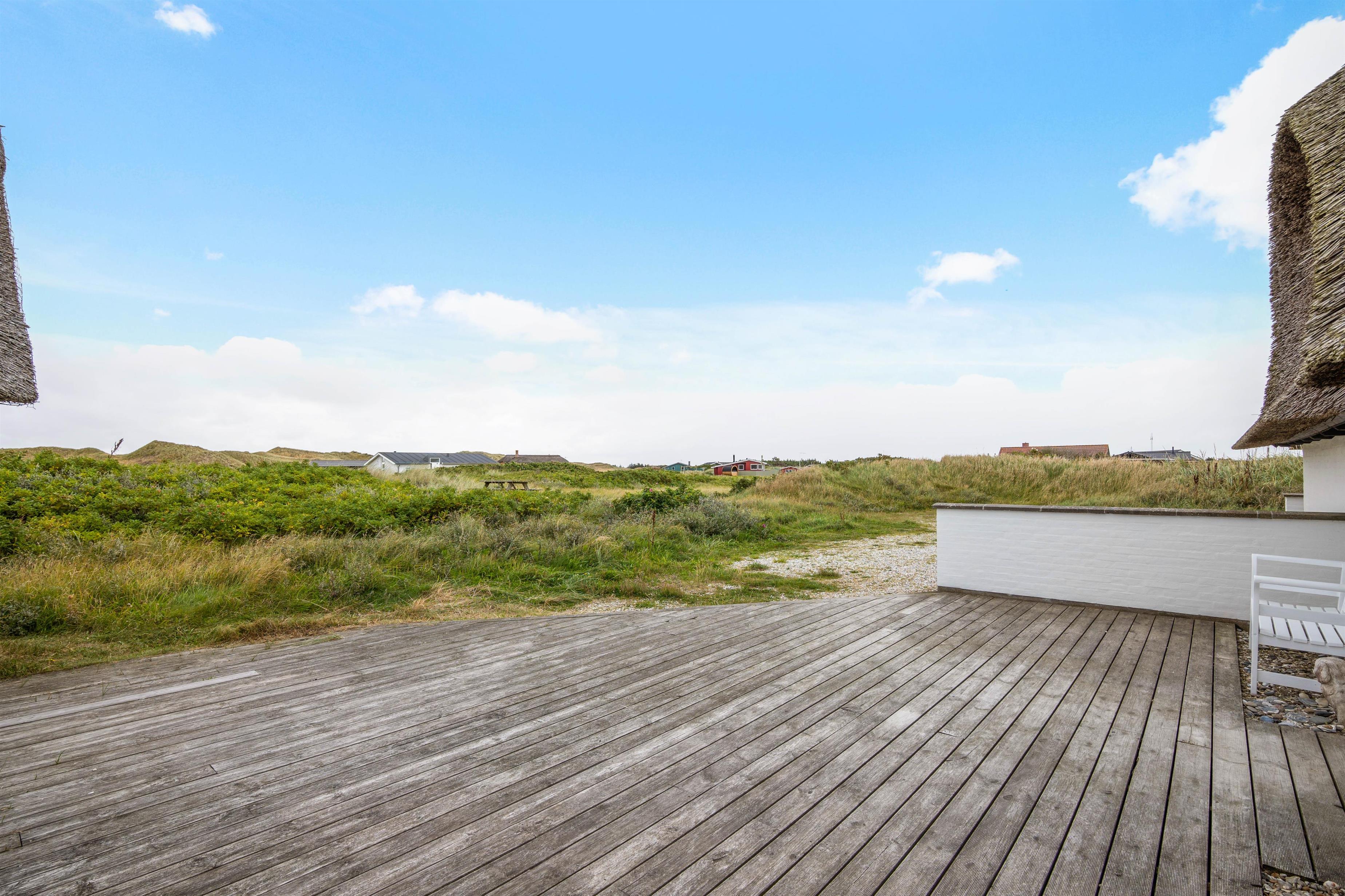 Huset har to dejlige træterrasser. En sydvendt, delvist overdækket og delvist afskærmet samt en læfyldt terrasse mod øst. Fra begge terrasser er der en vidunderlig udsigt over det smukke klitlandskab. Hav og strand ligger kun 200 m fra huset, og det giver rigtig gode muligheder for mange skønne traveture.