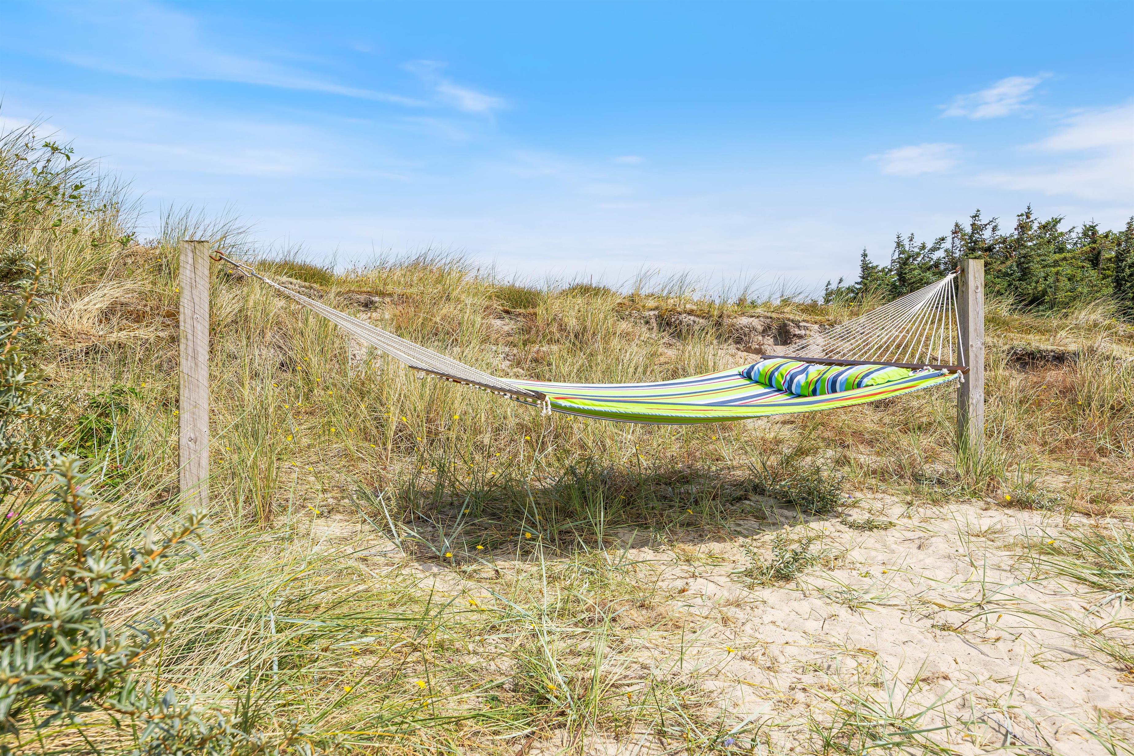 Huset ligger på en naturskøn grund, omgivet af klitter og smuk natur. Her er rig mulighed for at finde ro og nyde den friske luft. Med kun 400 meter til havet er det nemt at tage en forfriskende dukkert eller gå en afslappende tur langs stranden.