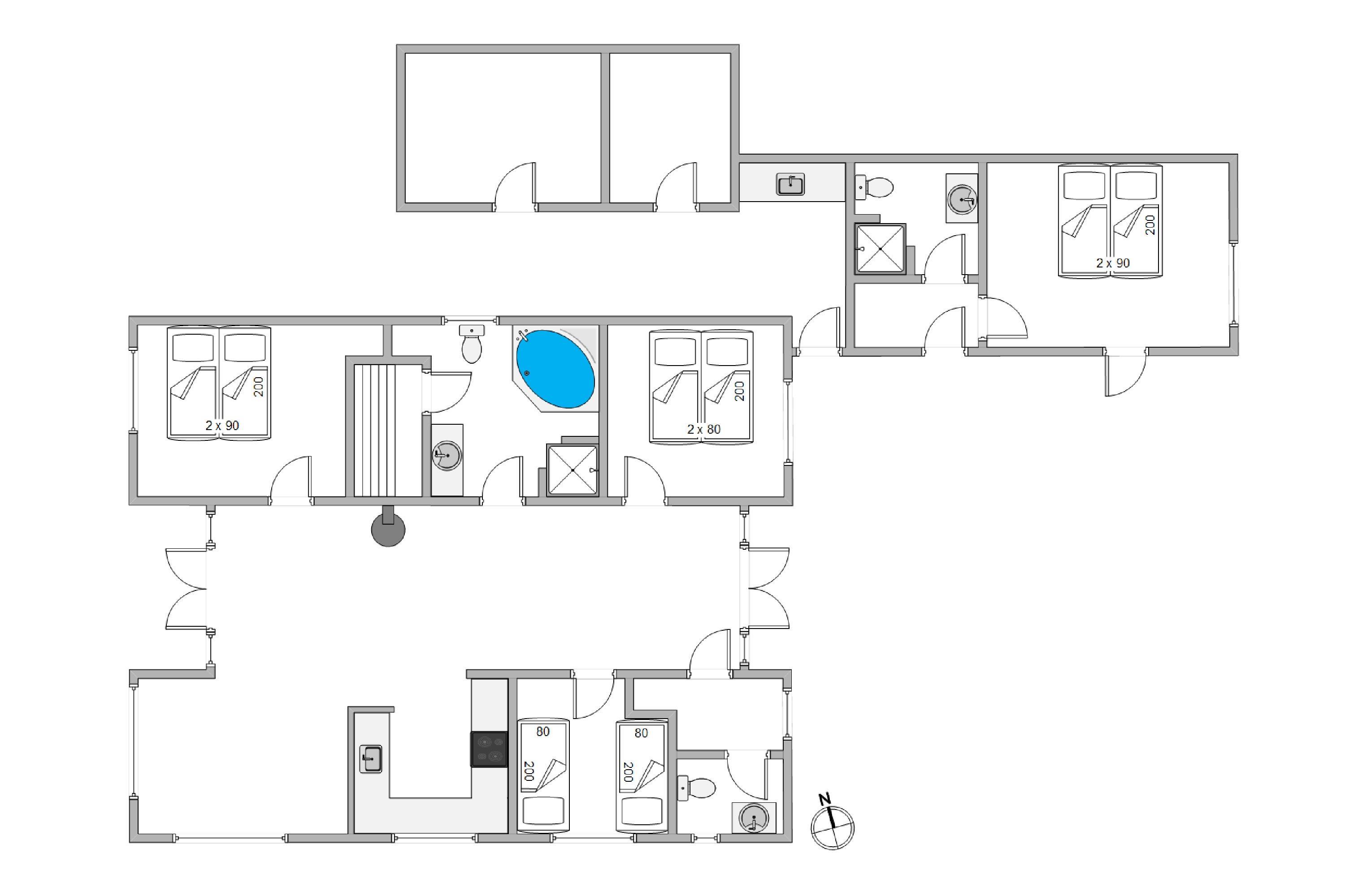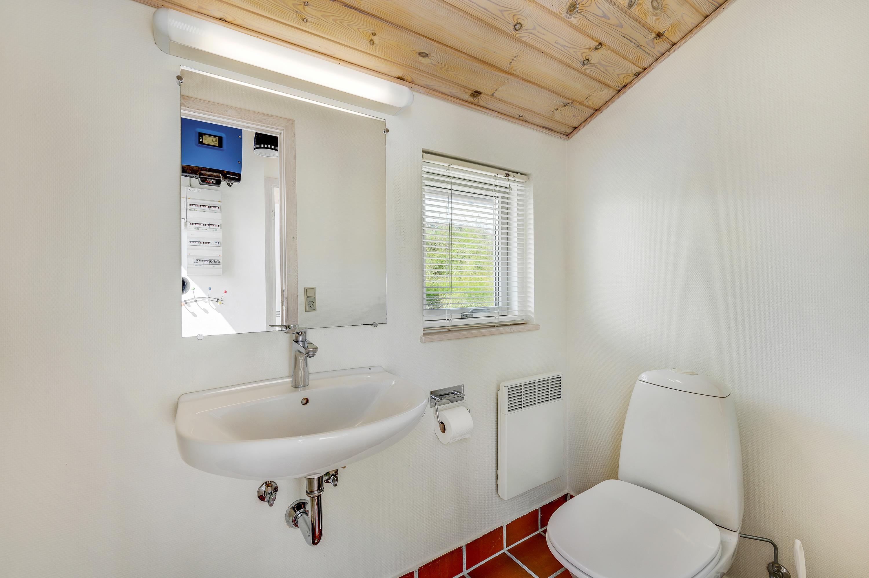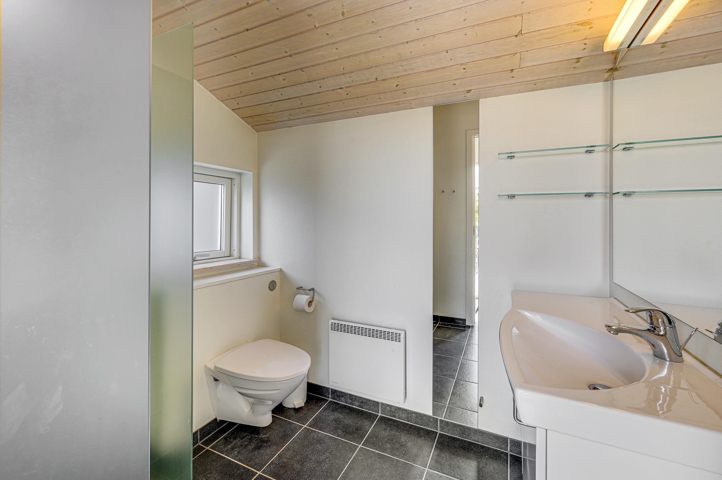 Dette førsteklasses sommerhus har et stort isoleret redskabsrum, hvor der er god plads til medbragt fiskegrej eller lignende. Her er også indrettet et fint lille udekøkken samt udebruser, som kan benyttes fra april til november. Begge dele helt afskærmet og med gode læforhold.