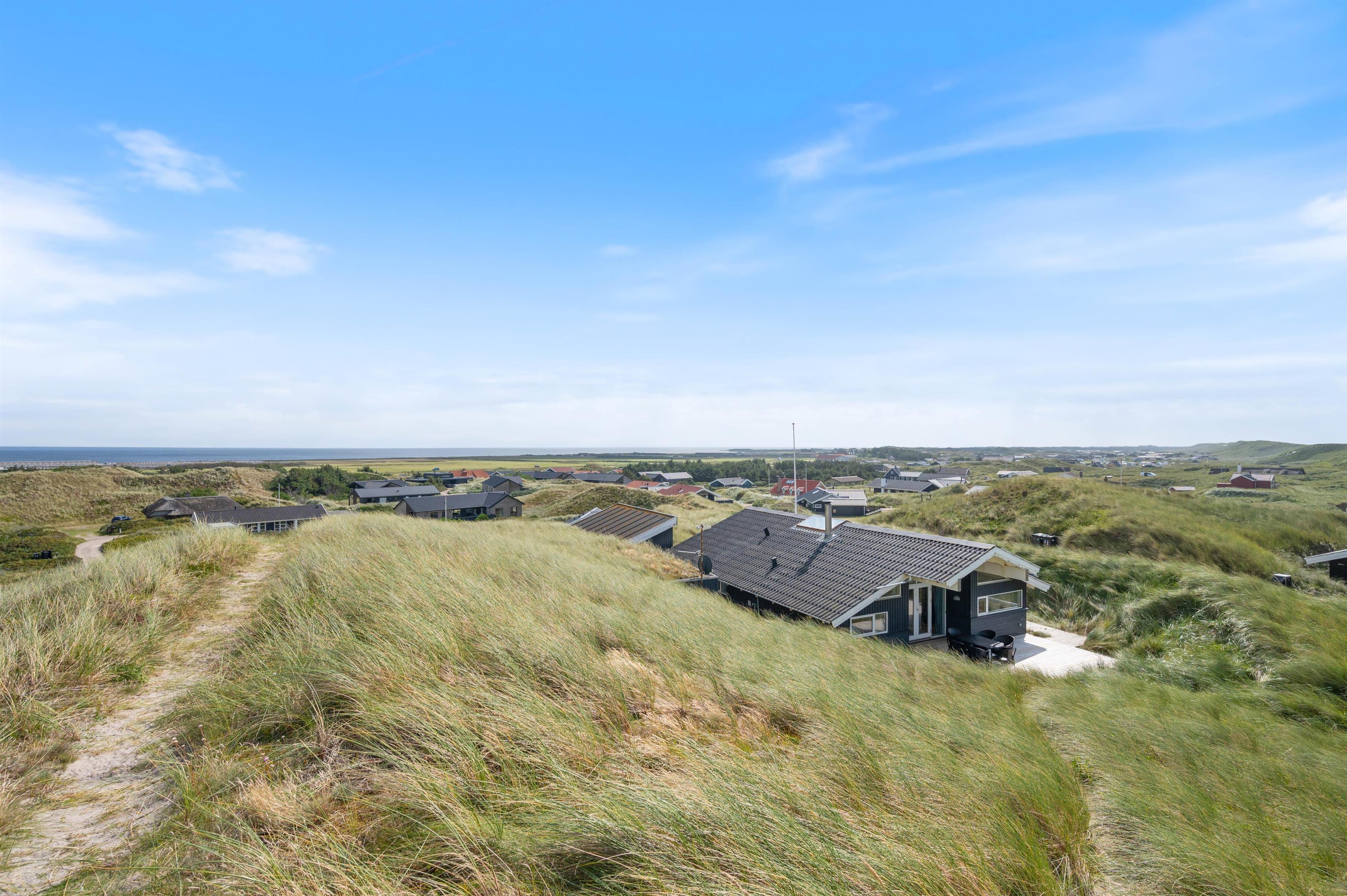 Utroligt skønt sommerhus med en af de smukkeste beliggenheder i området Årgab syd for Hvide Sande. Huset ligger højt på en klit og alligevel helt ugeneret og med fantastik flot udsigt. På terrassen mod øst er der som regel læ og her har du en pragtfuld udsigt mod Ringkøbing Fjord. På den delvist overdækkede og naturligt afskærmede terrasse mod vest har du første parket til klitten og det smukke landskab.