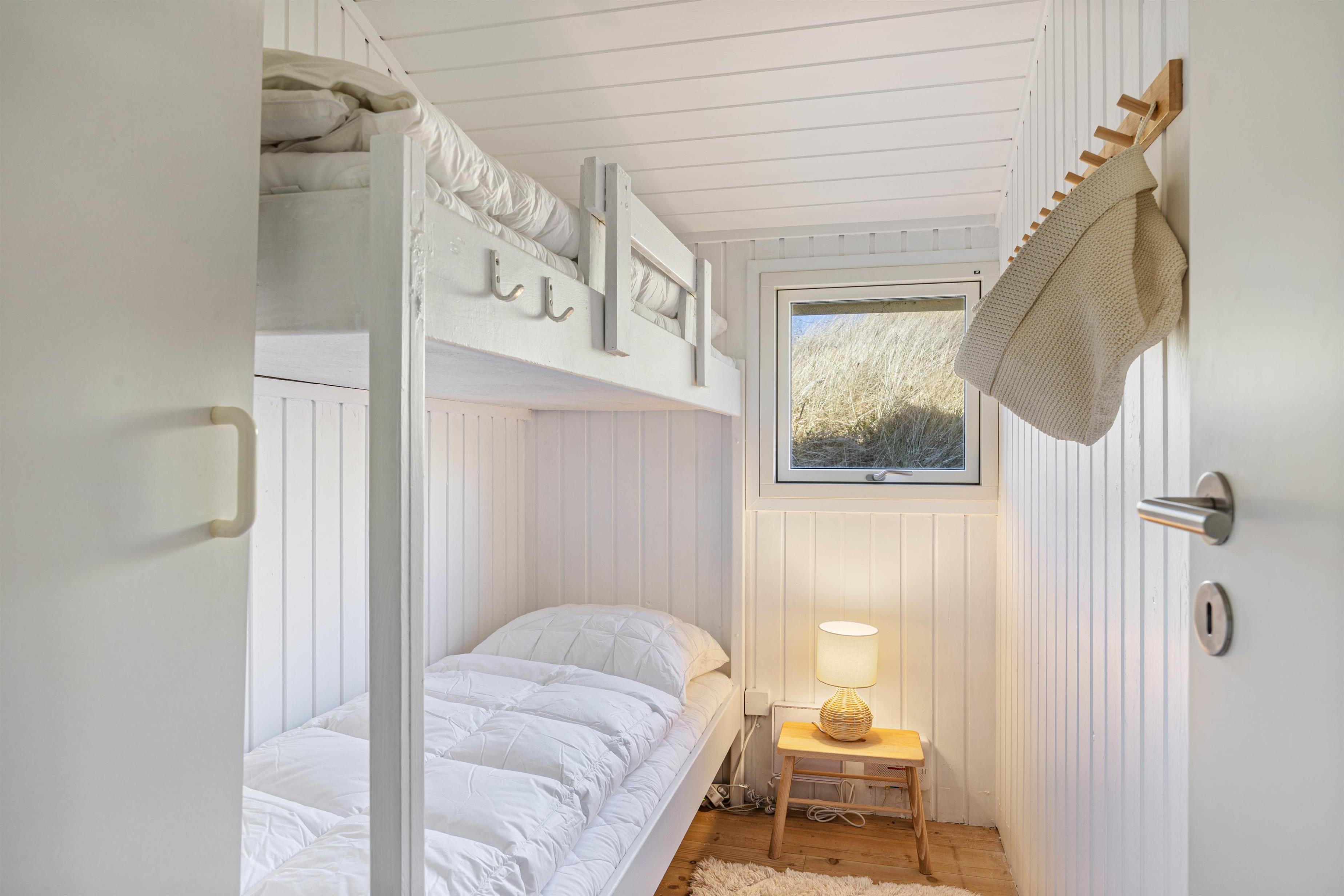 Sommerhuset har 3 soverum – 2 med dobbeltsenge og ét med en køjeseng, perfekt til børnene. På sommerhusets badeværelse finder I en vaskemaskine, så der er mulighed for at få vasket tøjet under jeres ferie.