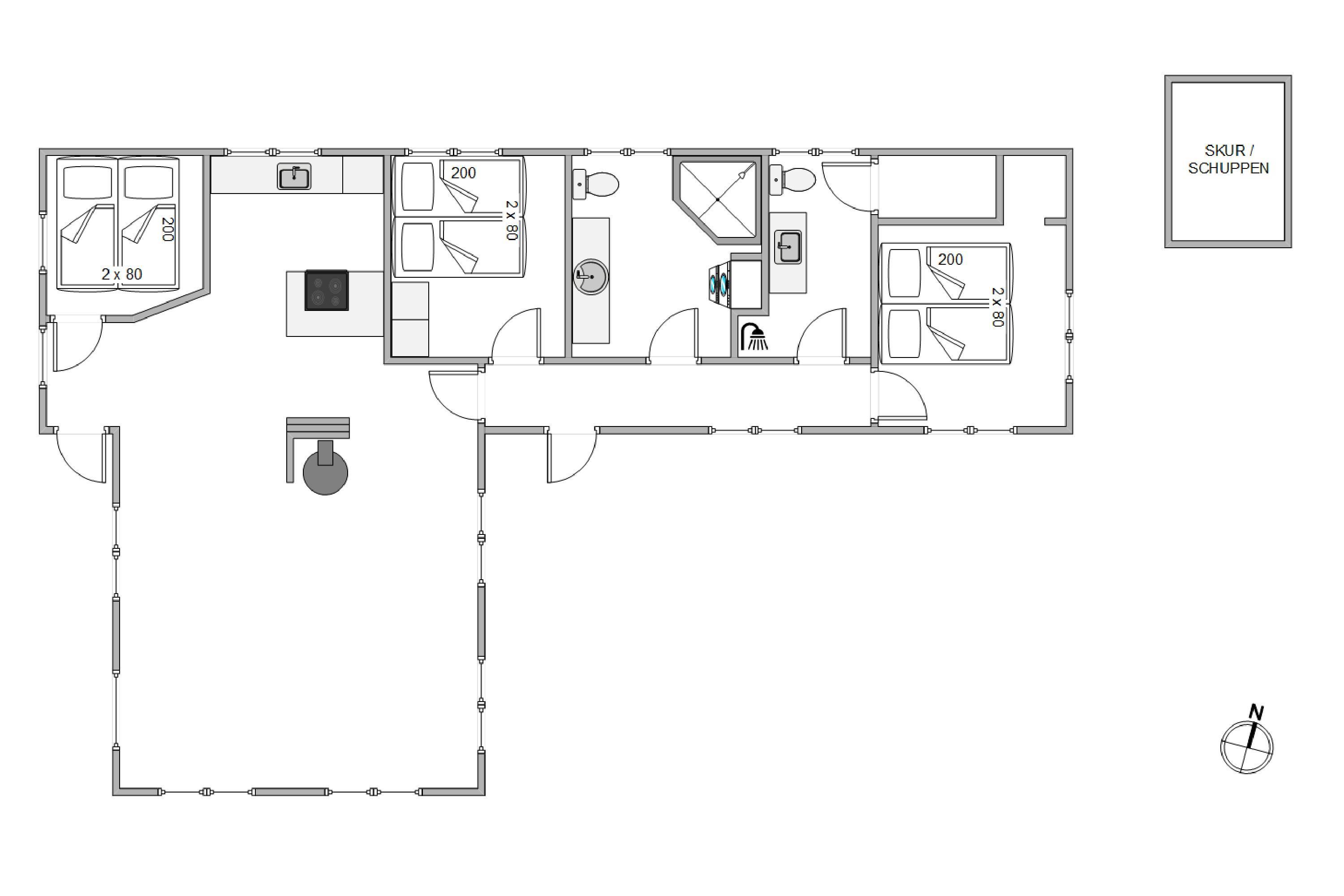 Når kroppen bliver træt, kan I finde jer til rette i en af sommerhuset 3 soverum, hvor I i alle tre rum finder en dobbeltseng 2*80*200. Udover 3 soverum finder I også 2 badeværelser, som begge har gulvvarme.