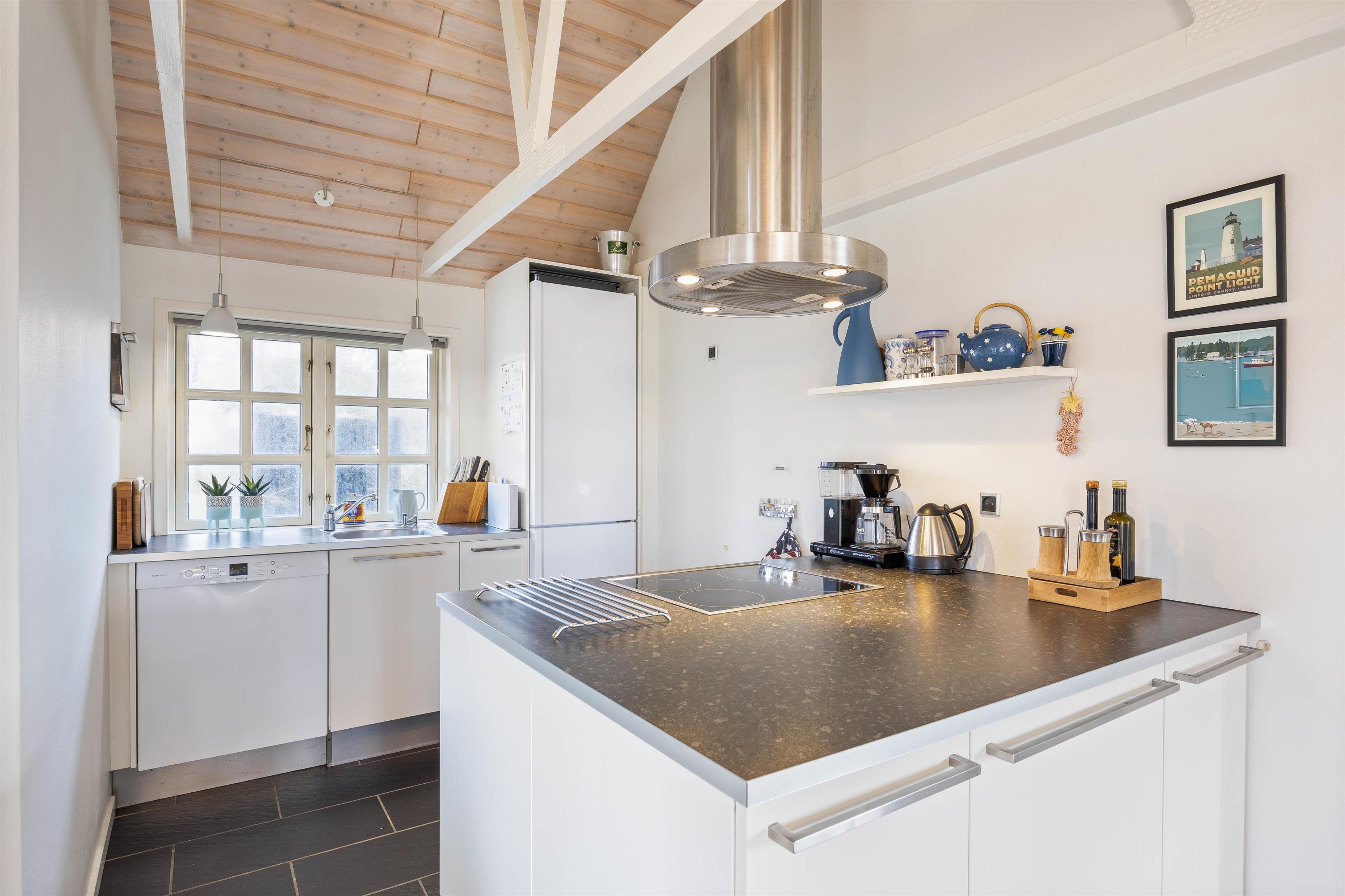I køkkenet/alrummet er der plads til mange hyggelige stunder. I kan sidde og spille spil eller se en god film sammen, imens der bliver lavet dejligt mad i køkkenet. De praktiske gøremål skal I ikke bruge lang tid på, da der i sommerhuset er opvaskemaskine, vaskemaskine og tørretumbler.