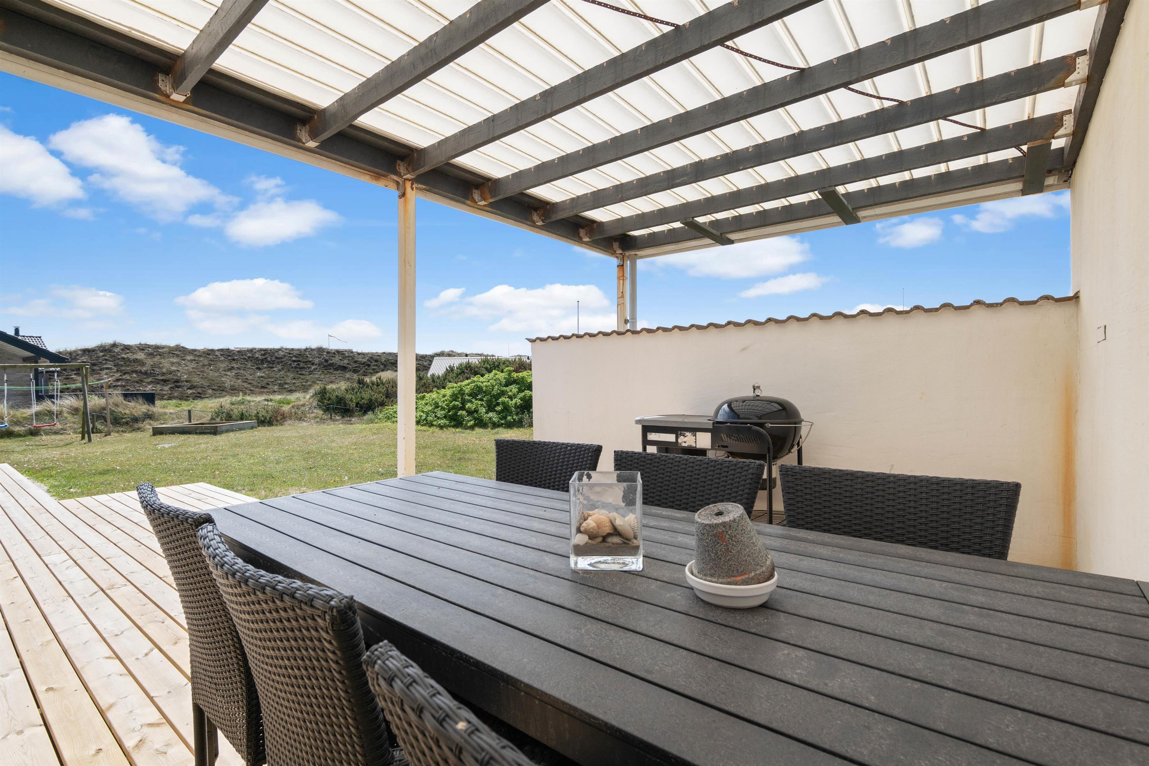 Sommerlivet leves ude. Særligt i et hus, der ligger bare 200 meter fra Vesterhavets brusende bølger. Men også ved huset har I rig mulighed for at nyde landskabet og den friske luft. På terrassen finder I gode havemøbler, liggestole og grill.