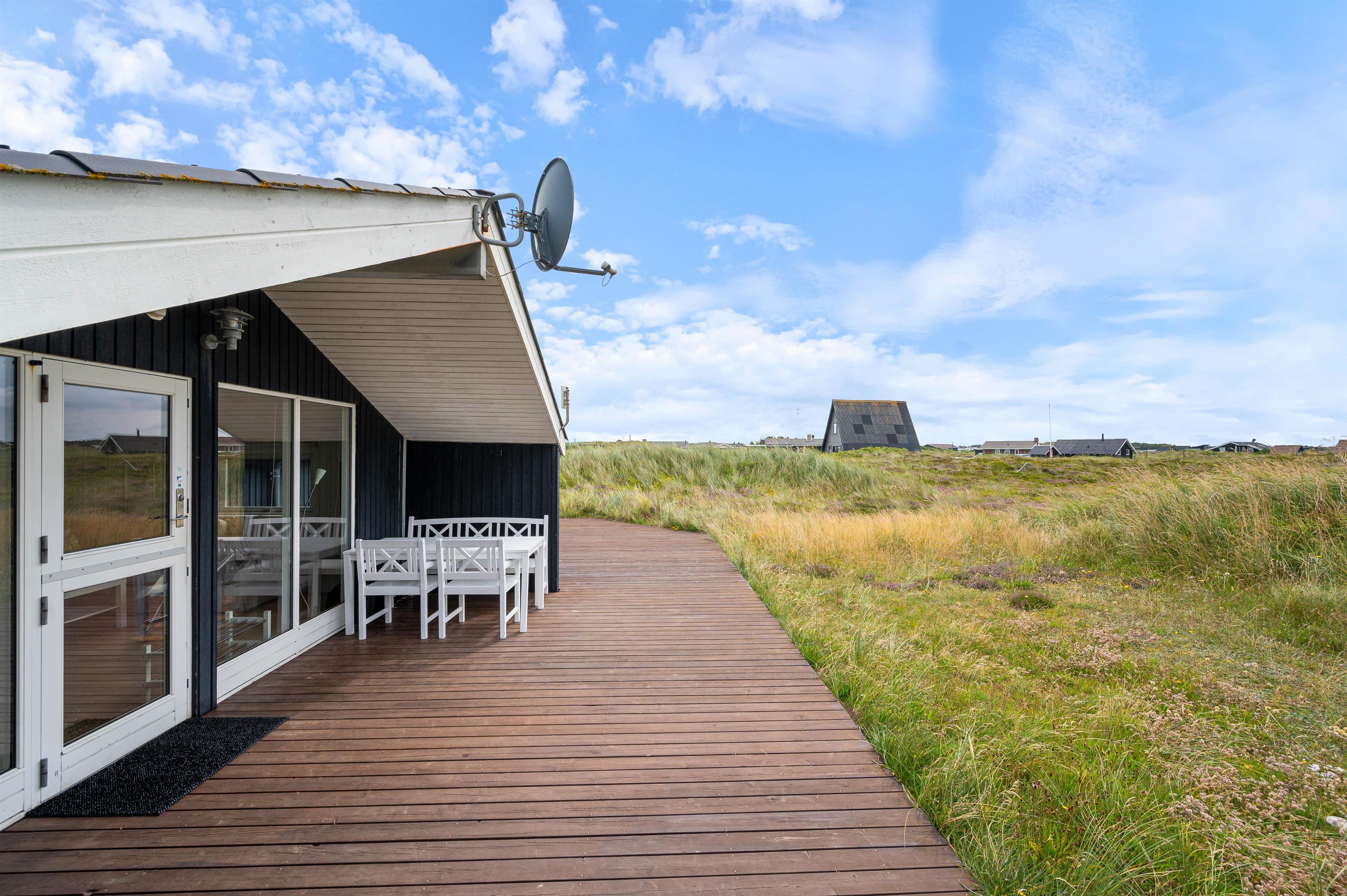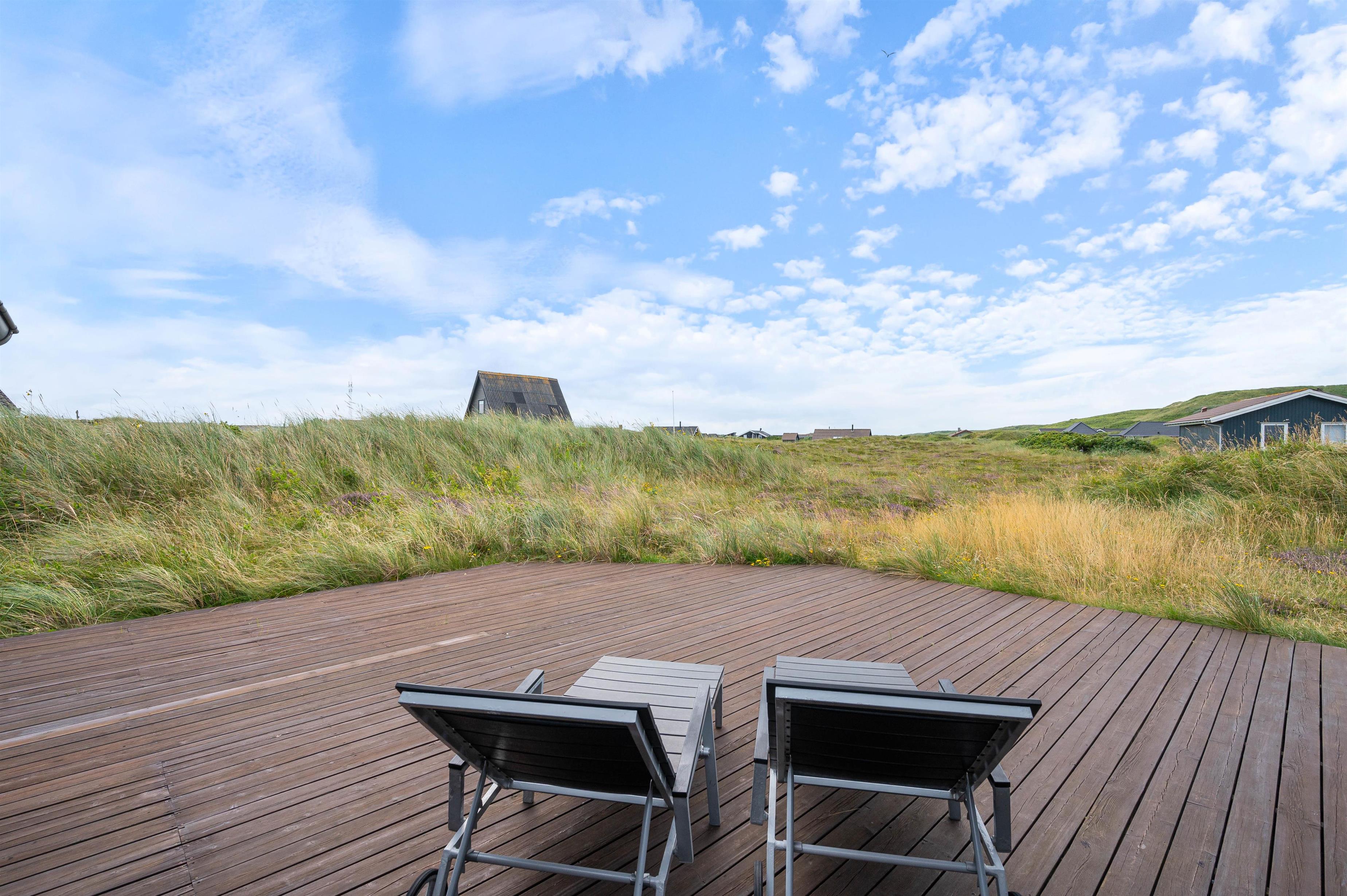Nyd ferien og hyg dig med familien eller vennerne på den dejlige terrasse. Her er gode havemøbler og naturligvis en grill til den gode bøf eller friskfangede fisk. Fra terrassen er der smuk udsigt til hede og klitlandskab.