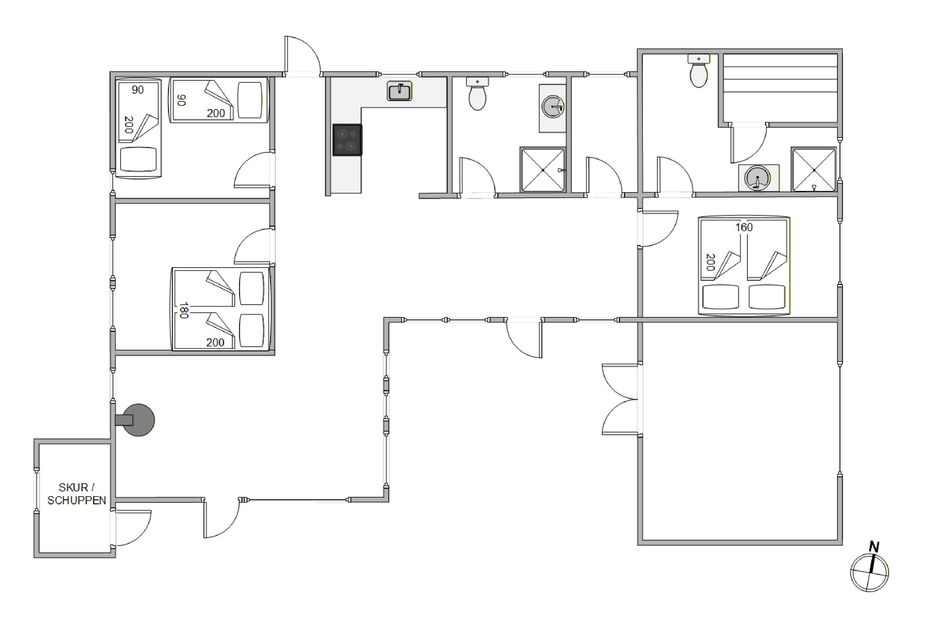 I køkkenalrummet finder I blandt andet også det funktionelle køkken, her er der alle de nødvendige ting for at kunne lave et lækkert måltid til hele familien. Derudover finder I også husets brændeovn i køkkenalrummet, så der altid vil være mulighed for en lun og behagelig temperatur. I huset finder I også en energibesparende varmepumpe, som i frit kan benyttet i stedet for de andre varmekilder.