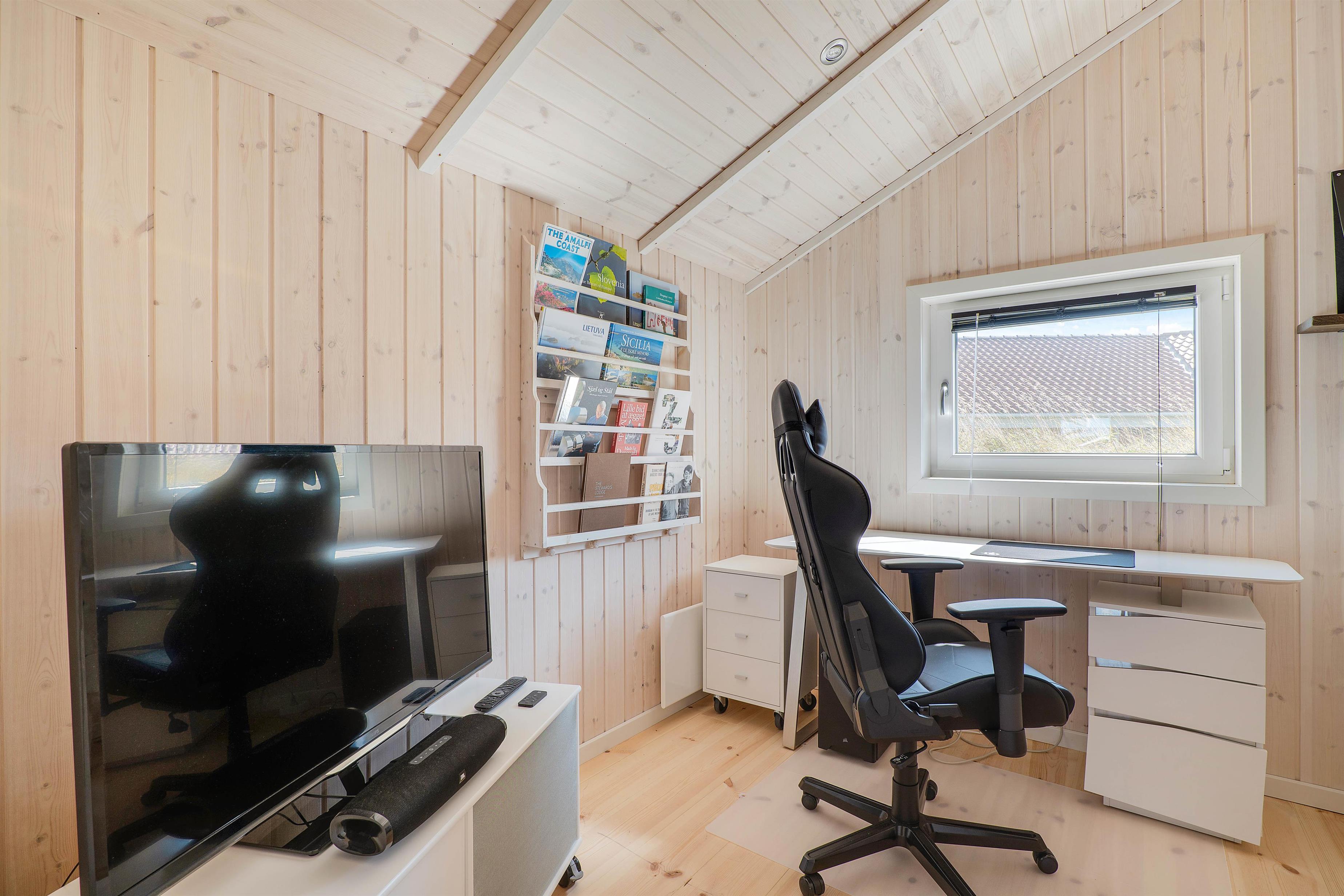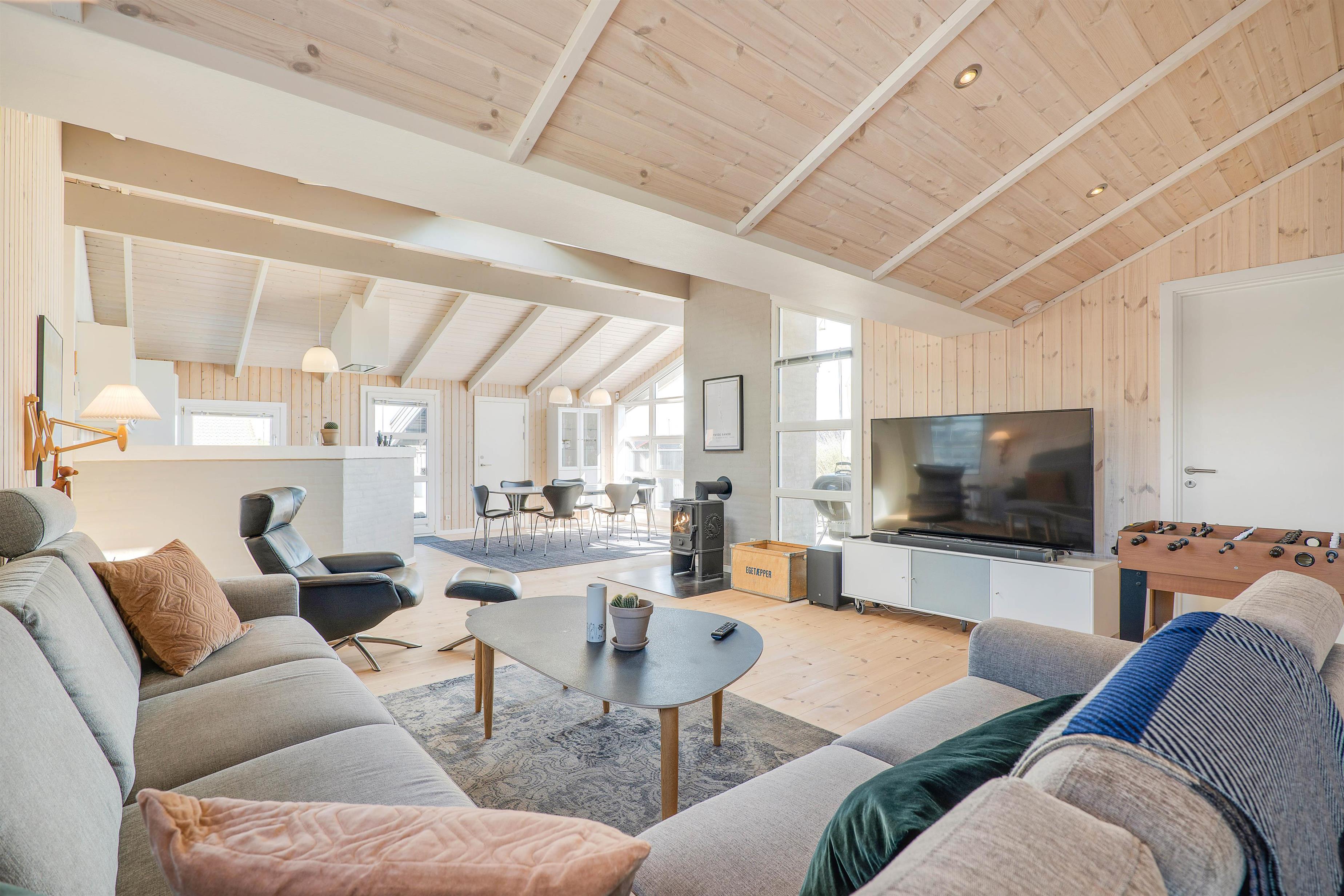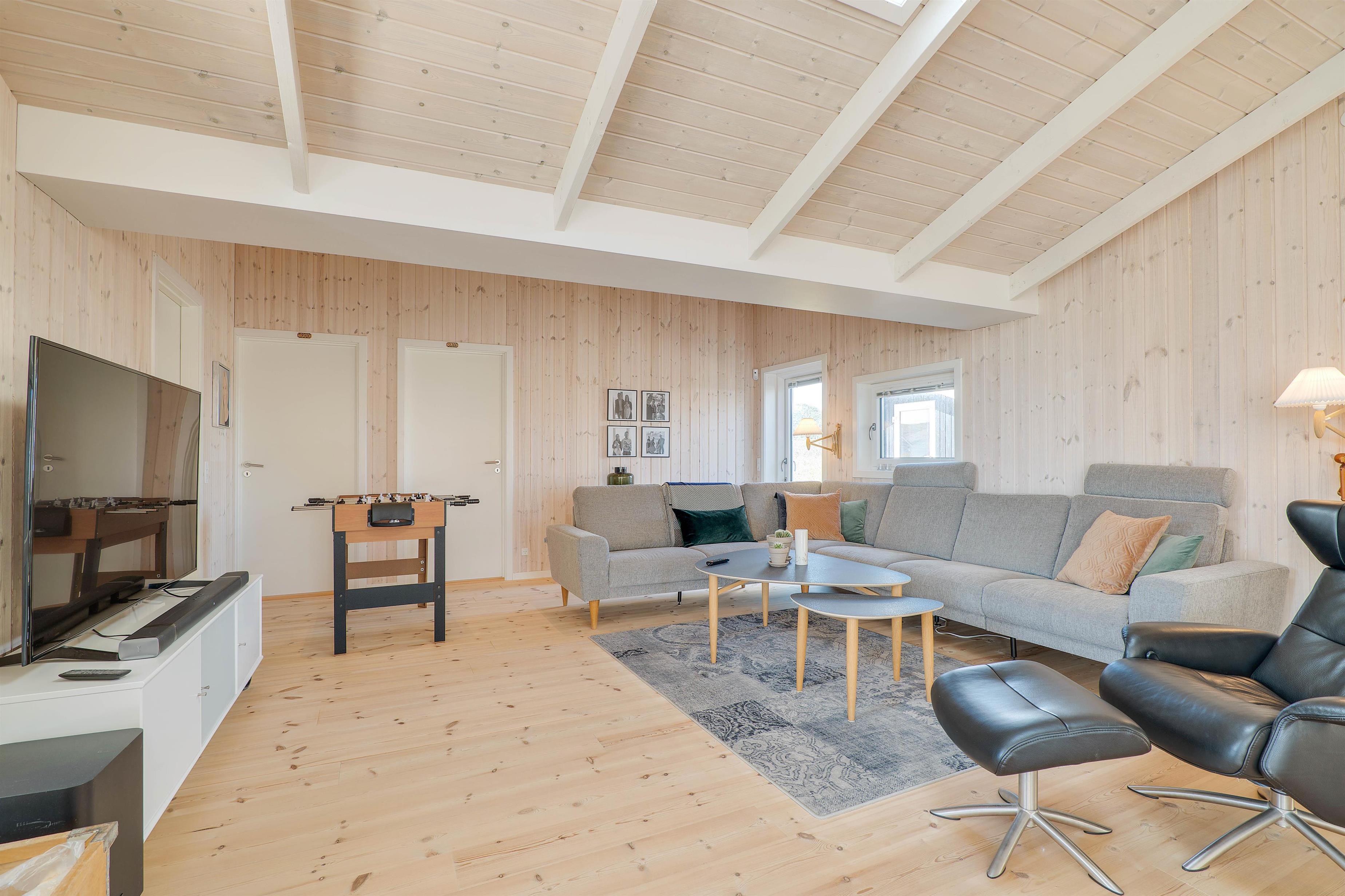 I sommerhusets stue er der plads til hele familien, som kan samles til en hyggelig filmaften. I har en Chromecast til rådighed, så I kan streame de bedste film fra jeres egne mobiler. Til at holde temperaturen i rummet behagelig, kan I benytte jer af den energibesparende varmepumpe. Her står også et fodboldbord klar til jer, så I kan afholde en spændende turnering.