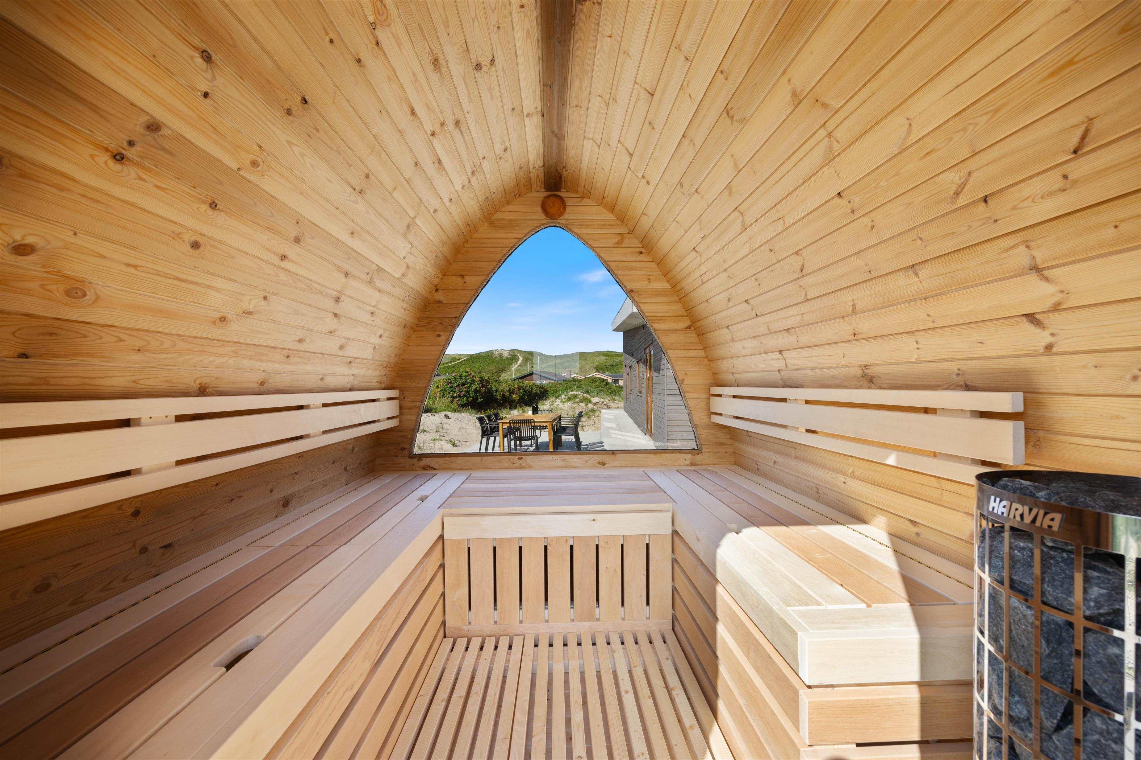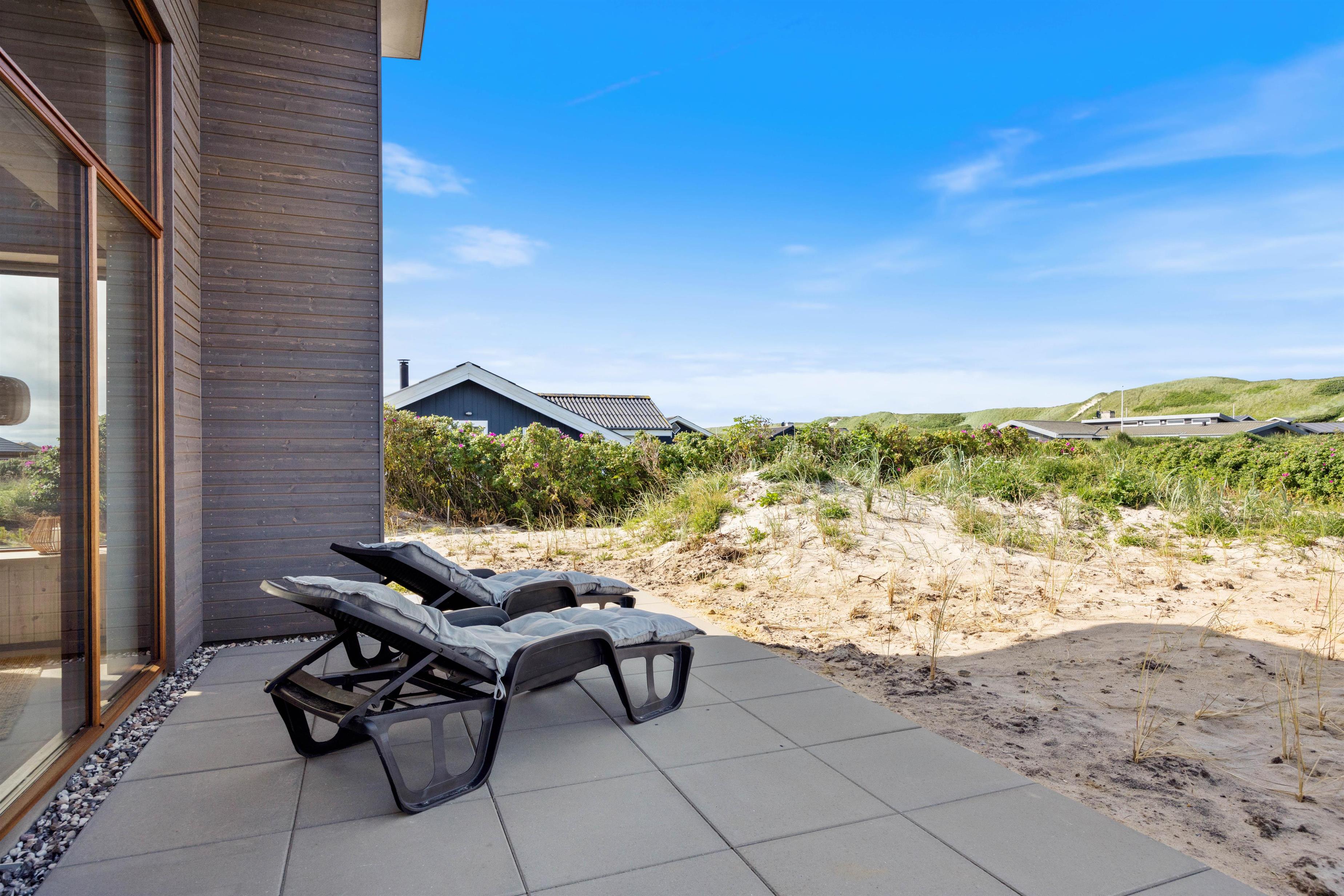 Efter en dag ved Vesterhavet, som ligger blot 200 meter væk, kan I fra april til november tage et forfriskende brusebad under udebruseren inden I slapper af i den luksuriøse udespa eller udesauna. På terrassen finder I også solvogne, hvor I kan tage en lur under den varme sol.