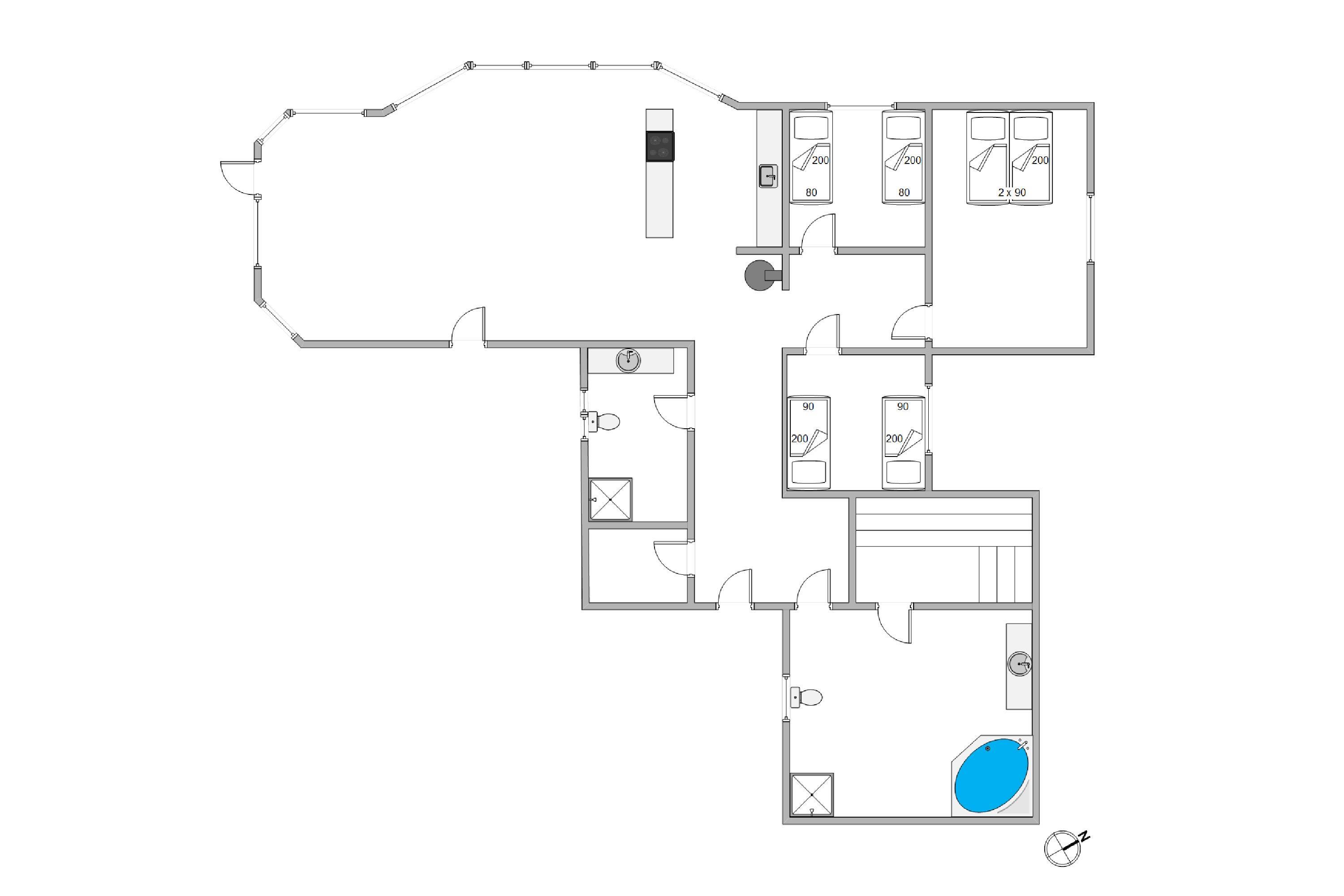 Sommerhusets hjerte er det store køkken-alrum, hvor familien kan samles – enten i det bløde sofaområde eller omkring spisebordet til en dejlig middag. Her kan I desuden også holdes varme med enten brændeovn eller den energibesparende varmepumpe.