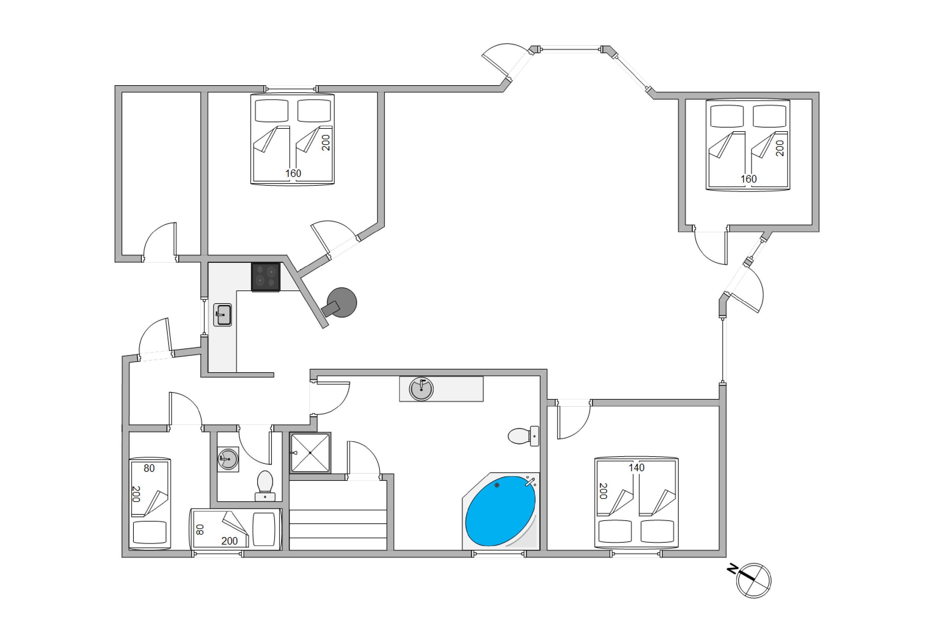 Sommerhuset råder over 4 gode soveværelser med henholdsvis 3 dobbeltværelser med dobbeltsenge og 1 værelse med enkeltsenge.