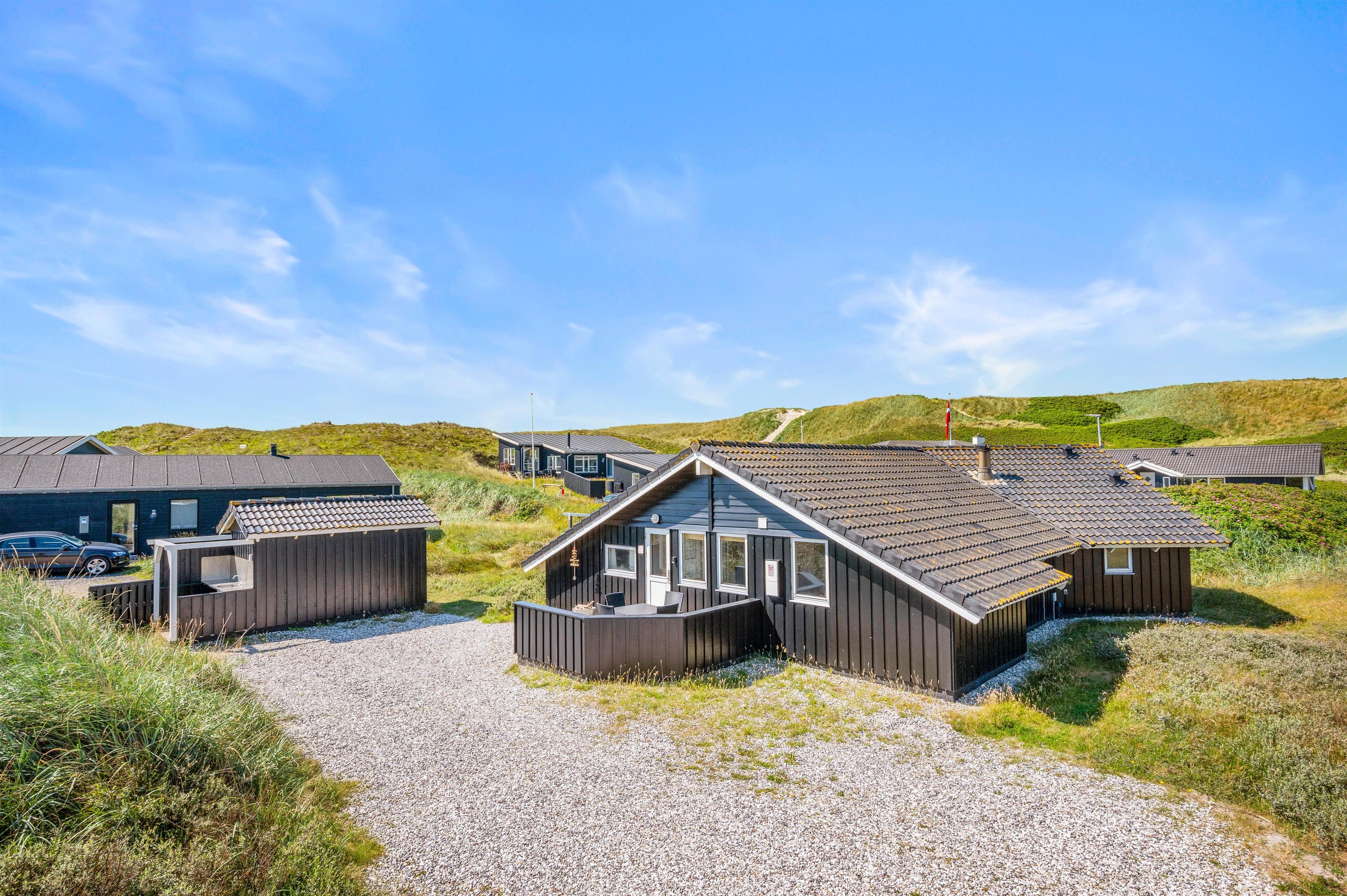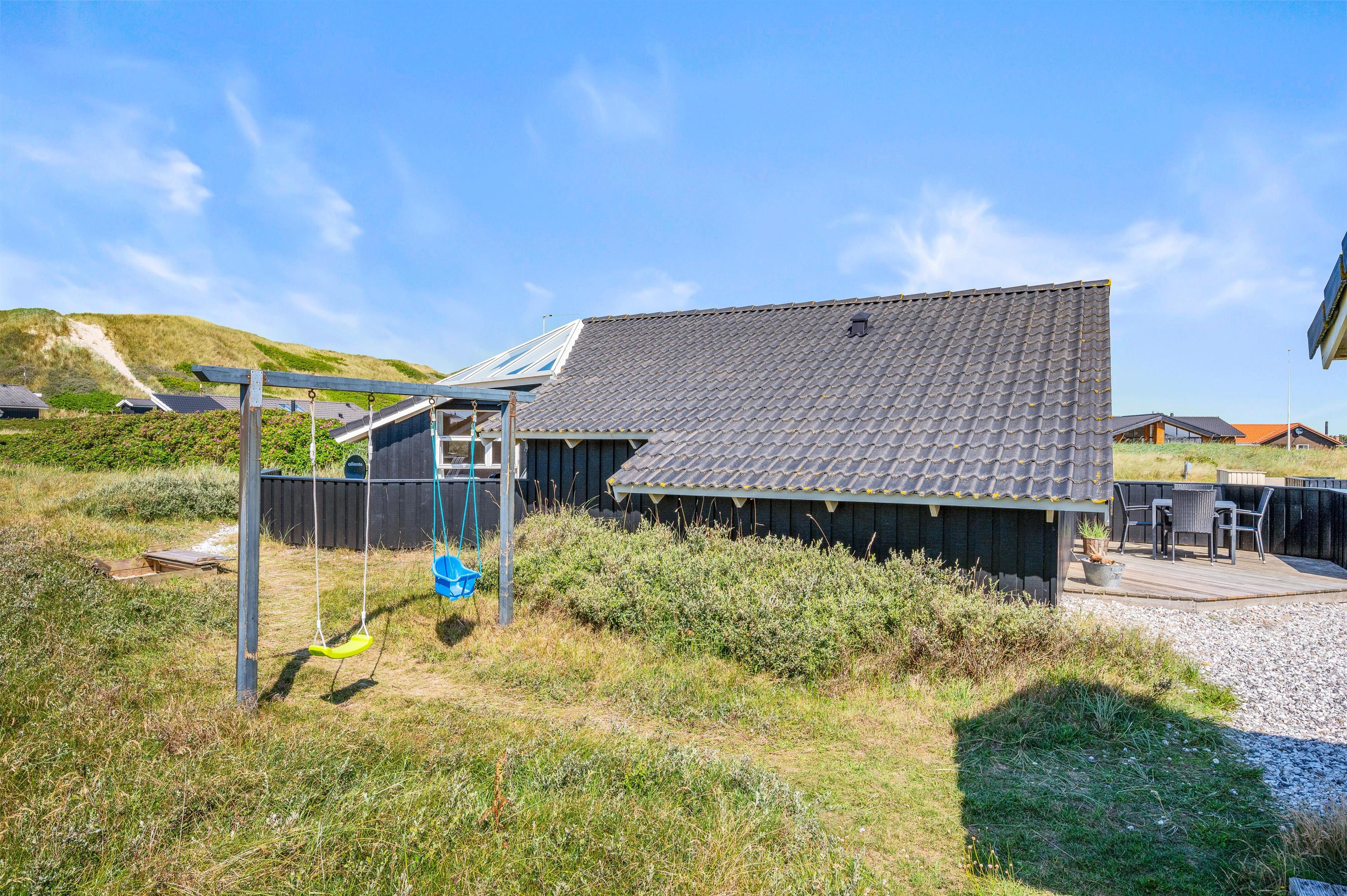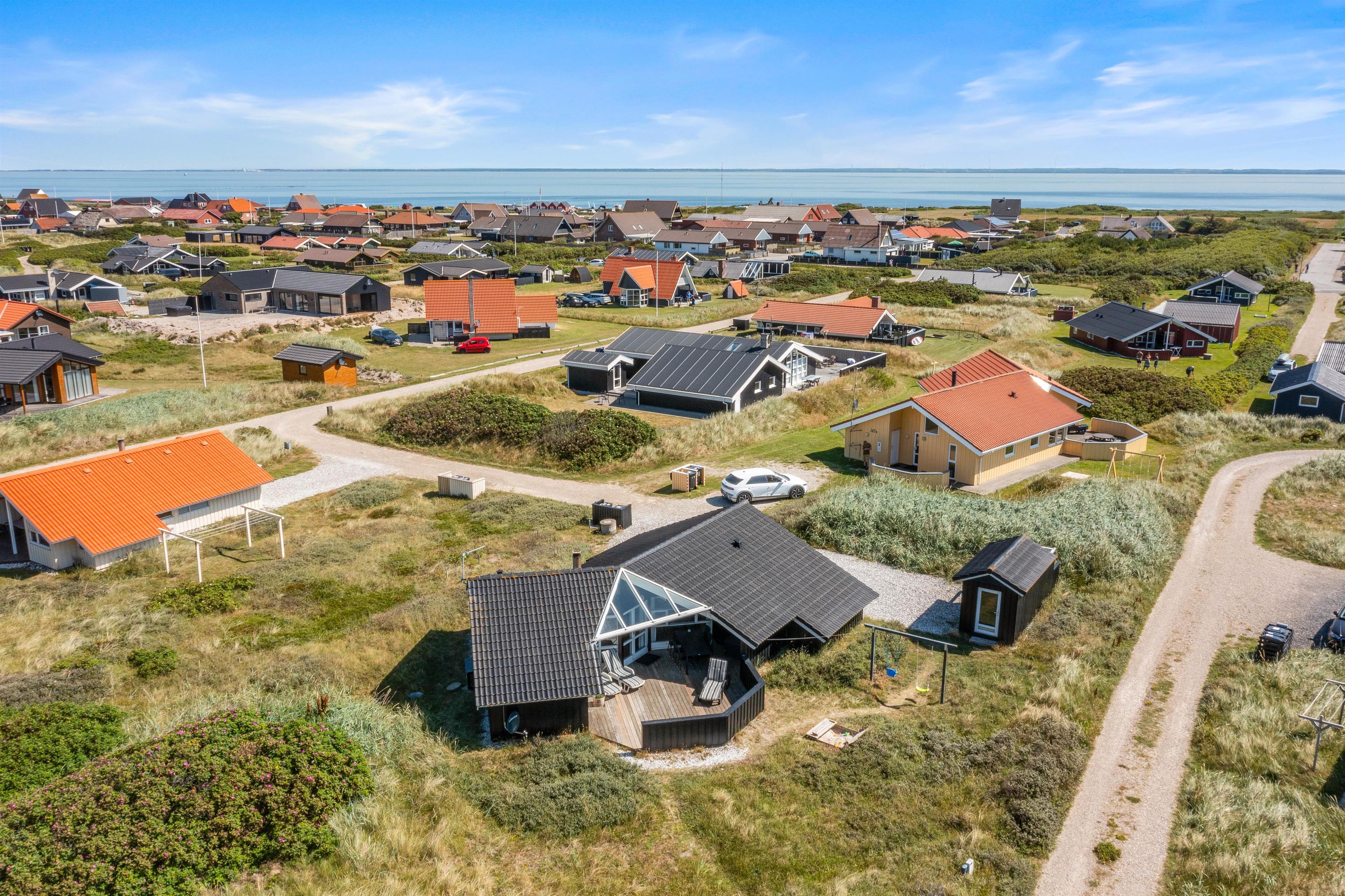 Feriehuset ligger blot 150 meter fra Vesterhavet, hvor I kan tilbringe mange timer på den lange sandstrand. I kan tage en frisk dukkert, hvorefter I hurtigt kan få varmen i husets sauna, eller I kan lade de små børn lege i sandet, mens I kan lægge jer på badehåndklædet og får en dejlig kulør.