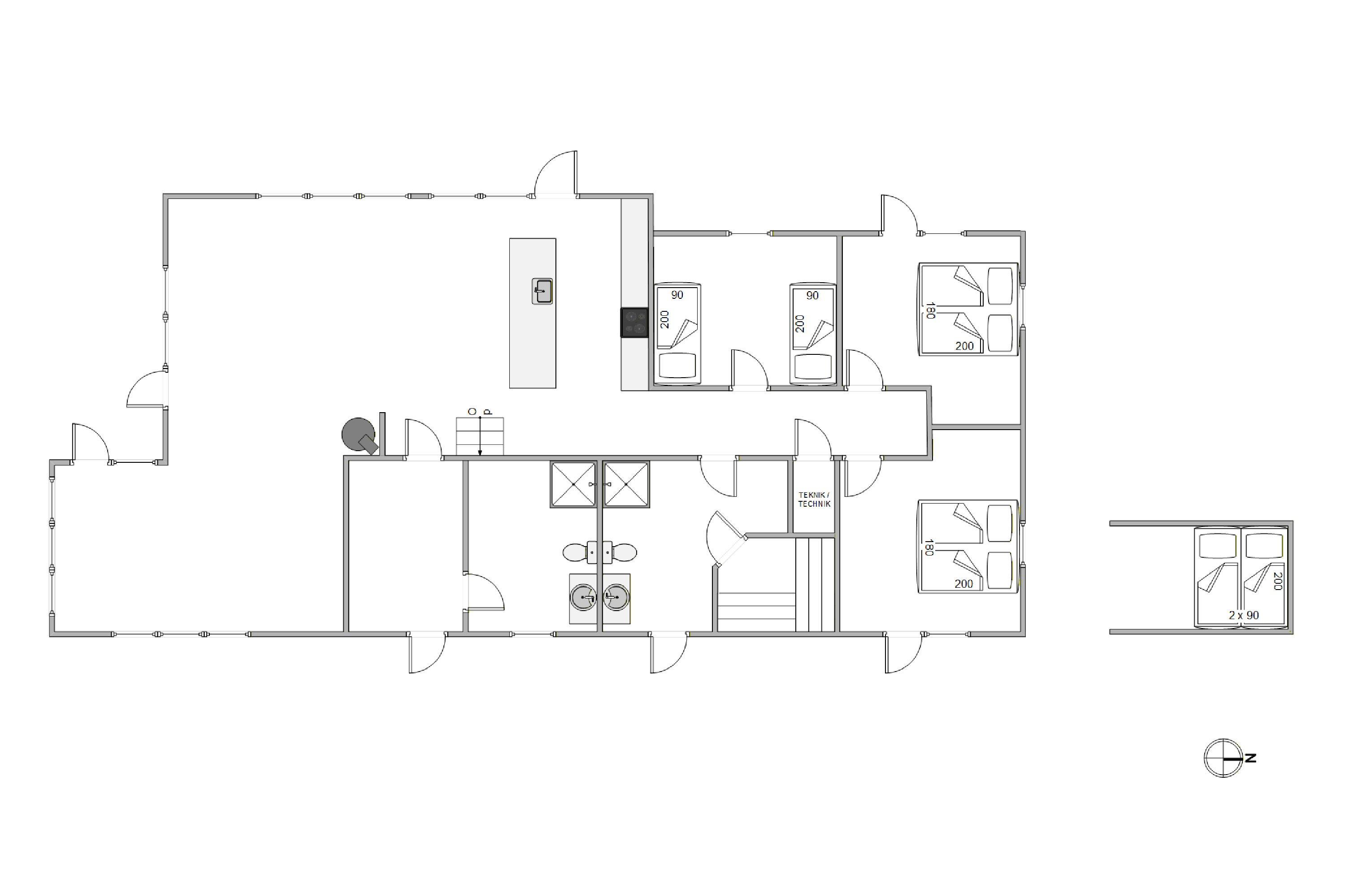 Foruden opholdsrummet er der i alt 3 soveværelser, 1 hems og 2 badeværelser med gulvvarme på sommerhusets 120 kvadratmeter. En lækker sauna finder I på et af badeværelserne, hvor I kan sætte jer ind, når I har brug for lidt ekstra afslapning eller trænger til at blive varmet godt igennem efter en tur i havet.