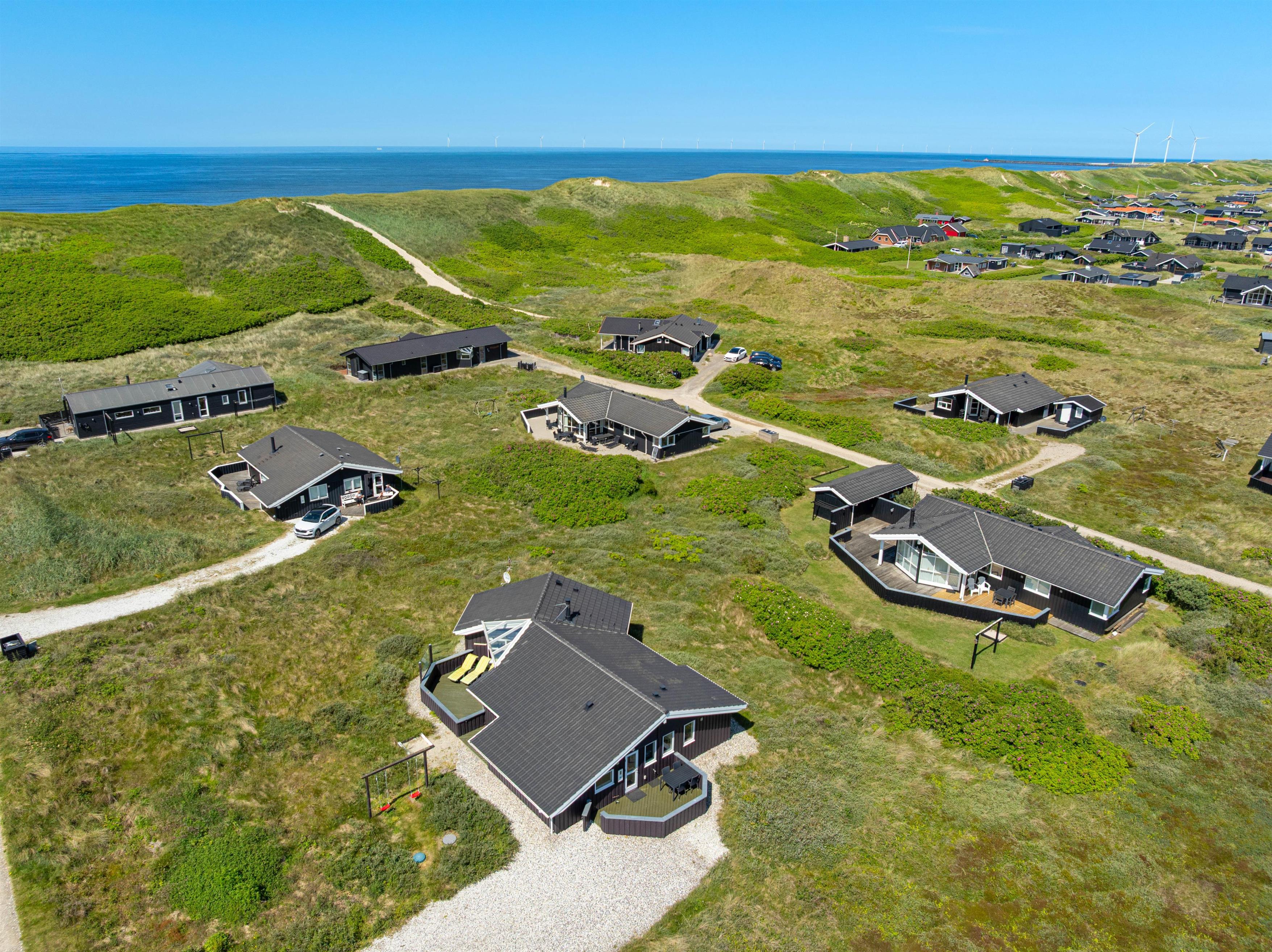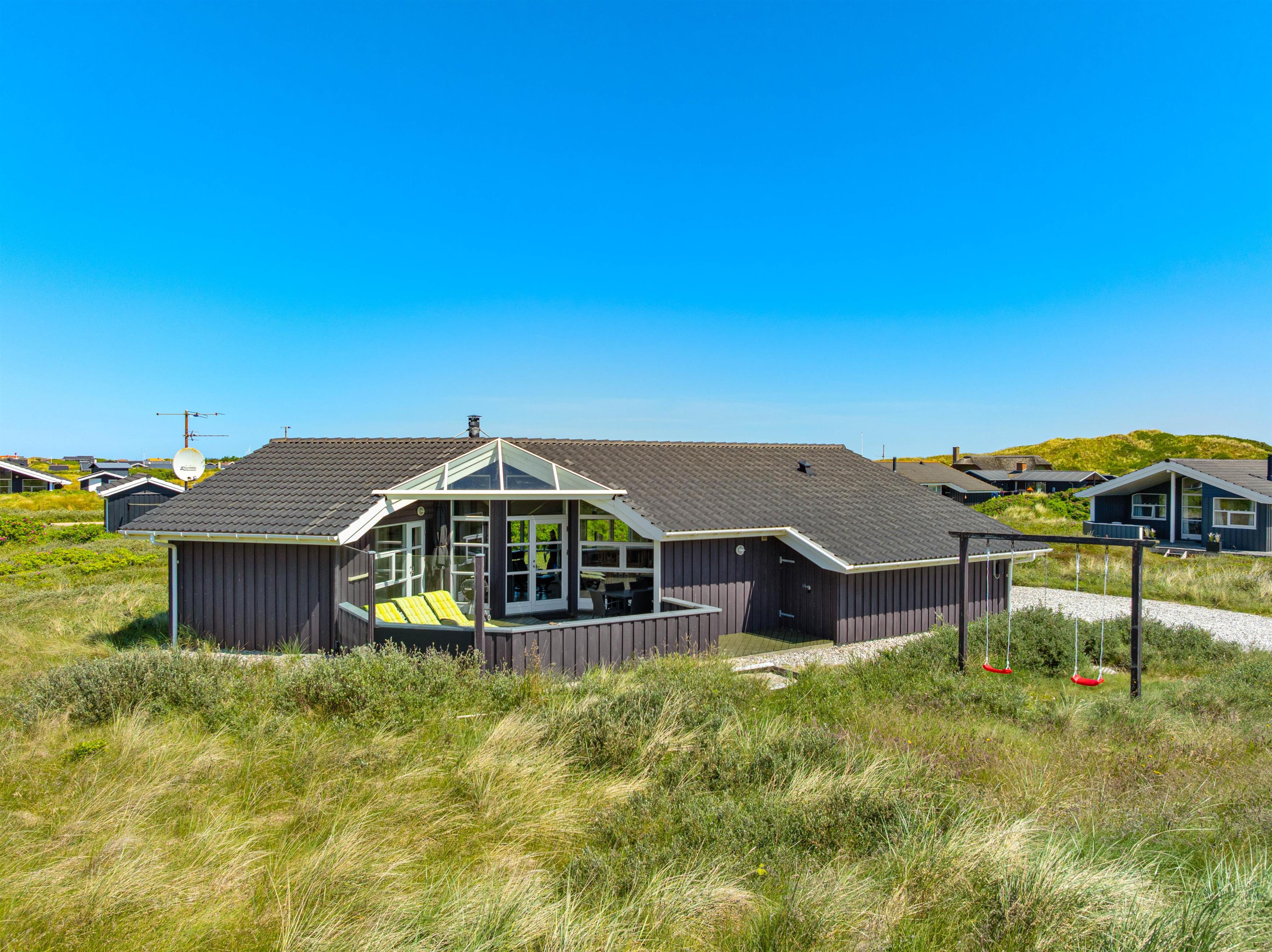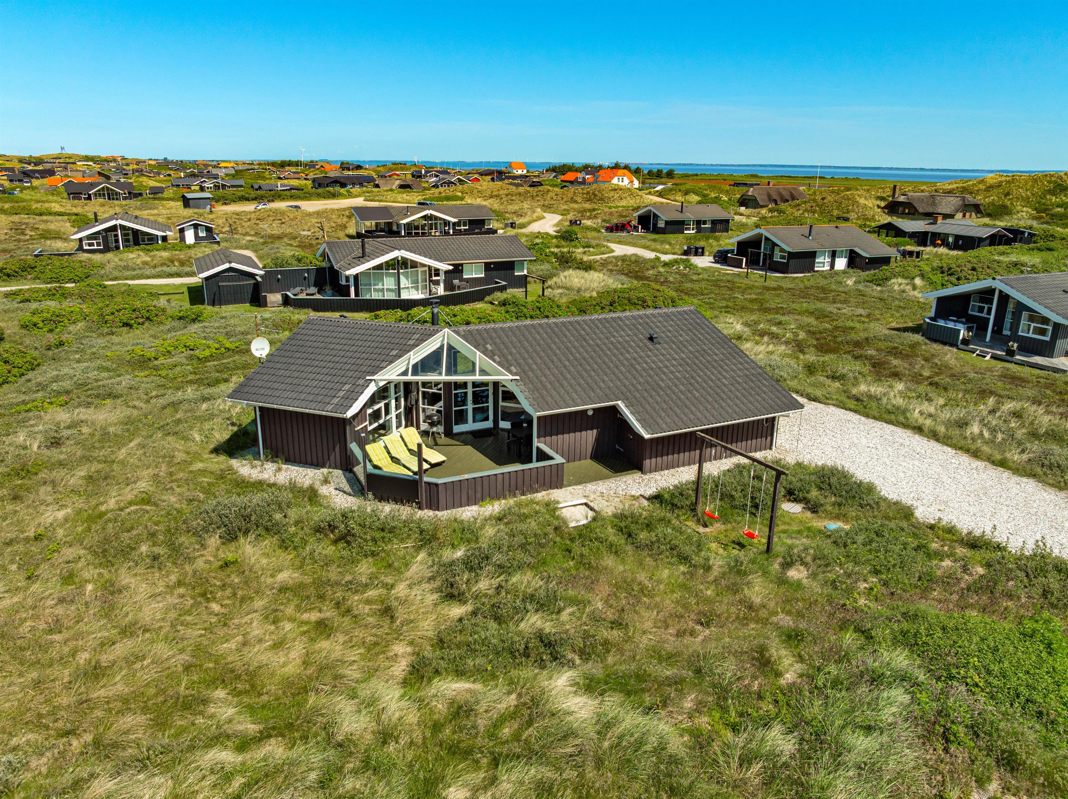 Midt i det vestjyske klitlandskab, kun 150 meter fra det brusende Vesterhav, ligger dette skønne feriehus og venter på jer. Det moderne træhus er et oplagt valg til en afslappende ferie ved havet og byder ud over en fantastisk beliggenhed på ekstra wellnessfaciliteter. Skulle I ankomme i el-bil, er der også tænkt på det, da feriehuset i 2020 har fået installeret udvendig ladestik til elbil. Hunden er også velkommen.