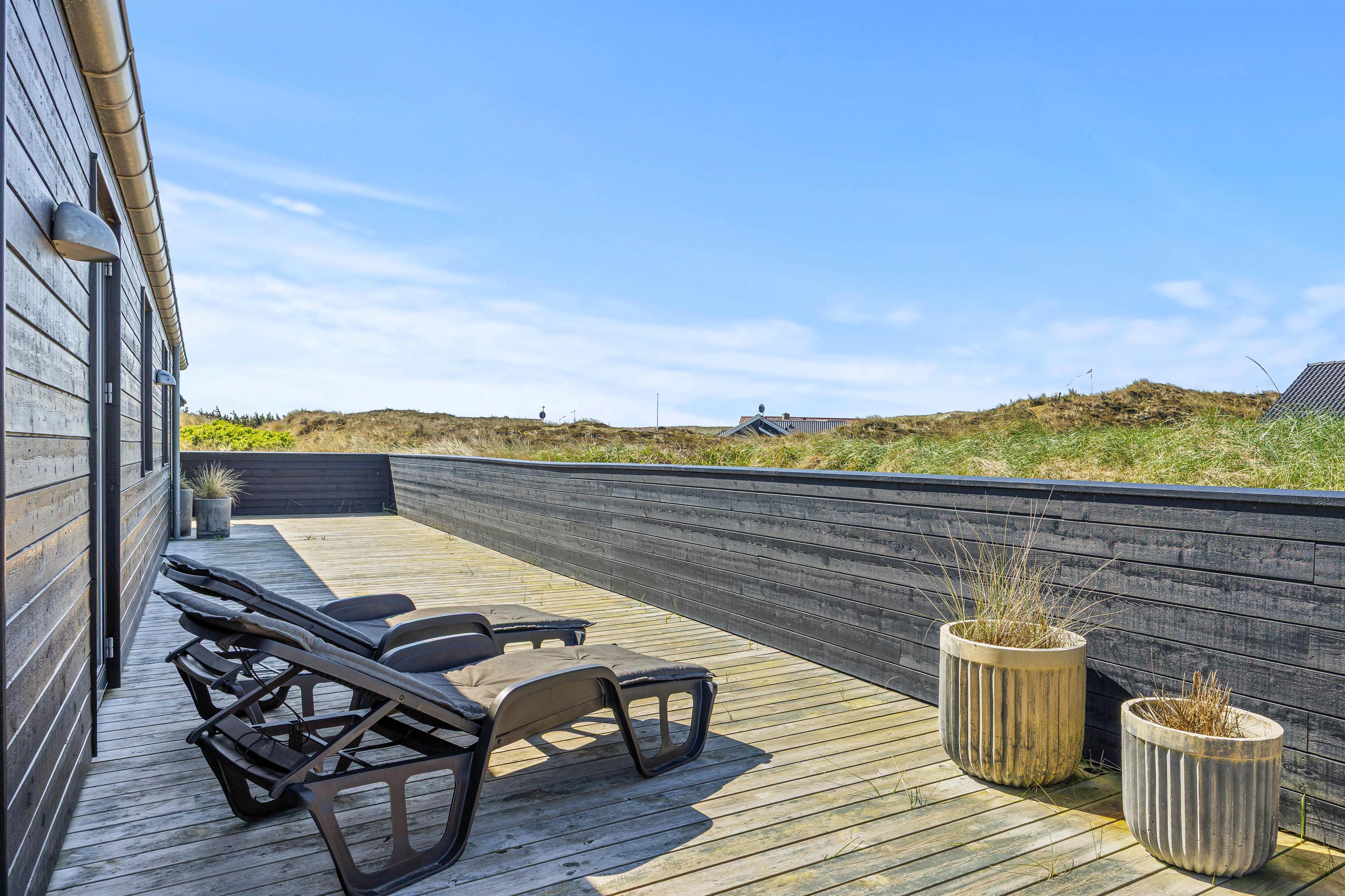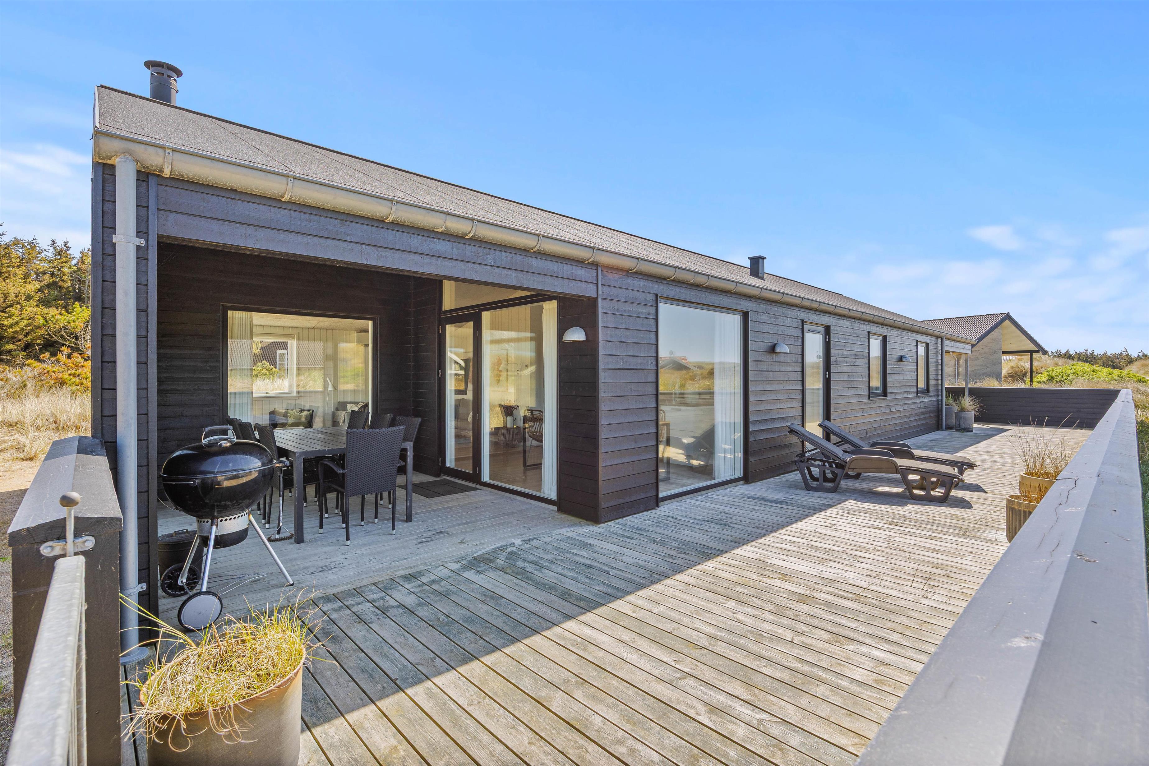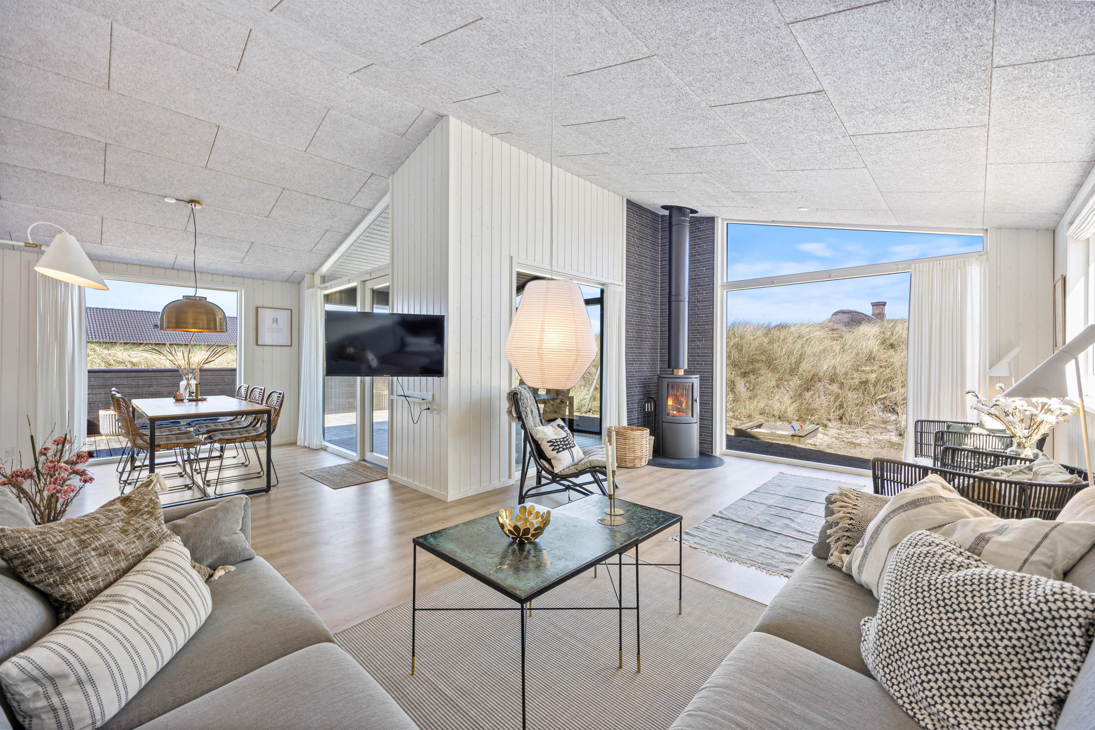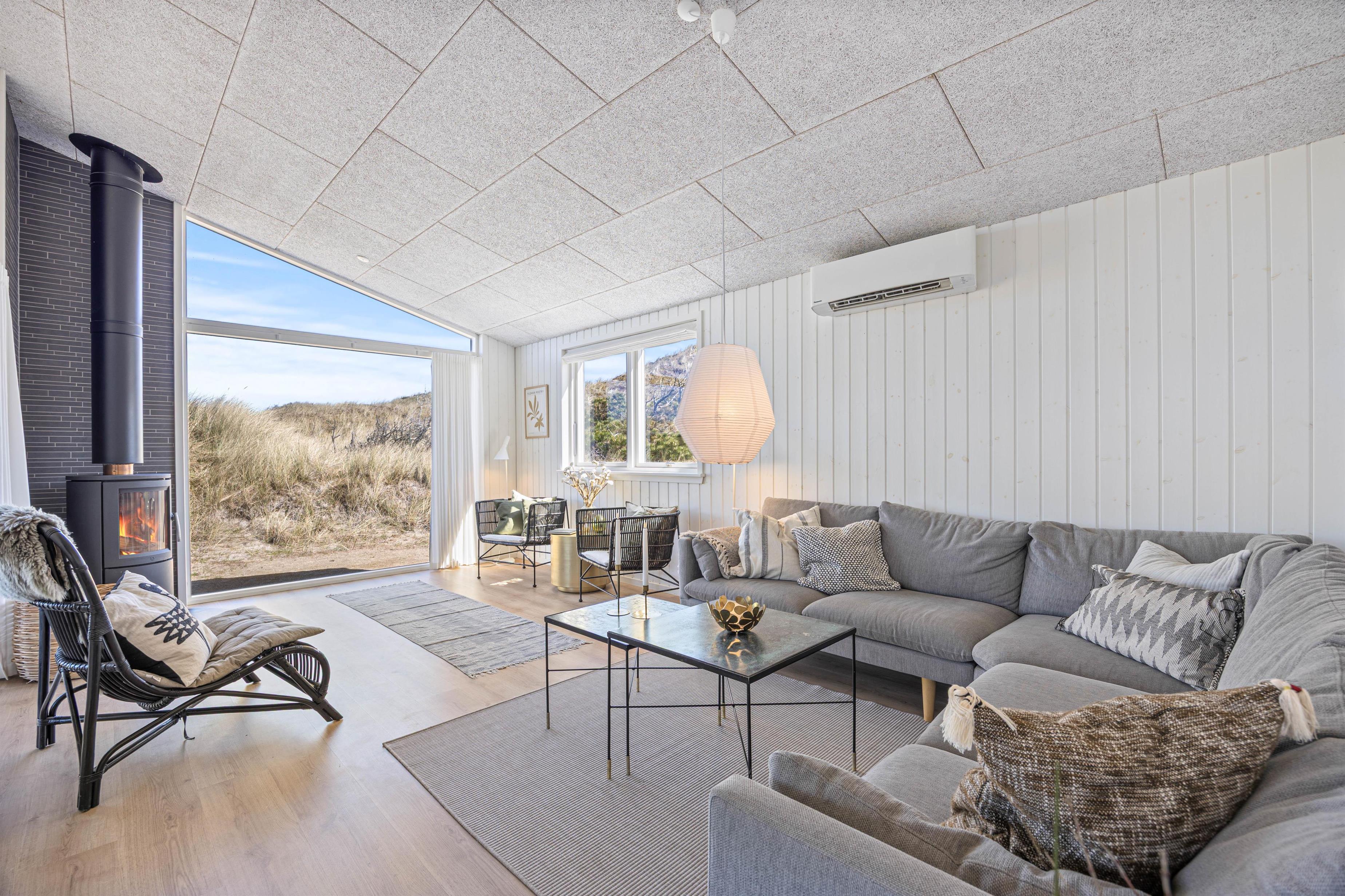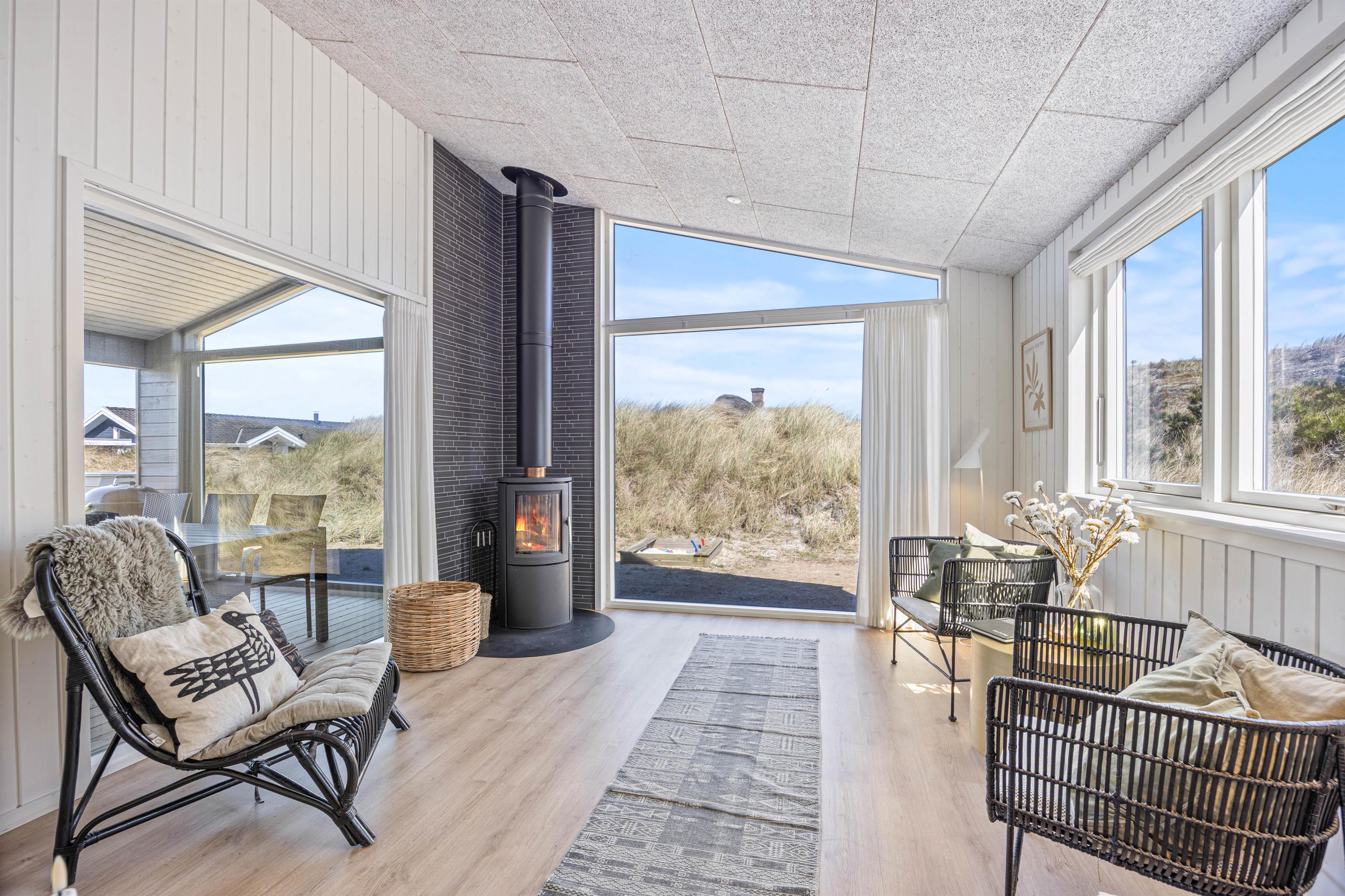 Feriehusets beliggenhed er super strandnær. I skal kun gå 250 meter, og så har I Vesterhavet foran jer. Her er den perfekte mulighed for at nyde naturen og tage lange ture langs havet. Nyd derfor mange gåture med hele familien her! Lyt til Vesterhavets brusen og mærk den friske vind i jeres ansigt. Når I kommer tilbage efter en frisk gåtur – så er der da ikke noget bedre, end en tur i saunaen eller ren afslapning foran brændeovnen.