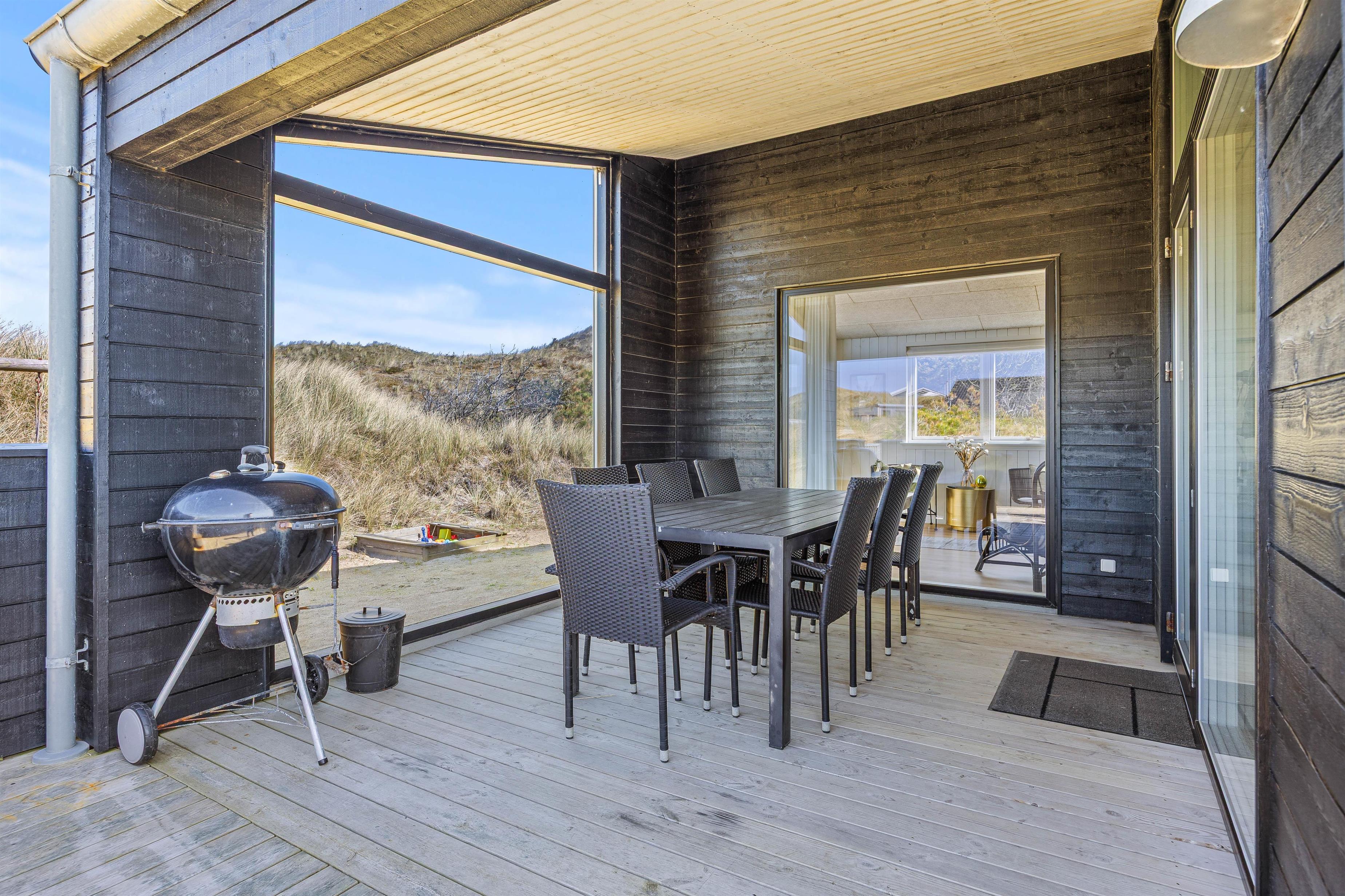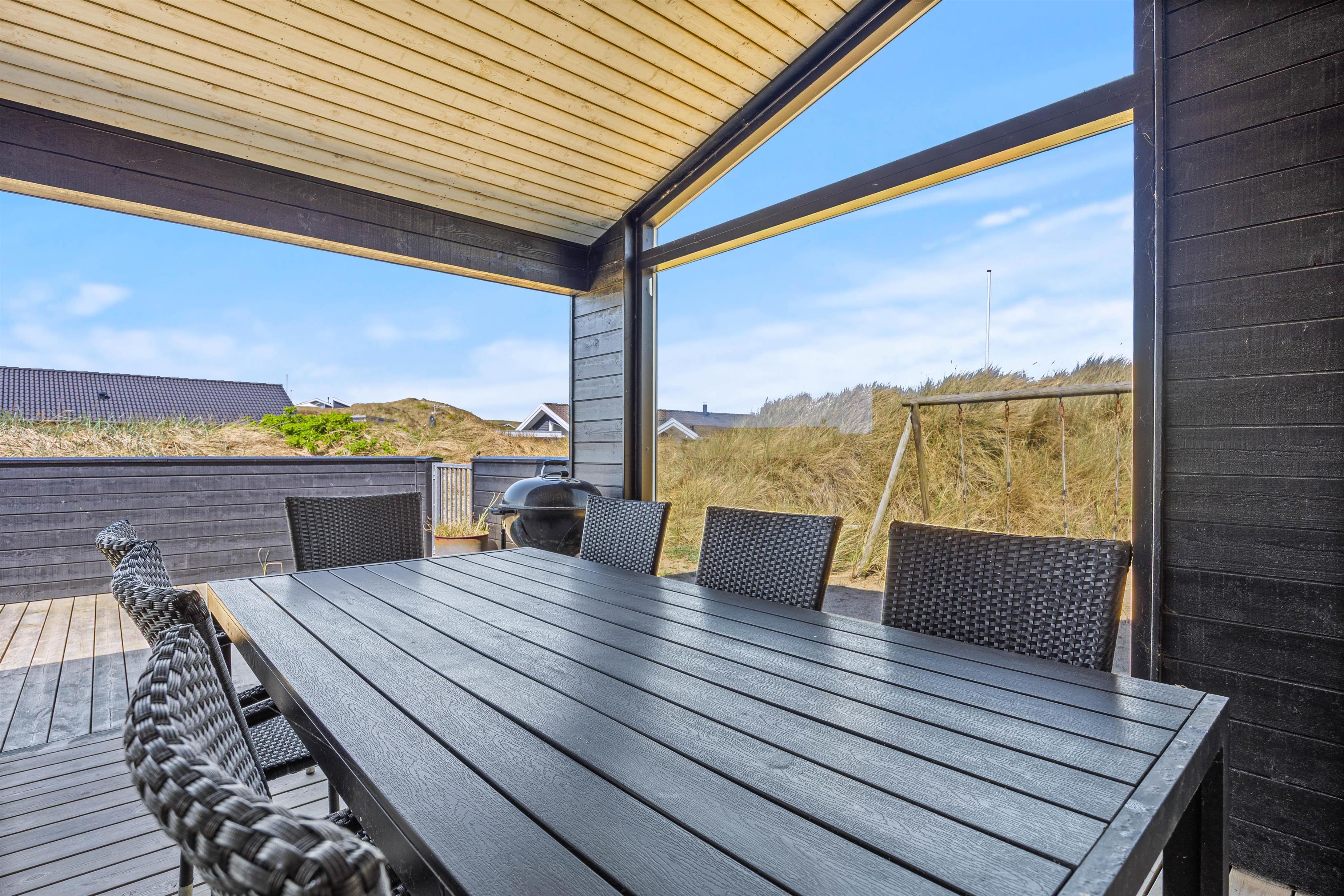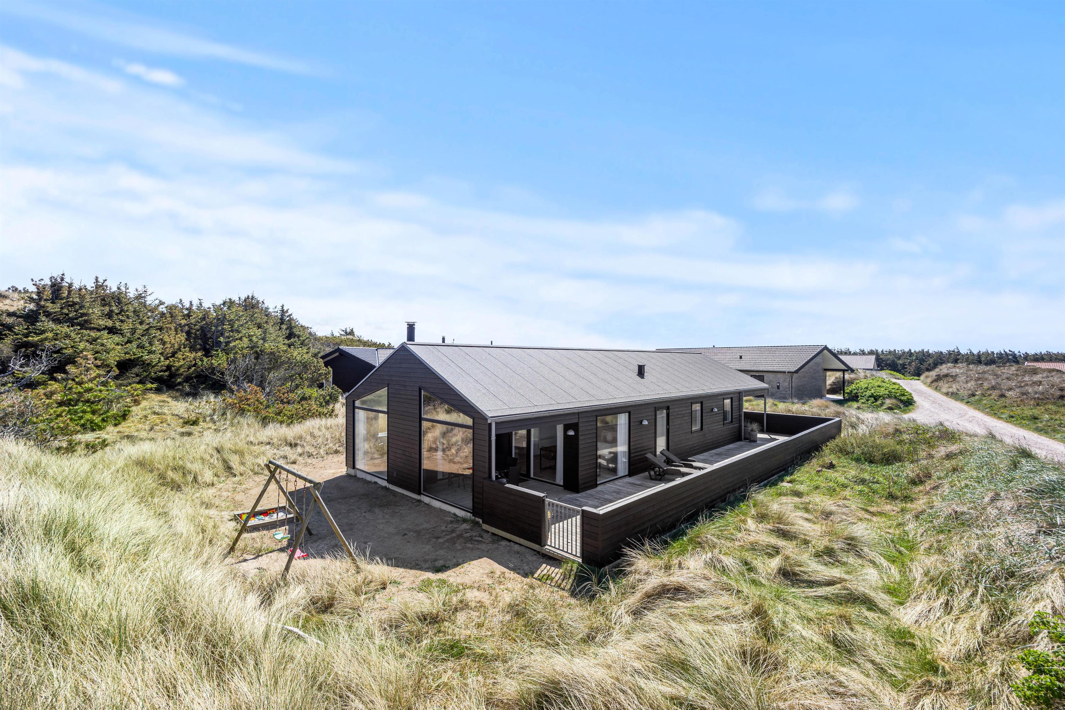 Omgivelserne omkring feriehuset er skønne, med flotte klitter så langt øjet rækker. Børnene kan få brugt en masse energi udenfor, da der både er en sandkasse og et gyngestativ, de kan hygge sig med.