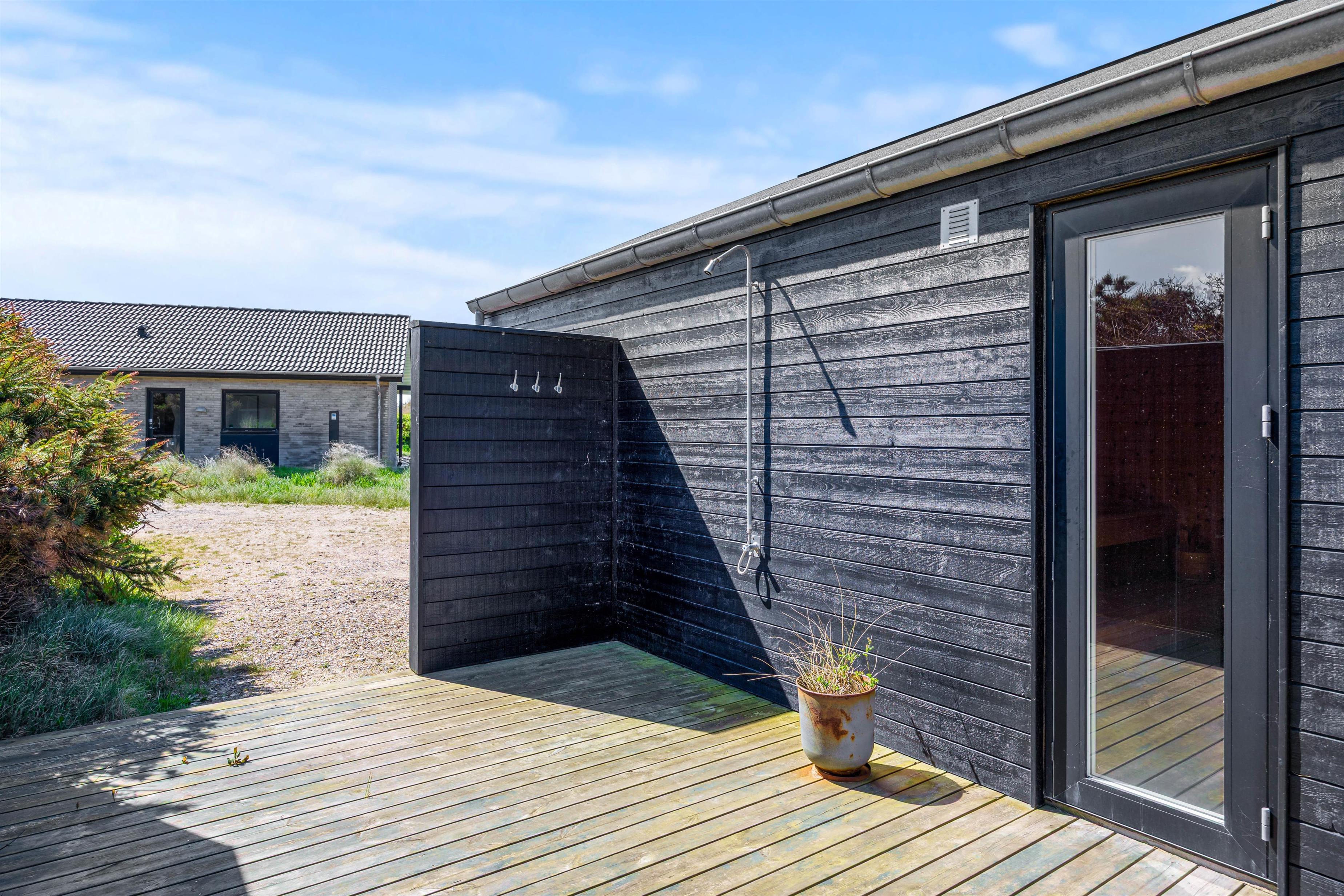 Ved sommerhuset er der en udebruser, som er rigtig dejlig efter en lang gåtur ved stranden med bare fødder i sandet. Udebruseren kan benyttes fra april til november.
