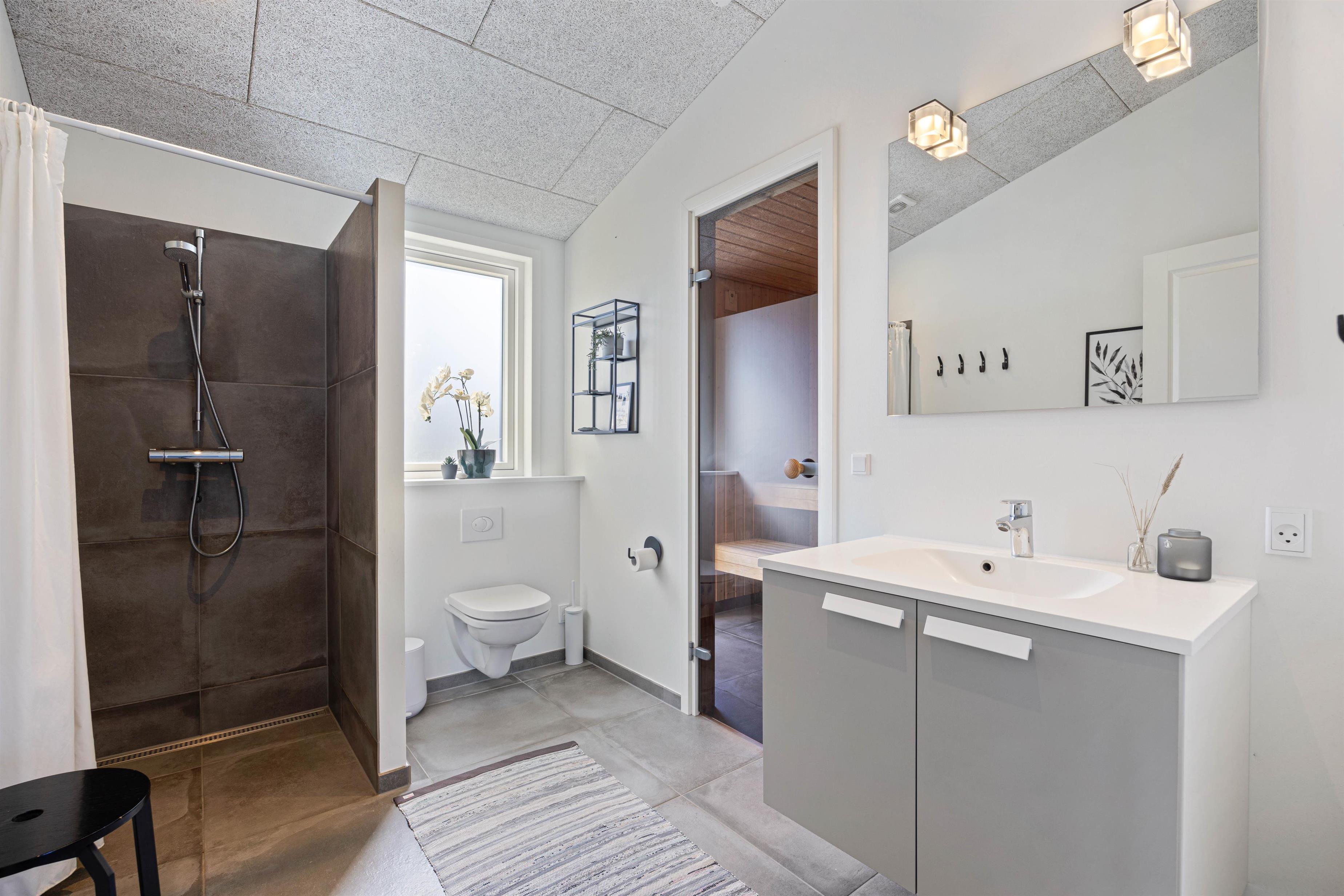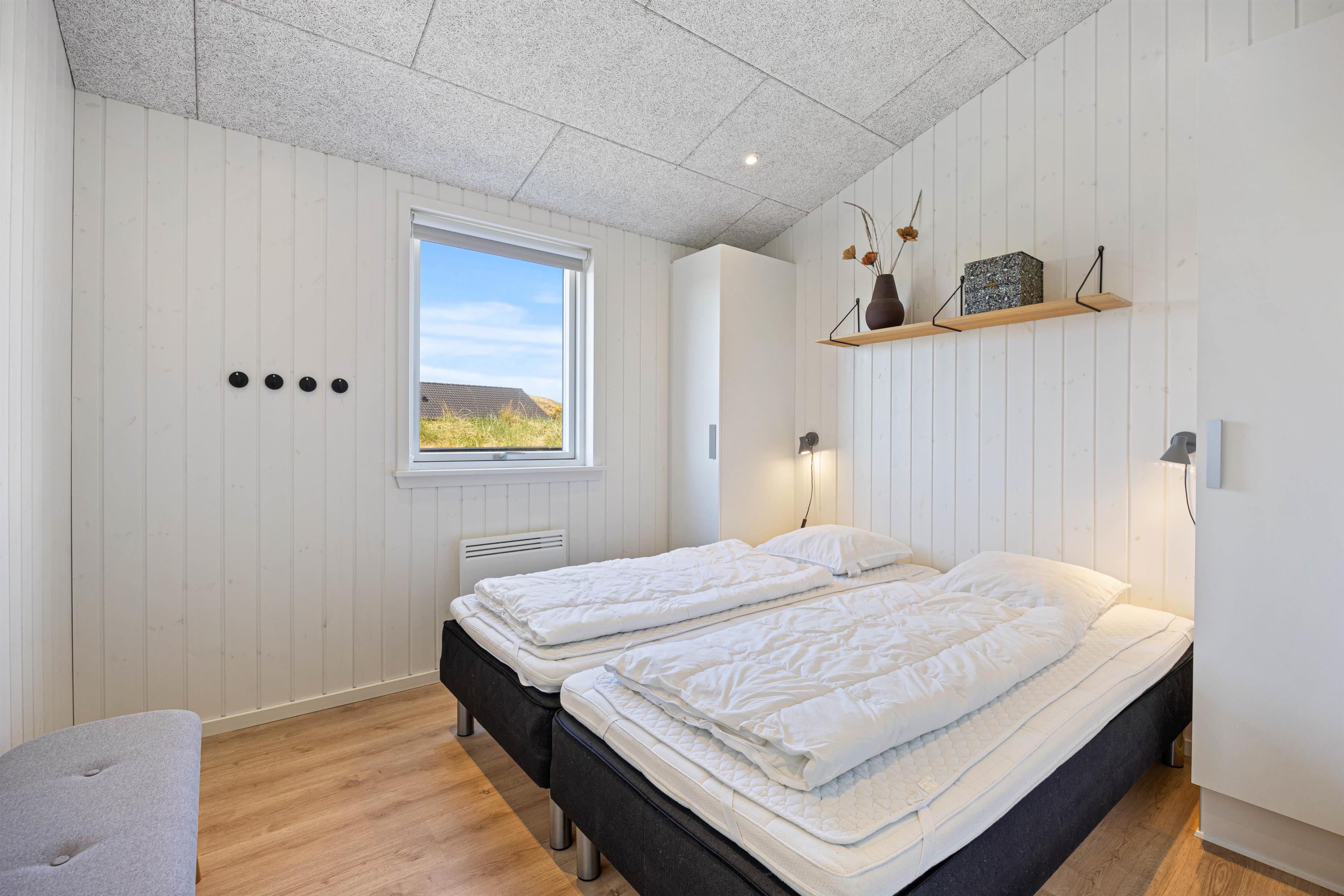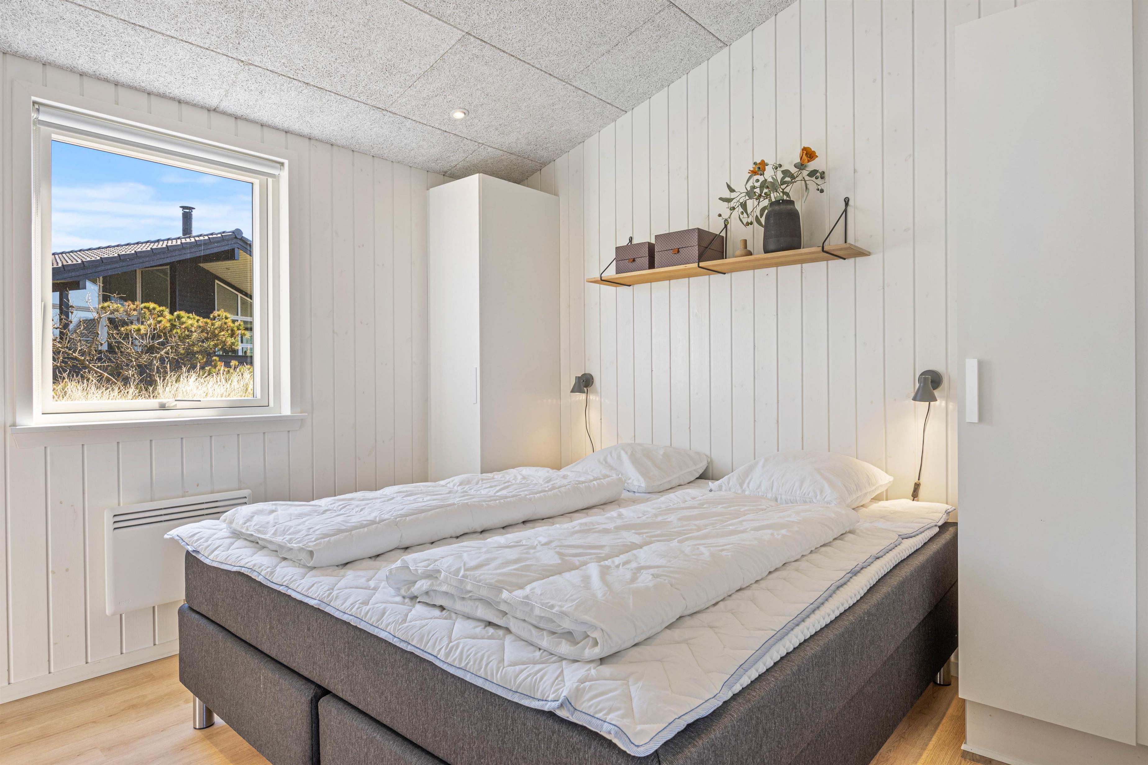 Der er skønne, lyse soverum med sovepladser til 6 personer. Derudover er der 2 lækre badeværelser, hvor der i det ene, også er adgang til en dejlig, varm sauna.