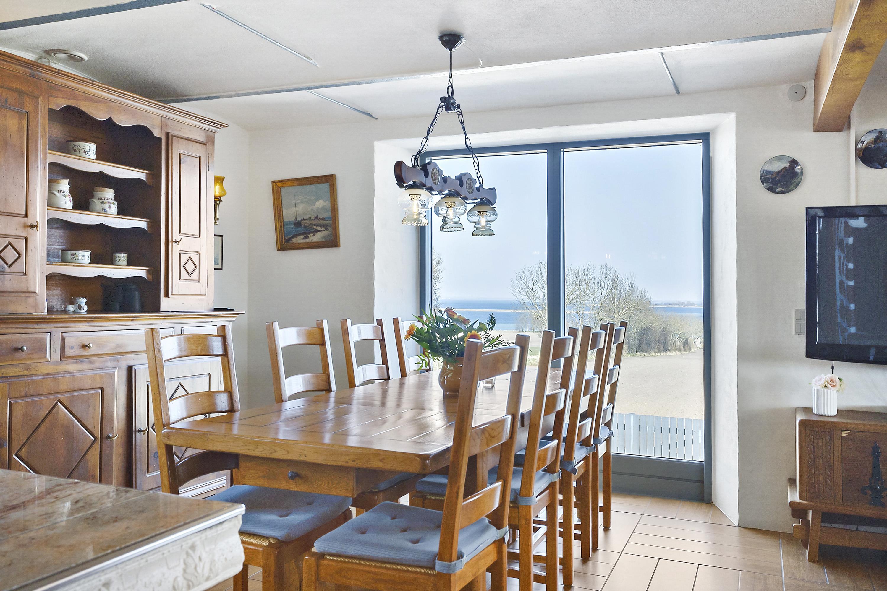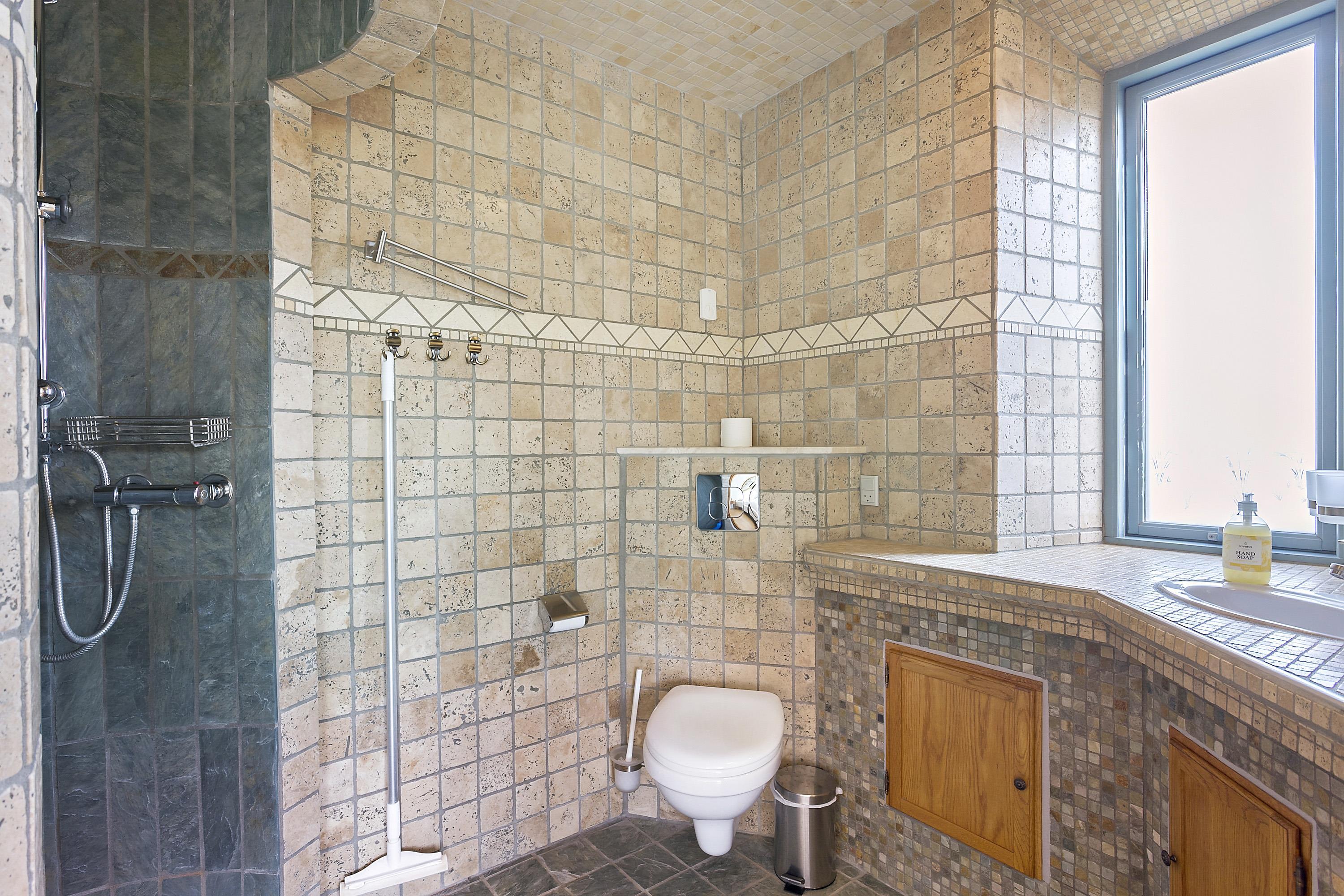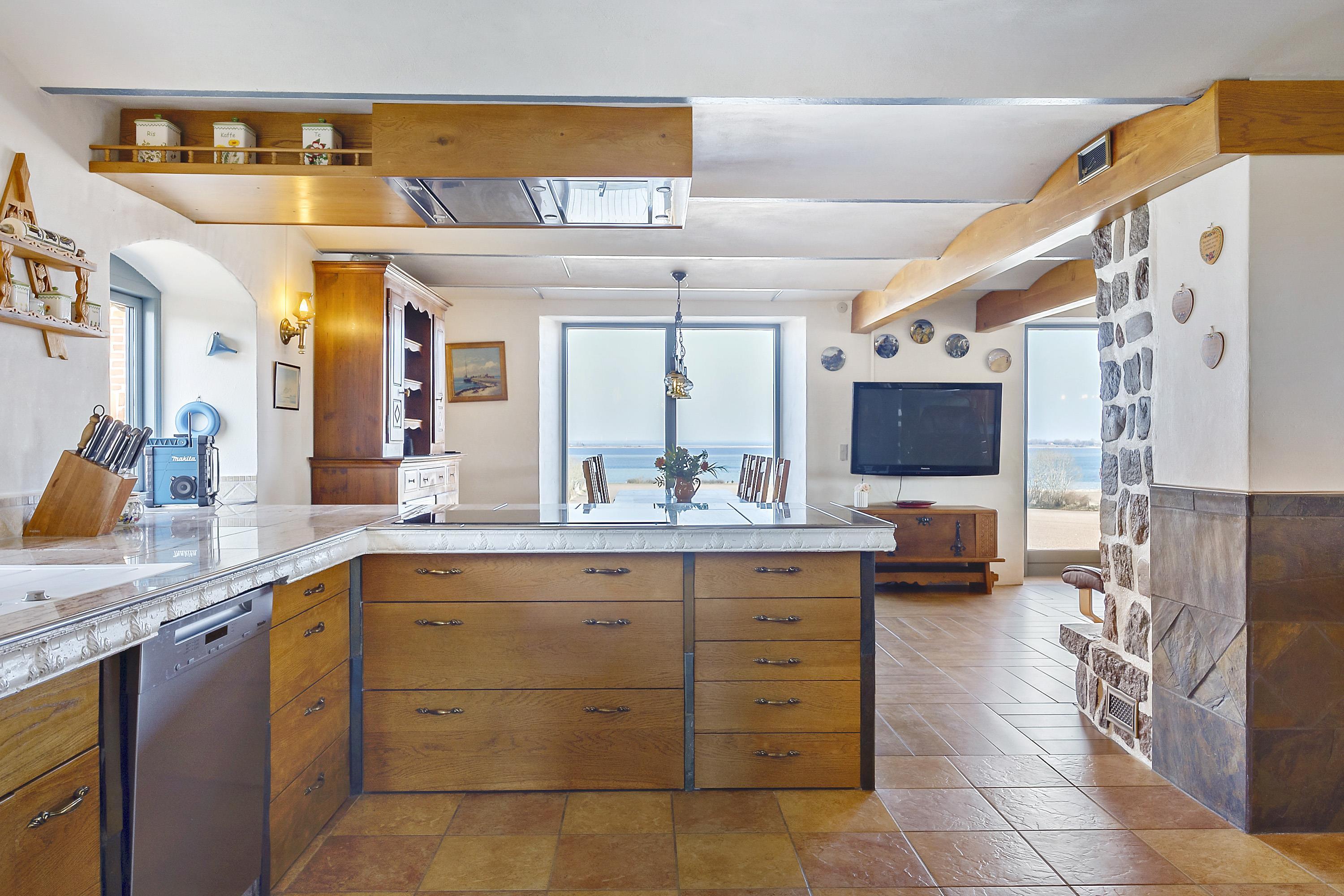 I udkanten af Ærøskøbing finder du dette flotte og gennemrenoveret hus på intet mindre end 340 m2 i 3 plan. Huset som oprindelig er fra 1937 har frem til år 2015 gennemgået en total renovering og fremstår i dag med meget flotte detaljer. Husejer har selv stået for hele renoveringen og har fået indrettet huset meget smagfuldt på alle 3 etager. Selve huset indeholder intet mindre end 6 soveværelser – Alle med meget flot badeværelse. På 3 af værelserne er der ligeledes 3 flotte hemse med 2 sovemadrasser på hver. I både stueetage og på første sal, er der to store køkkener i åben forbindelse med spisestue og opholdsstue. I stueplan findes ligeledes et gæstetoilet. Og fra stort set alle rum, er der den mest fantastiske udsigt over havet. I kælderen har husejer indrettet et virkelig flot badeværelse med stor spa og dobbelt brusekabine. Går man udenfor, er der anlagt en stor flisebelagt terrasse og installeret en sauna med vinduer mod havet.