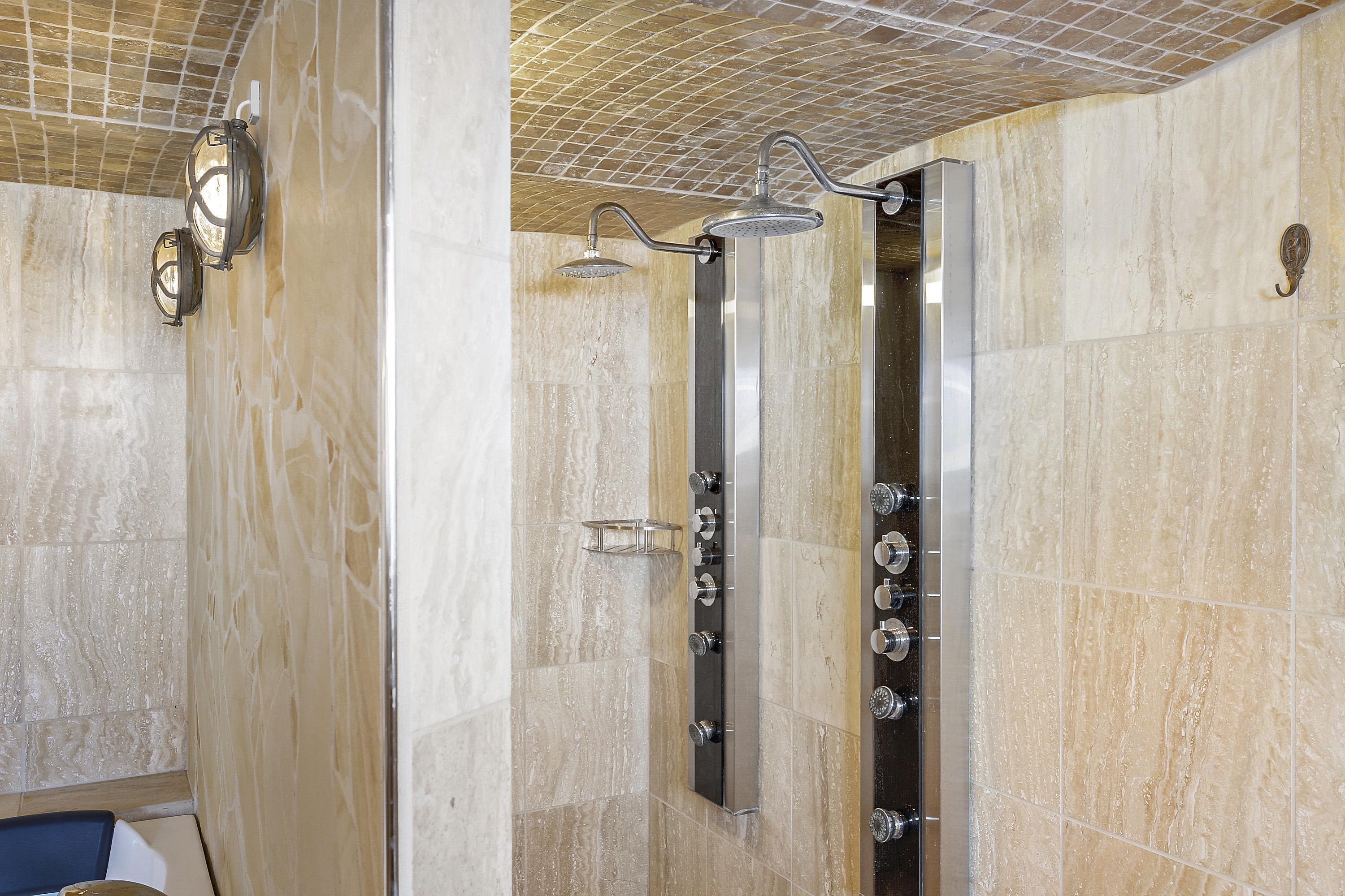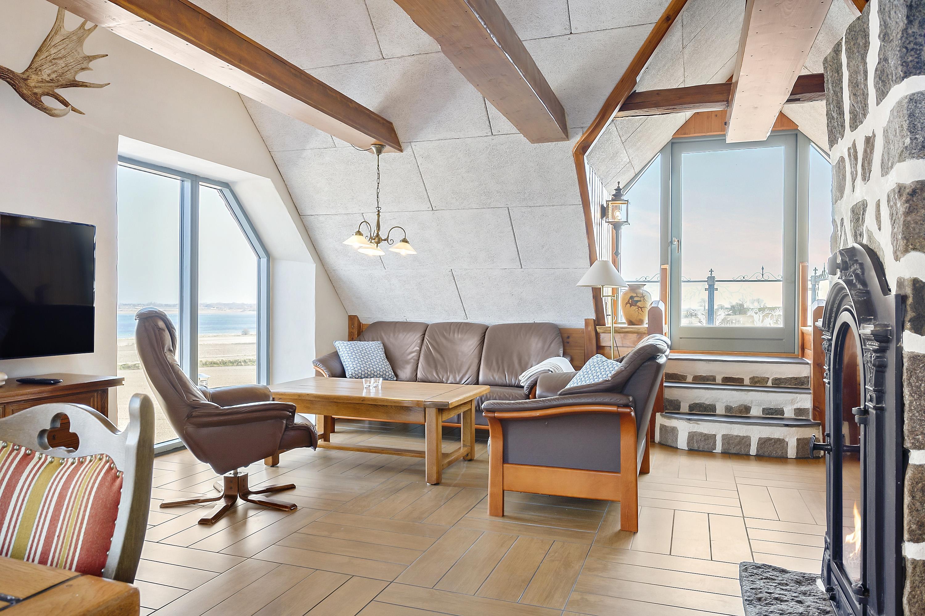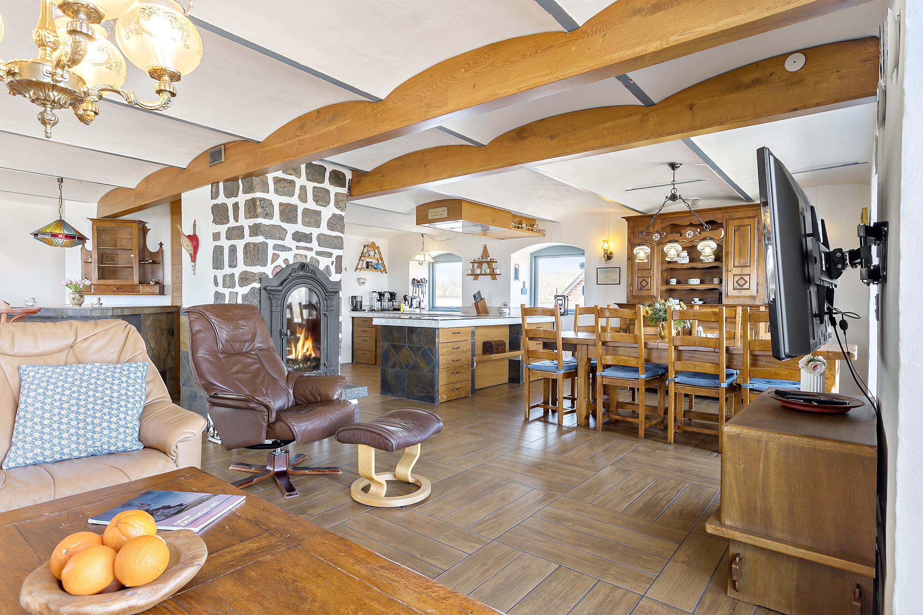 I udkanten af Ærøskøbing finder du dette flotte og gennemrenoveret hus på intet mindre end 340 m2 i 3 plan. Huset som oprindelig er fra 1937 har frem til år 2015 gennemgået en total renovering og fremstår i dag med meget flotte detaljer. Husejer har selv stået for hele renoveringen og har fået indrettet huset meget smagfuldt på alle 3 etager. Selve huset indeholder intet mindre end 6 soveværelser – Alle med meget flot badeværelse. På 3 af værelserne er der ligeledes 3 flotte hemse med 2 sovemadrasser på hver. I både stueetage og på første sal, er der to store køkkener i åben forbindelse med spisestue og opholdsstue. I stueplan findes ligeledes et gæstetoilet. Og fra stort set alle rum, er der den mest fantastiske udsigt over havet. I kælderen har husejer indrettet et virkelig flot badeværelse med stor spa og dobbelt brusekabine. Går man udenfor, er der anlagt en stor flisebelagt terrasse og installeret en sauna med vinduer mod havet.