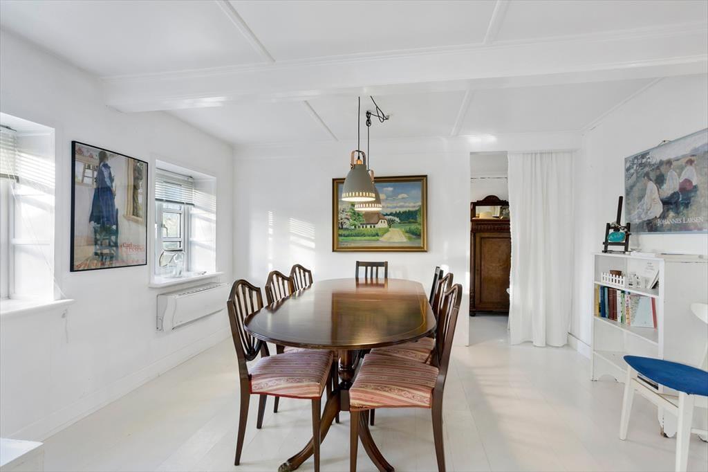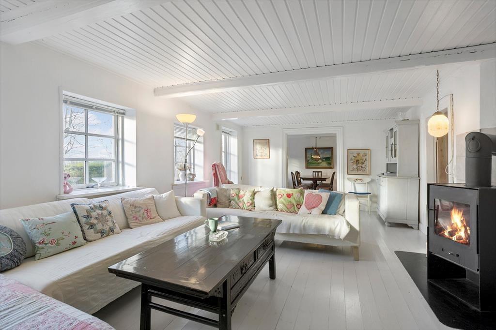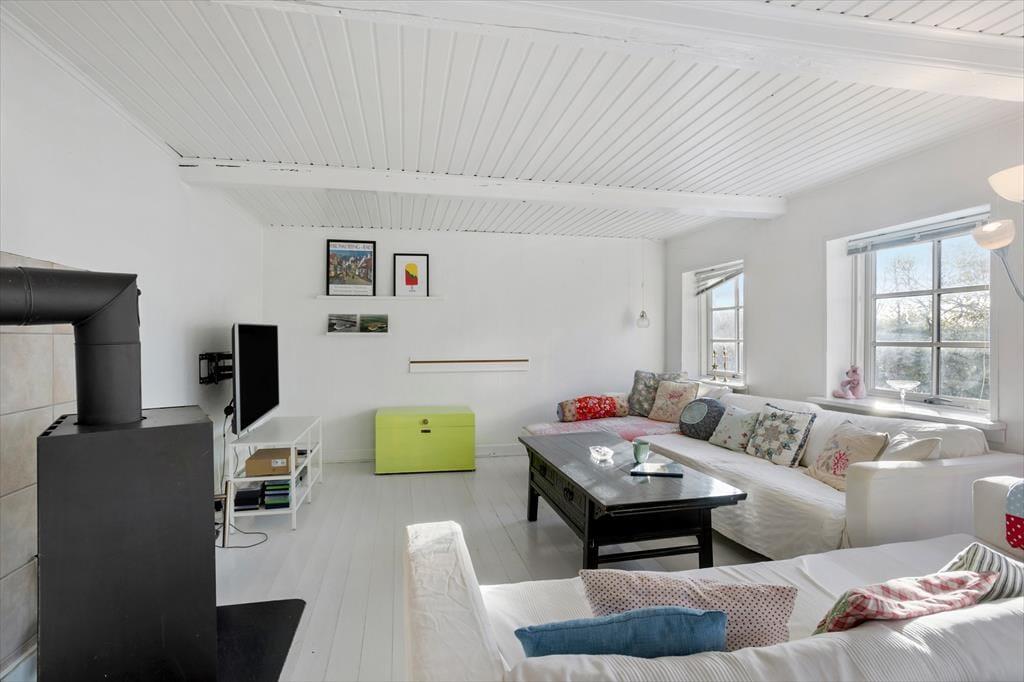 Stor, dejlig gård udlejes til den store familie, til to familier eller til en gruppe venner på tur. Gården er bygget i 1893 og nænsomt restaureret med respekt for den gamle stil og charme. Her fritlagte bjælker, hvidmalede gulve og masser af fine detaljer. Huset er helt up-to date med internet, opvaskemaskine, tørretumbler, tv og 2 nye badeværelser begge med brus.