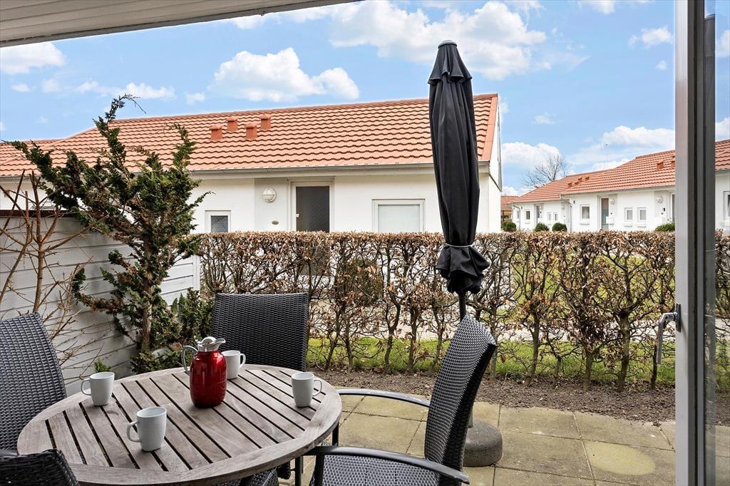 Lejligheden har en dejlig terrasse, der ligger ud til et fællesområde med en lille græsplæne. Her kan du nyde solens stråler og de rolige omgivelser. Det er det perfekte sted til at starte dagen med morgenmad under åben himmel eller afslutte dagen med en grillaften, hvor du kan tilberede lækre måltider udendørs. Det grønne område omkring terrassen giver en følelse af at være tæt på naturen, selvom du befinder dig midt i byen. Når du bor her, kan du også let tage en kort gåtur til den nærliggende strand og dyppe tæerne i vandet eller tage på en frisk morgentur langs havnen.