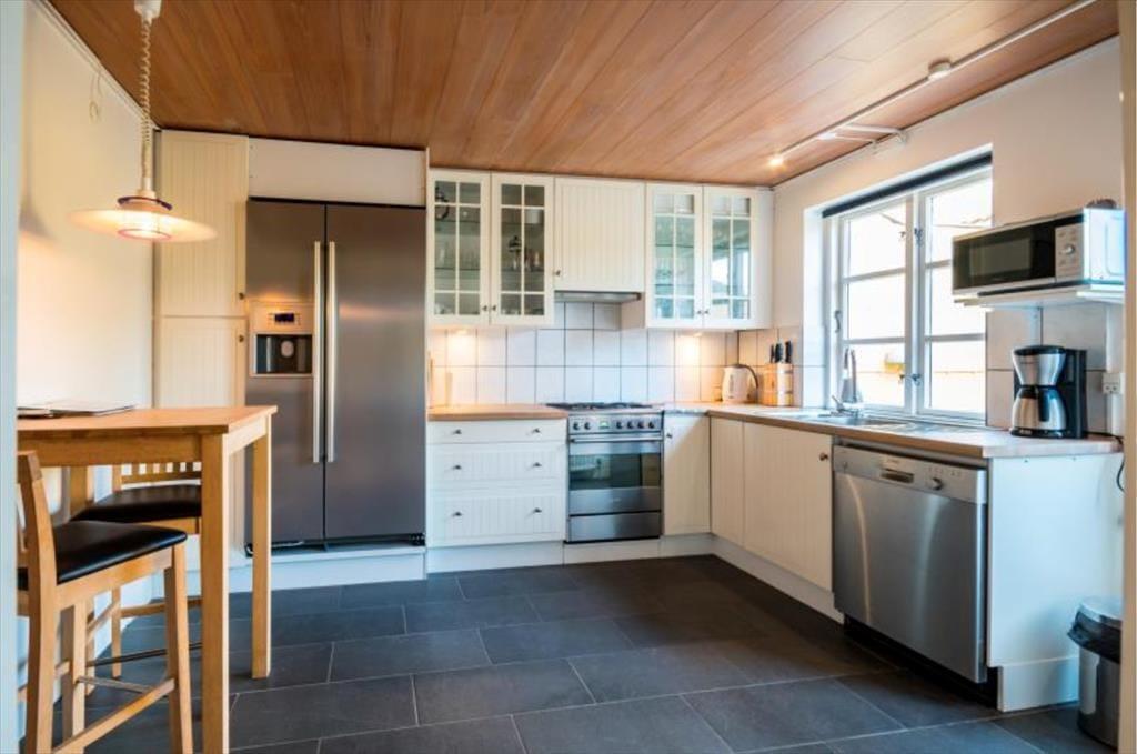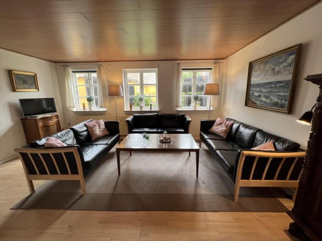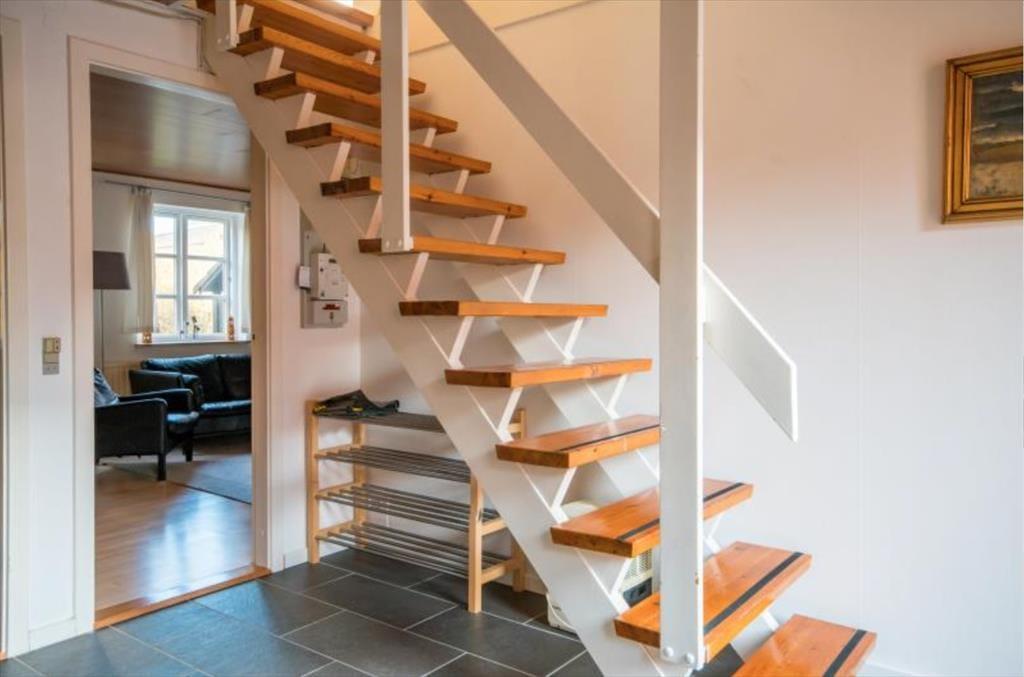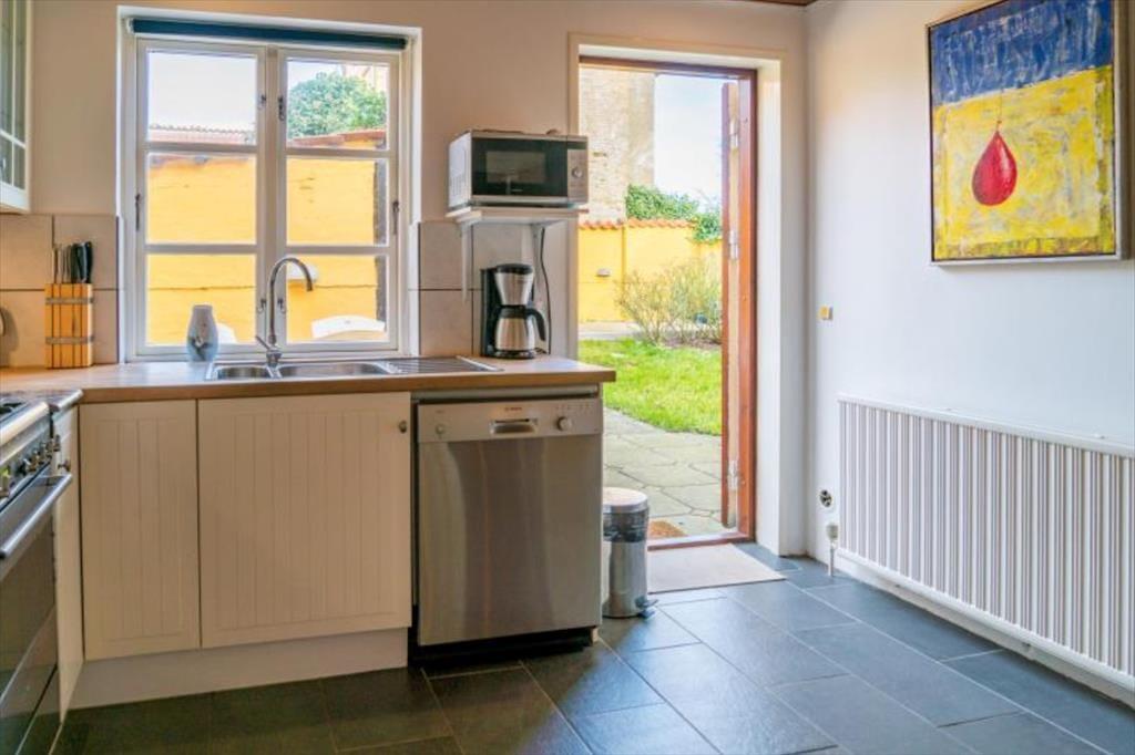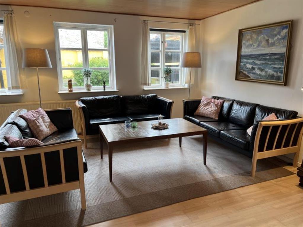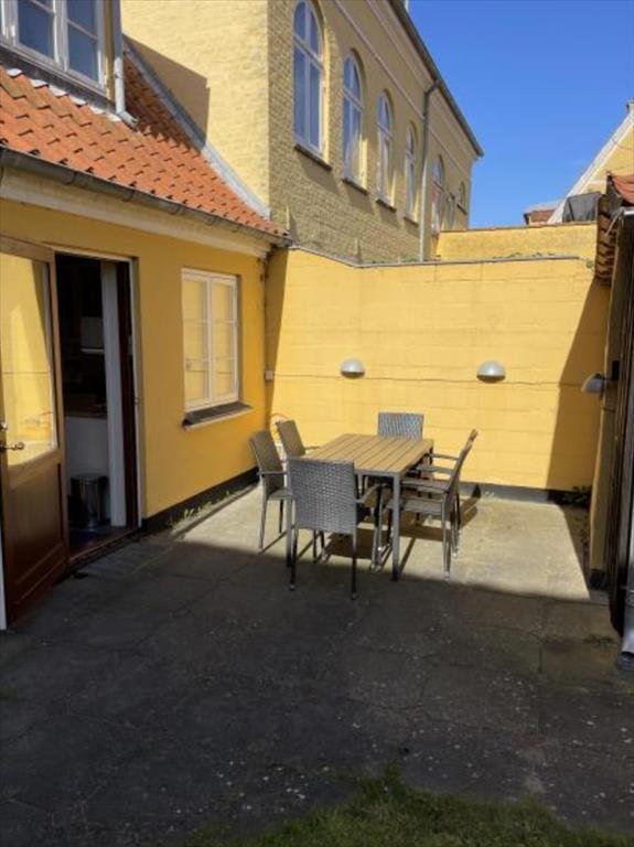 Entre med trappe til 1.salen.. Badeværelse med vaskemaskine. Spise-opholdsstue med Internet, TV. Køkken med spiseplads, køle/fryseskab, gaskomfur, opvaskemaskine. Fra køkkenet udgang til dejlig gårdhave. Havemøbler. Grill.
