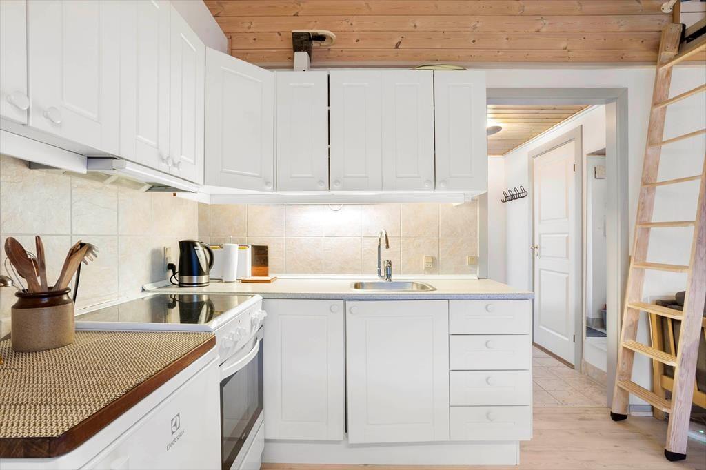 Lækker lys og venlig ferielejlighed med hems. Tæt på indkøb havn og en lille rask travetur så er du ved stranden. Entré. Badeværelse med bruser. Køkken/stue/alrum med udgang til terrasse. Soveværelse med dobbeltseng, samt hems med to sovemuligheder. Køle/fryseskab. Boligen har TV og internet. Terrasse med havemøbler. Grill. Parkering i området.