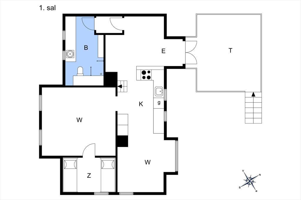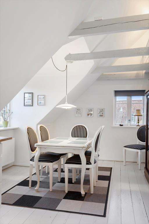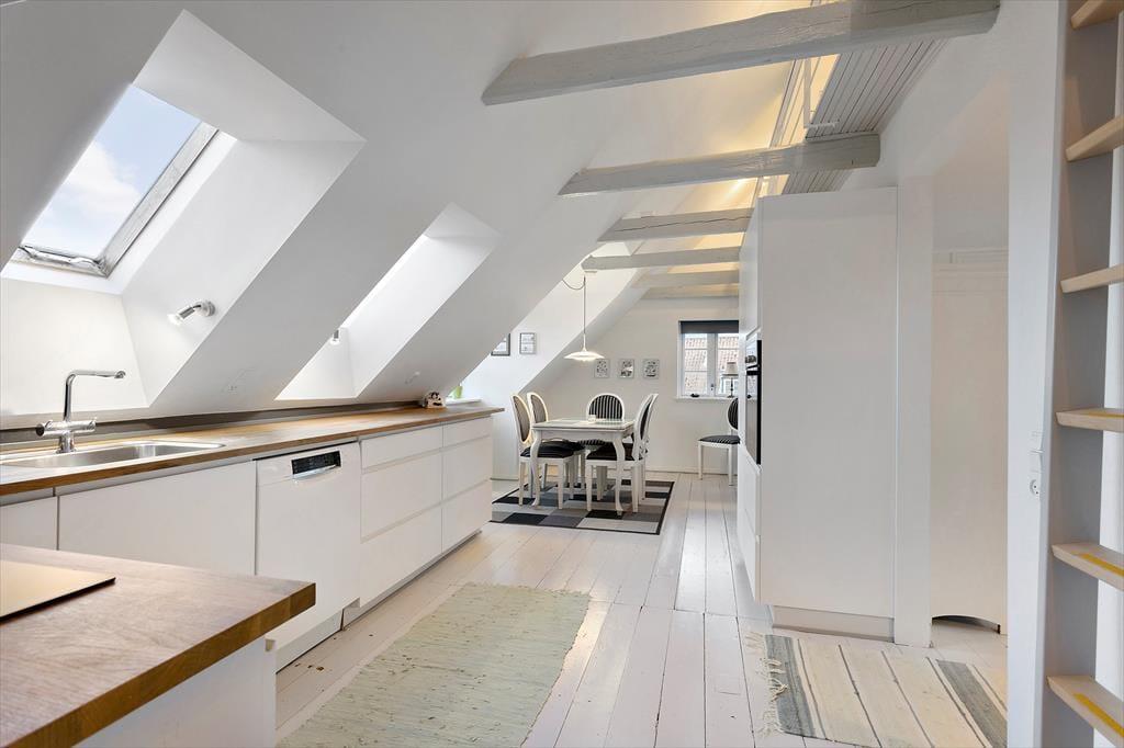 Lejligheden er ideel til 2 voksne, evt med 2 børns som kan sove på den store lyse hems.