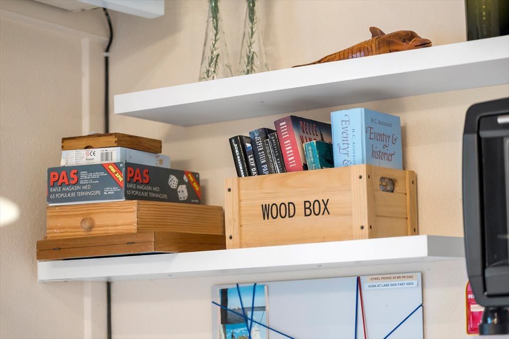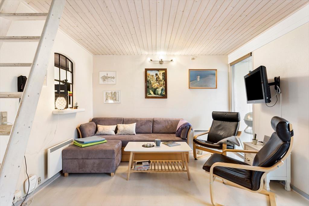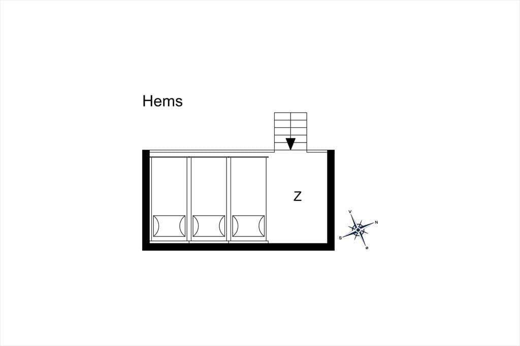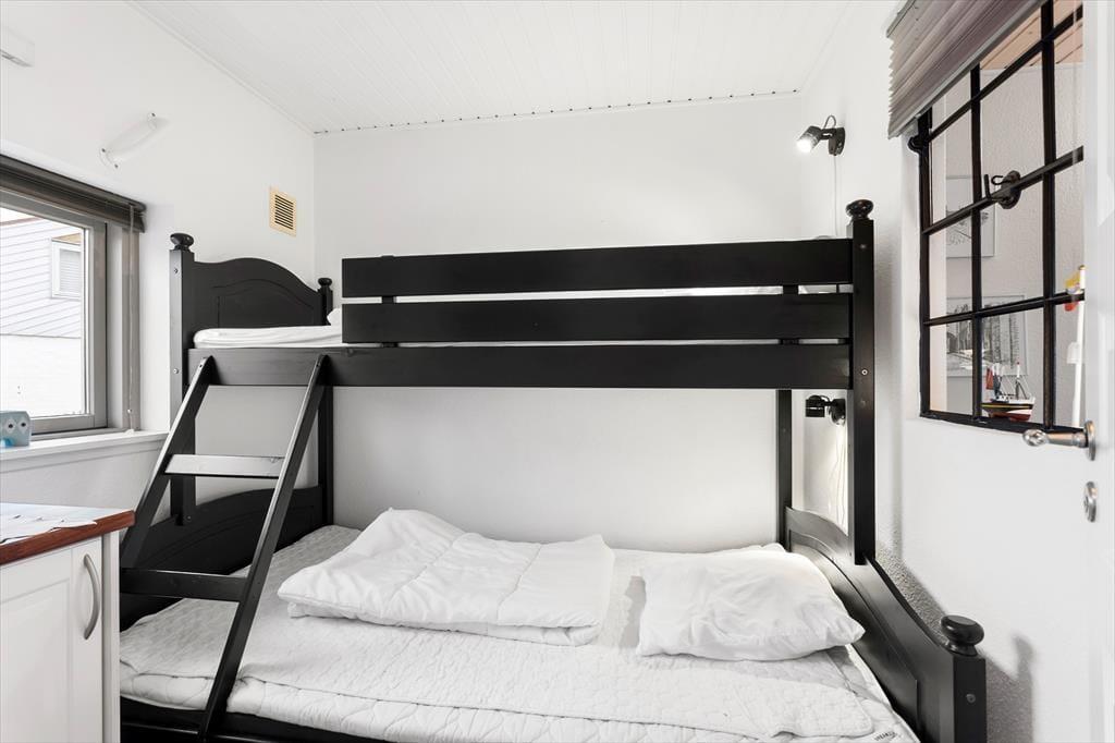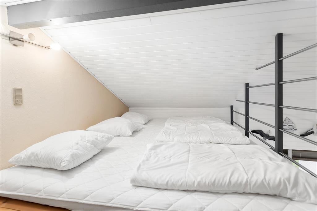 Sovepladser - Soveværelse med 1½ mandsseng, samt enkelt køje hen over. Sovesofa i opholdsrummet, samt en hems med 3 sovepladser.