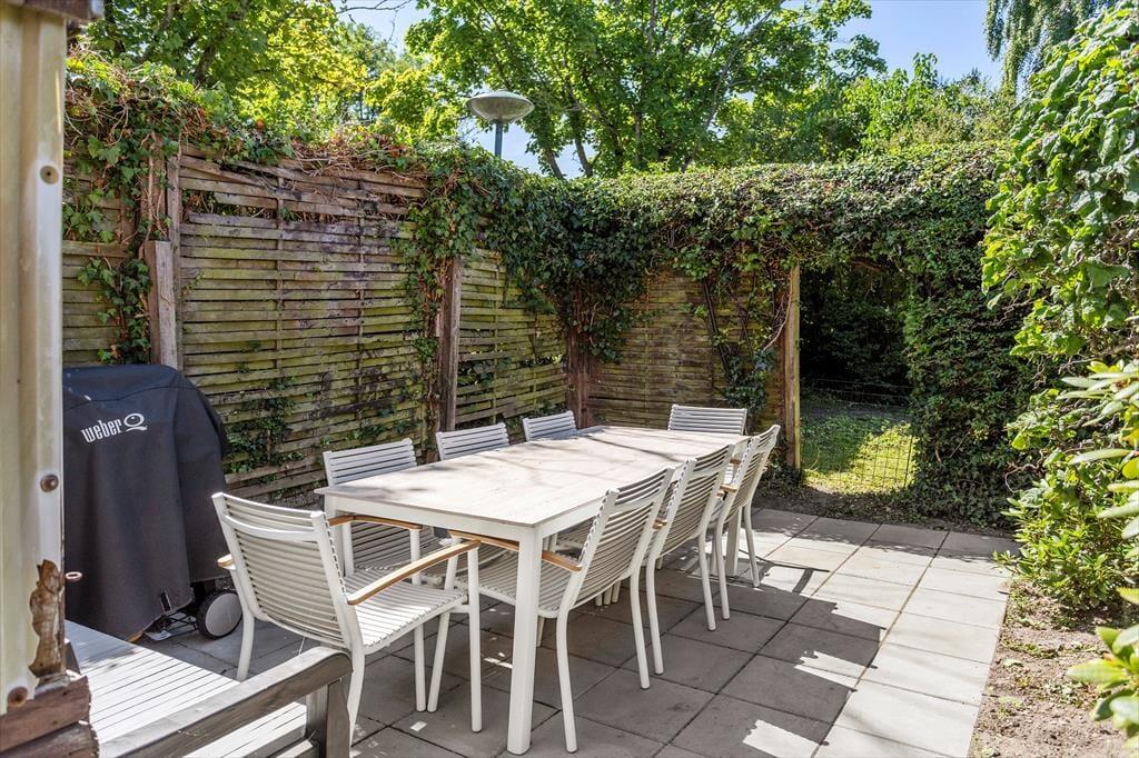 Udenfor finder du en rolig og ugeneret have, perfekt til afslapning og leg, samt en fantastisk terrasse med udsigt, hvor morgenkaffen og aftensolen får selskab af havets nærvær. Her kan du nyde livet med et glas vin eller tænde op i havens grill og tilberede friske råvarer fra de lokale butikker. Og har du firbenede venner? Op til 2 hunde er hjerteligt velkomne.