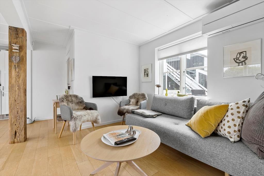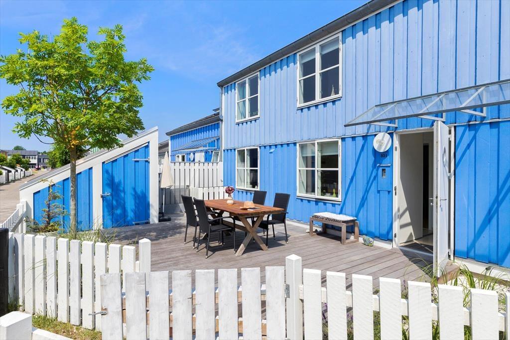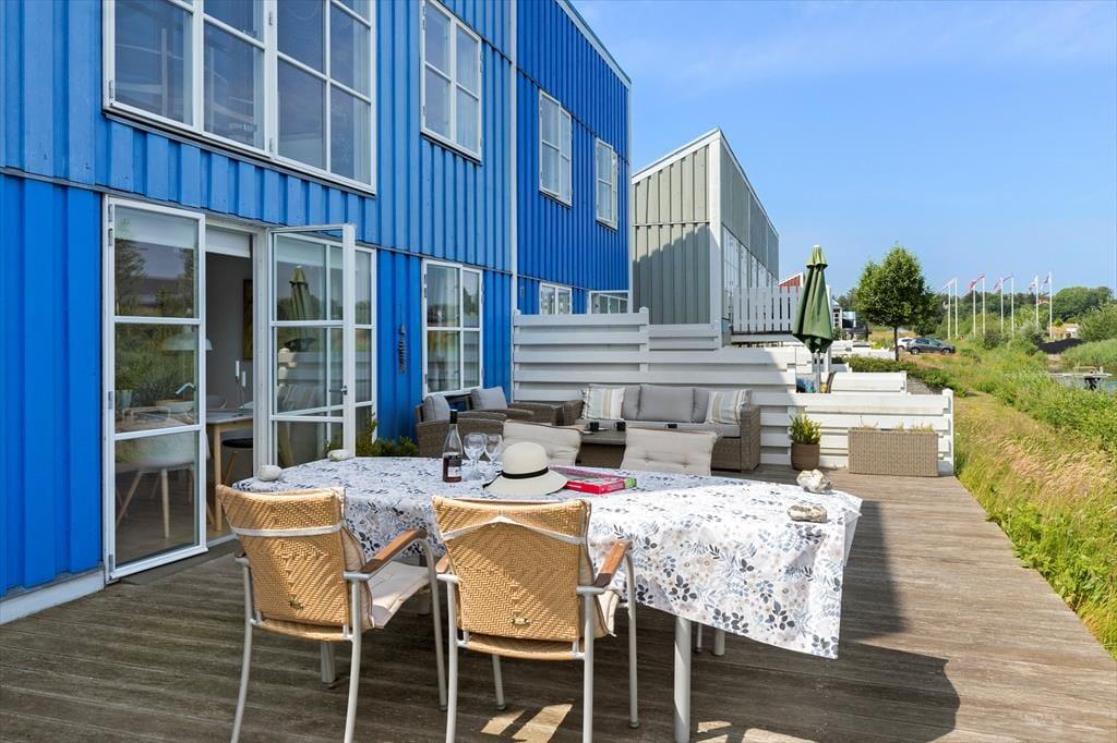 Lejligheden er beliggende i et hyggeligt miljø med farverige feriehuse og udsigt til kanalen. Feriebyen er for både familier, unge og ældre med mulighed for at gå på restaurant, multihaller, lystbådehavn og meget mere, inden for få hundrede meter. 1 stor og dejlige terrasse med afslappende møbler og grill. Terrassen er sydvendt/solrig hele dagen så her er virkelig mange fine m2 der kan nydes dagen lang.