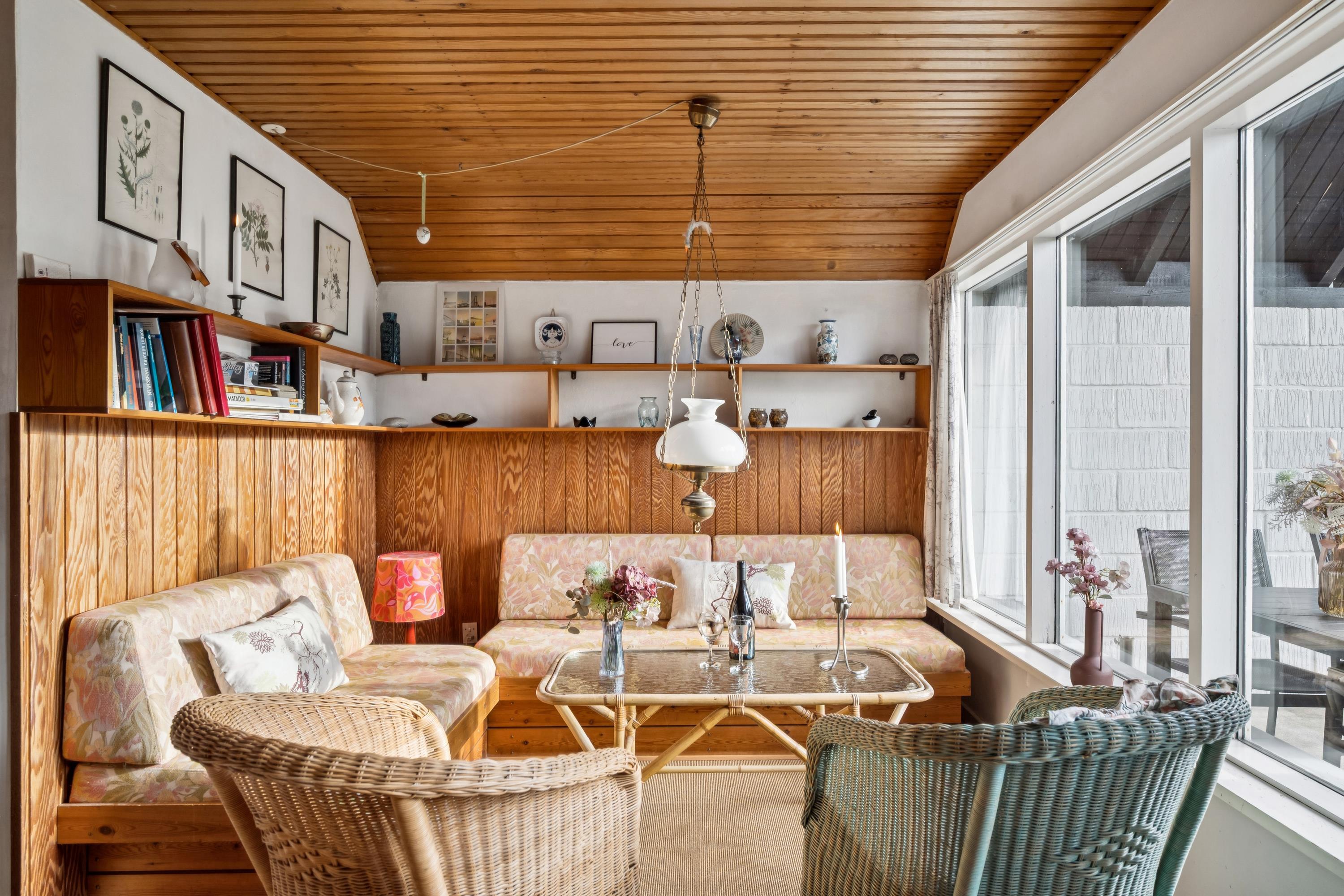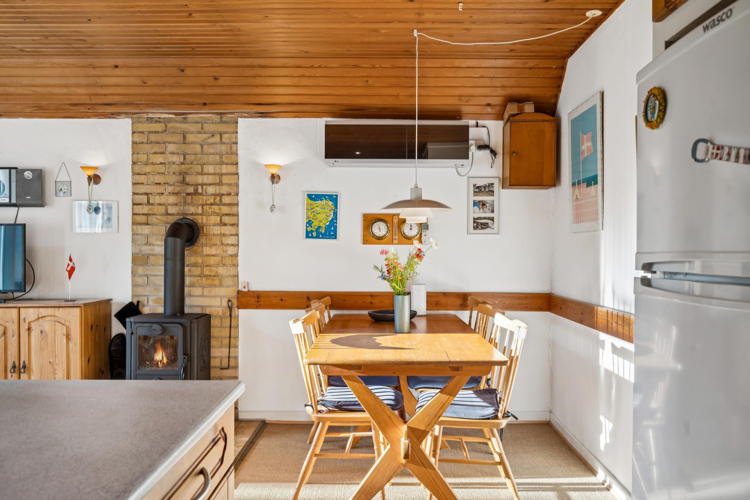 Velkommen til dette lille autentiske retrohus med stråtag. Her har ejeren valgt at beholde det originale look, de fleste steder, dog med nogle nutidige tiltag. Her finder man en lille hyggelig stue med brændeovn og varmepumpe som let kan opvarme det hele. I forbindelse med stuen ligger det lille køkken med original køkkentapet og hvor opvasken foregår med håndkraft. Soveværelse med en god dobbeltseng samt et nyere badeværelse med bruseniche, gulvvarme og vaskemaskine samt et babybadekar og puslepude. Husets sidste to sovepladser finder man i et nyere anneks med to enkeltsenge og som opvarmes med en el radiator. Til de små feriegæster er der høj barnestol og barneseng. Udendørs er der en hyggelig terrasse med havemøbler og til de små feriegæster er der en sandkasse. Der er en stor græsplæne, velegnet til leg og udendørs hygge. Hvis der skal grilles, henstilles der til, at det bliver på græsplænen og ikke på terrassen af hensyn til husets stråtag og brandfare.