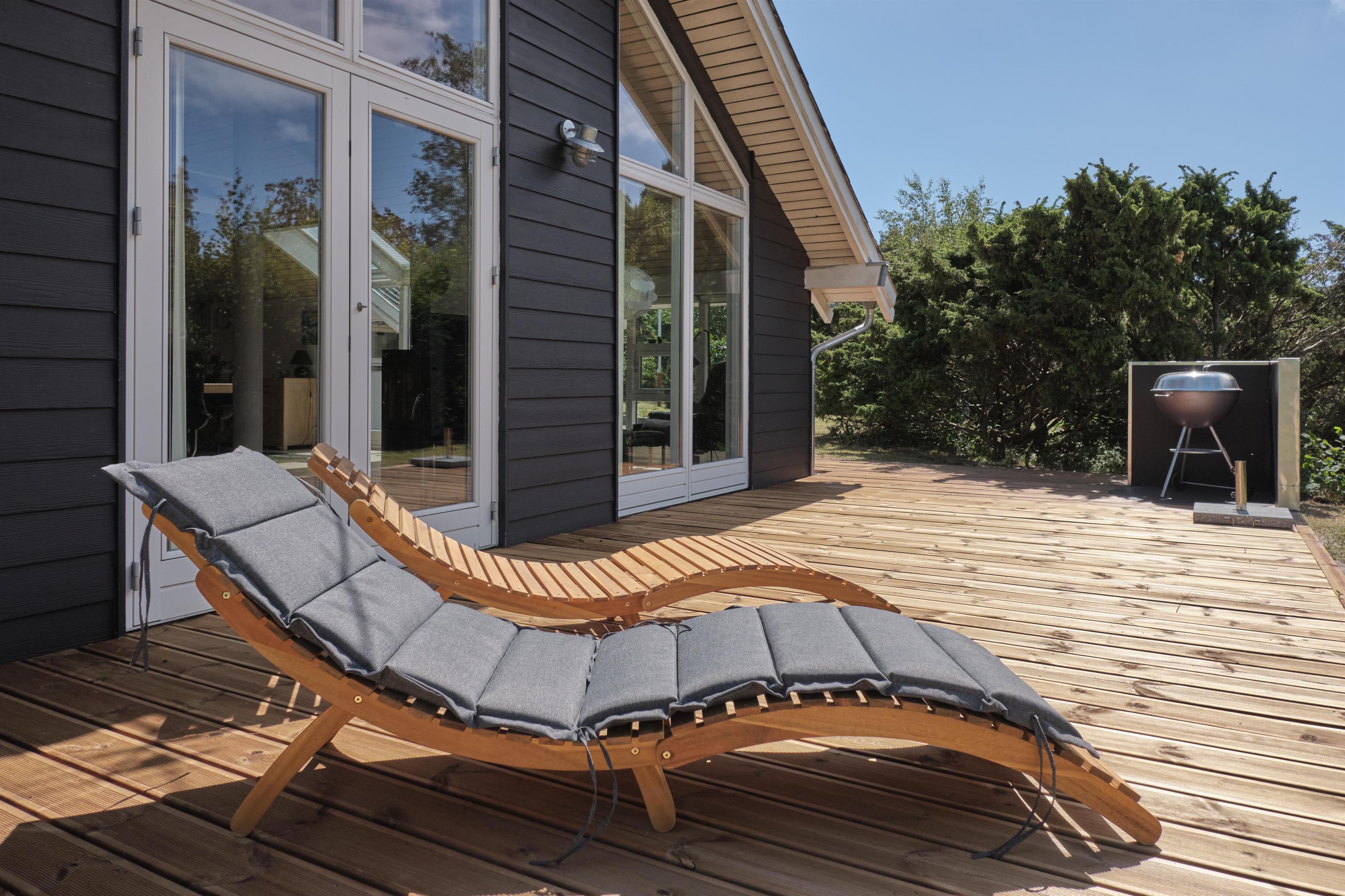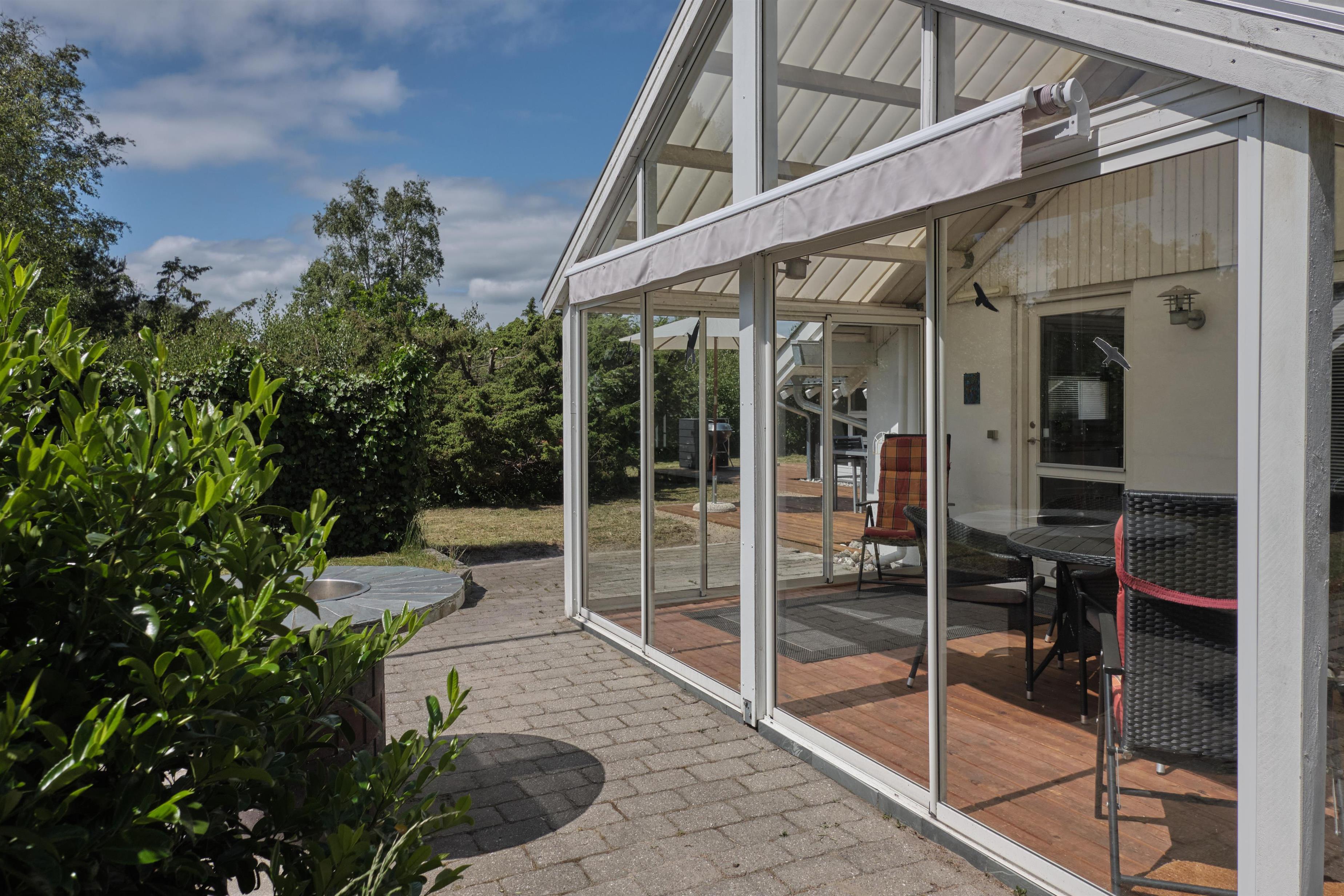 Rummeligt, totalrenoveret feriehus tæt på børnevenlige Øer Strand med skøn udestue og store terrasser.