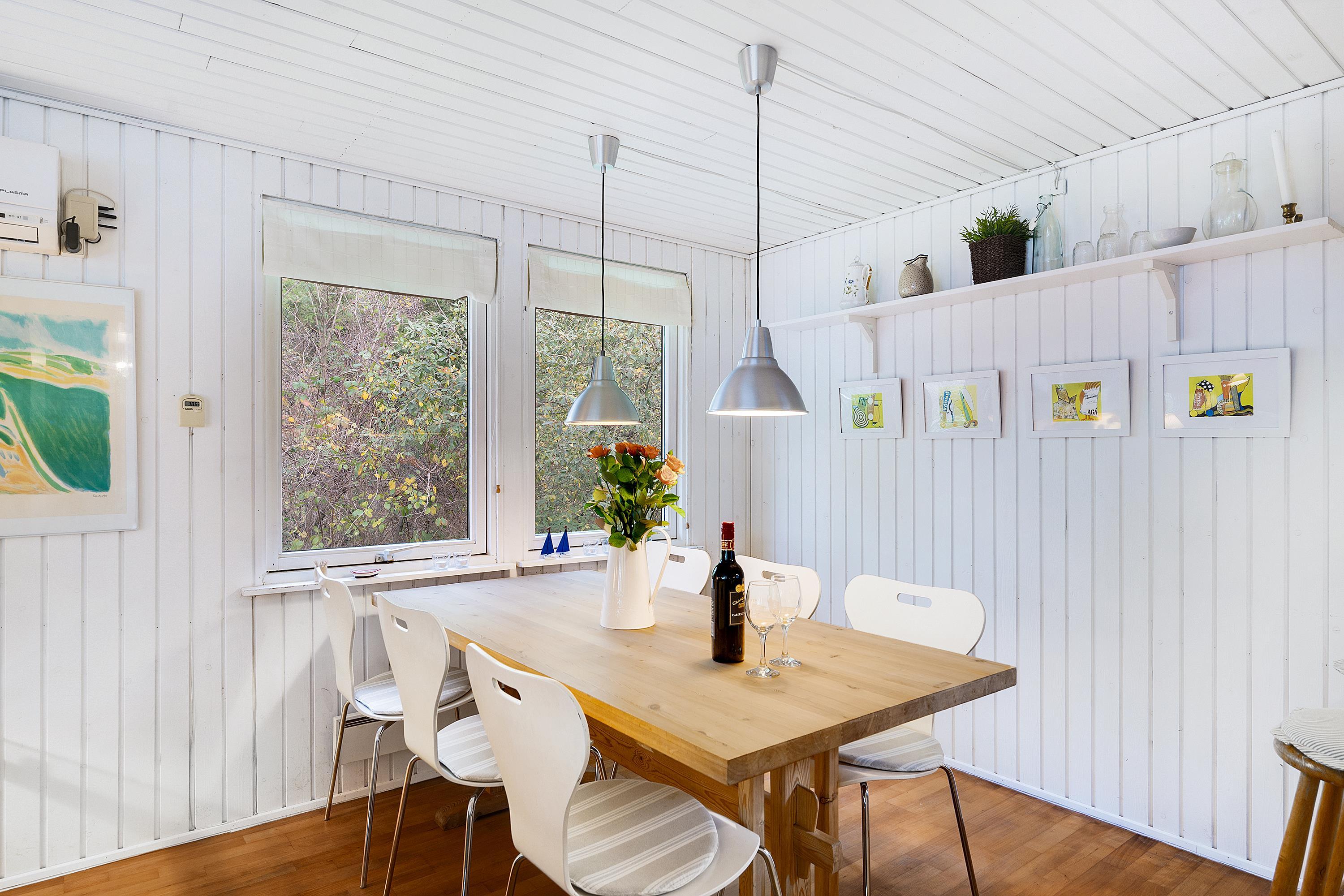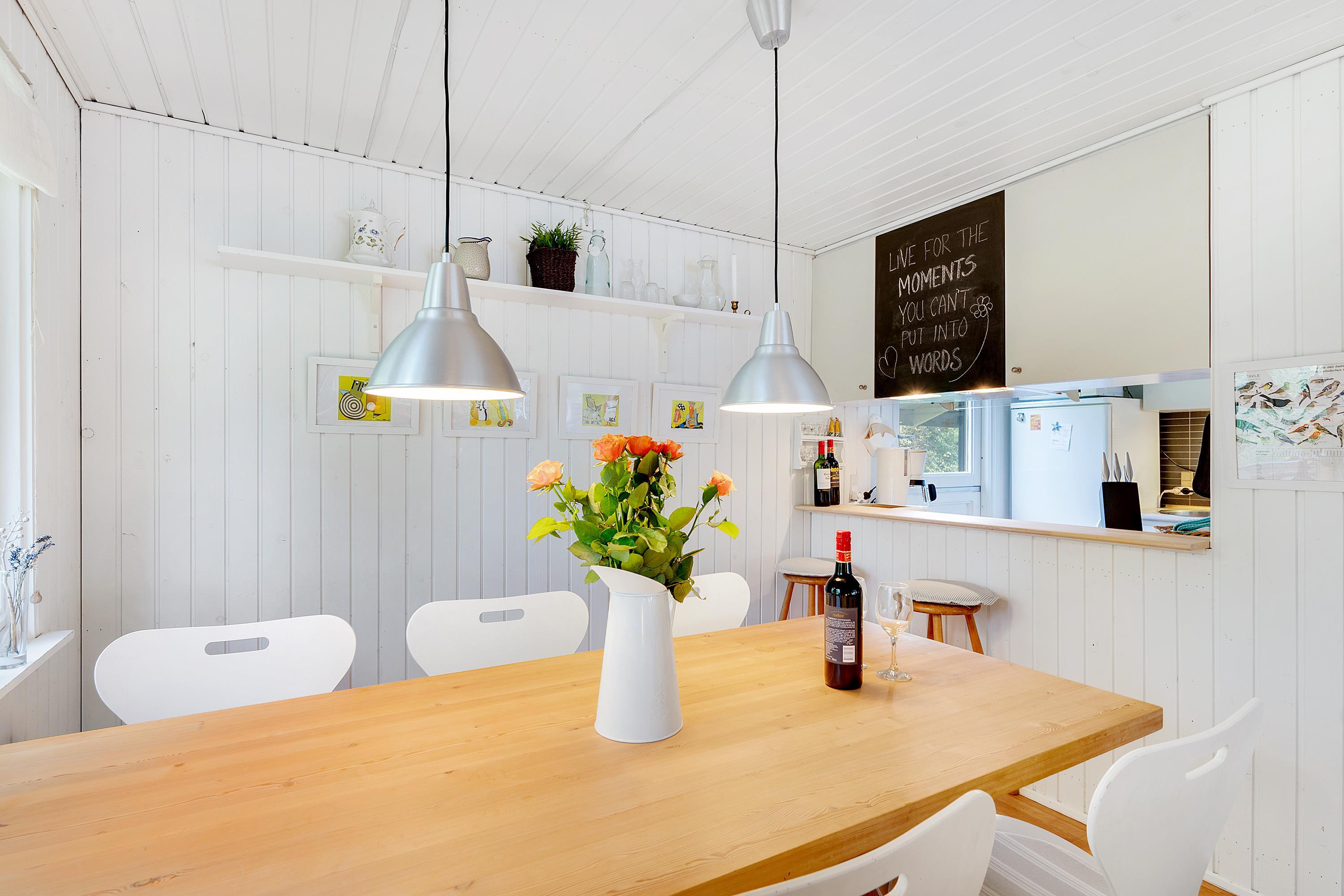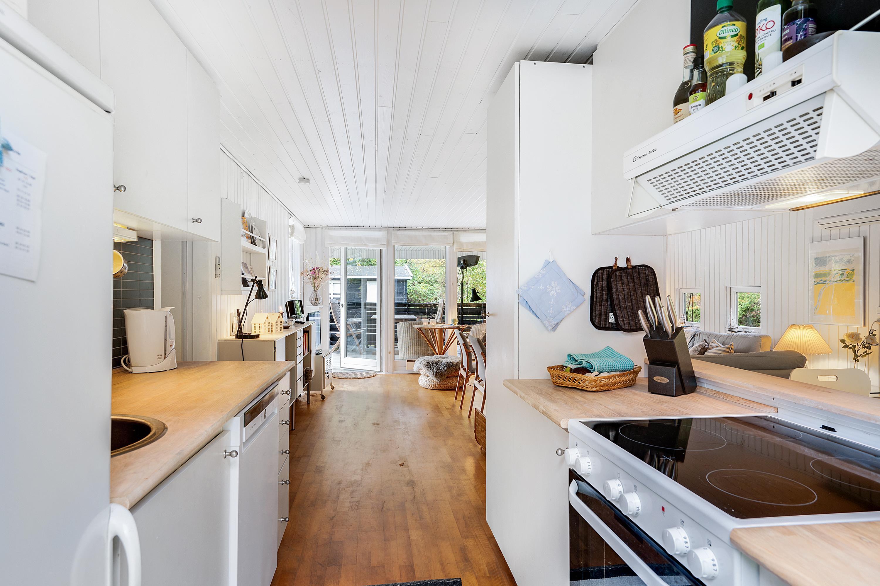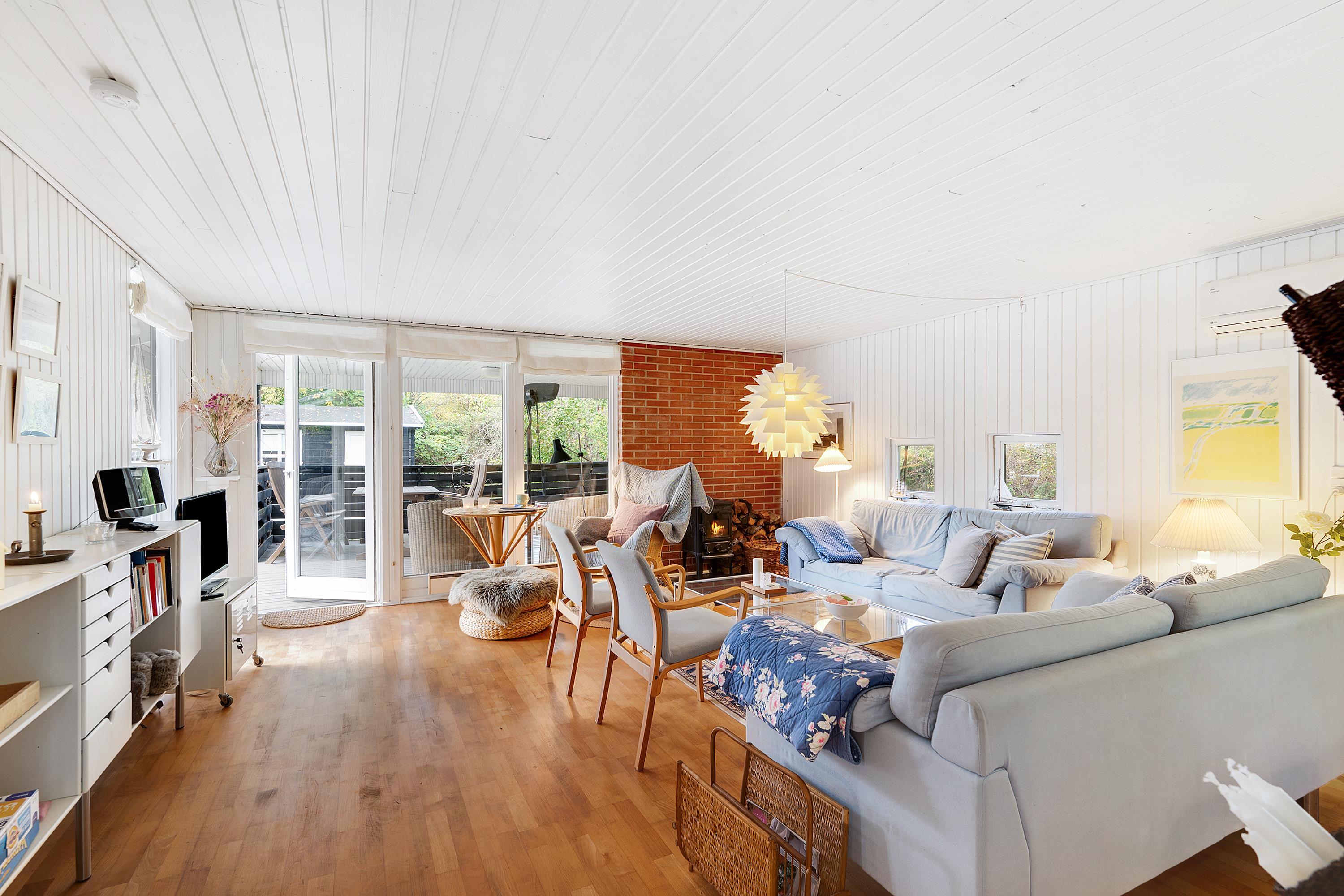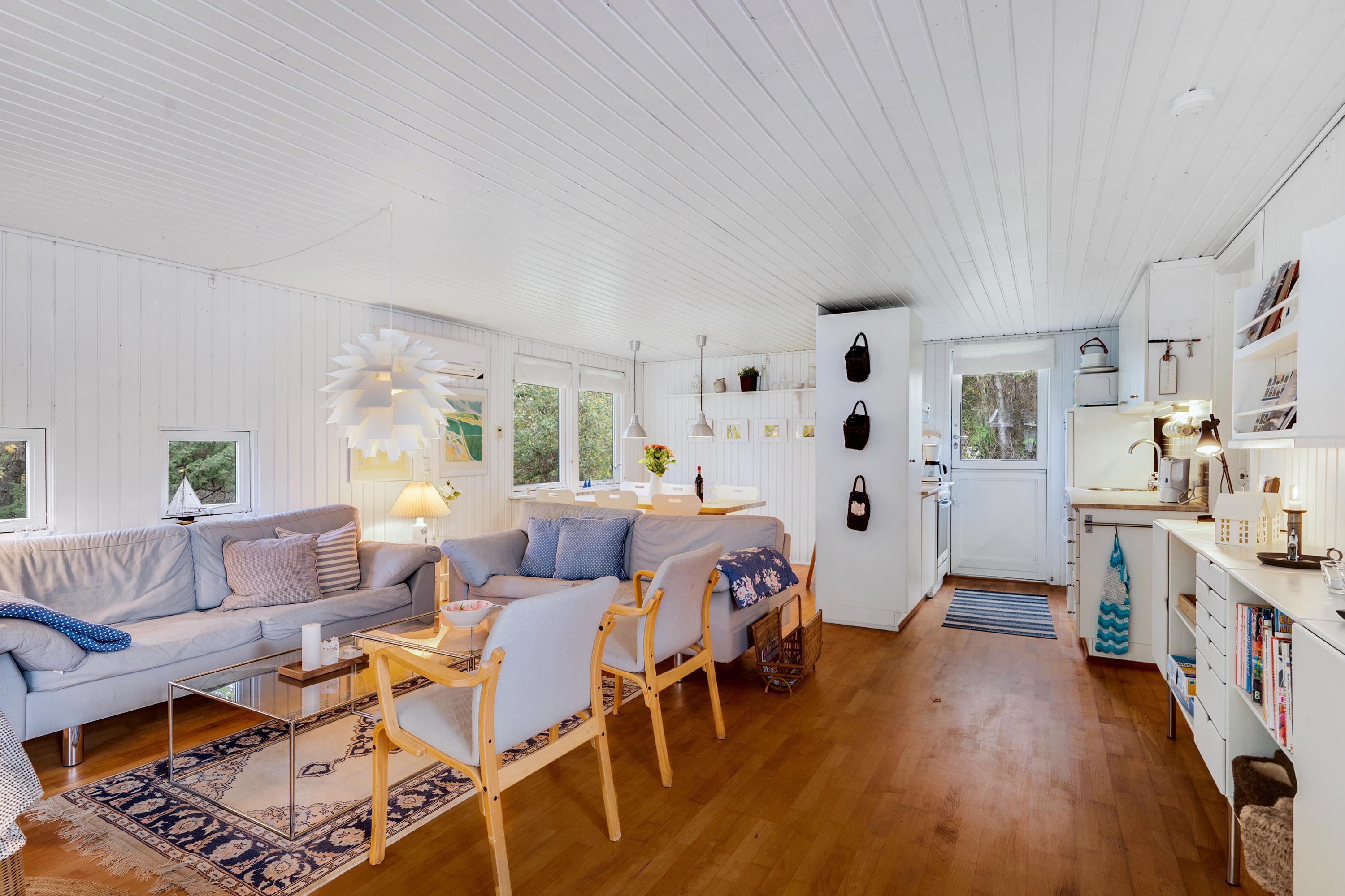 Allerede når man åbner døren og træder ind i entreen, fornemmer man den ægte sommerhusstemning der er i dette hus. Her finder man en velindrettet og rigtig hyggelig stue med gode møbler og b.la varmepumpe og brændeovn. Fra stuen er der udgang til en dejlig overdækket terrasse, hvor man i fred og ro kan sidde og spise og samtidig følge med i det rige dyreliv, der er i området. I forbindelse med spiseafdelingen, finder man det mindre men funktionelle køkken med B.la. opvaskemaskine. Husets sengepladser finder man i tre skønne værelser; heraf et med dobbeltseng, samt to værelser med to enkeltsenge i hvert. Pænt badeværelse med bruseniche og gulvvarme. TV foregår via chromecast. Huset er beliggende på en skøn og ugenert grund med stor græsplæne.