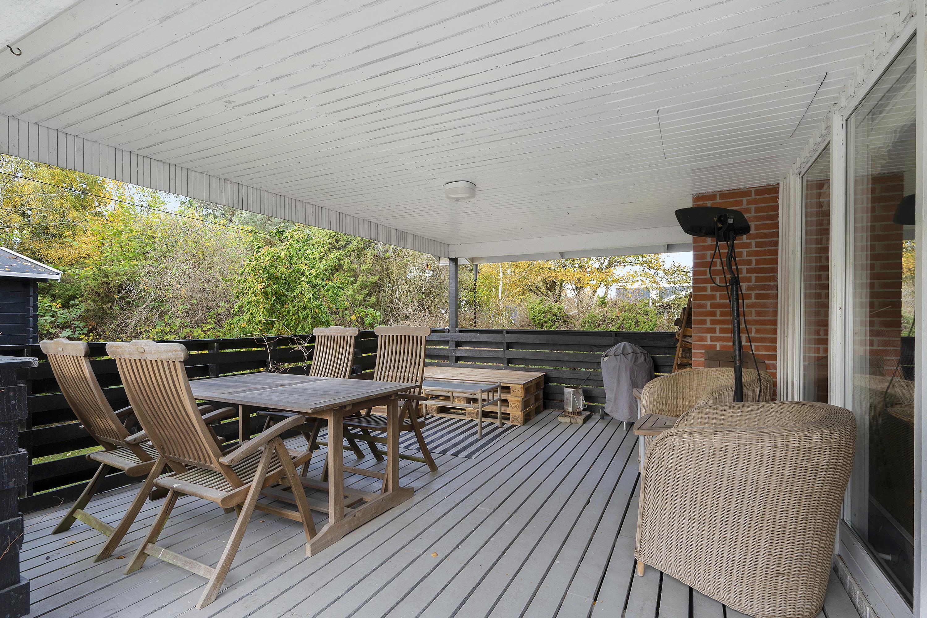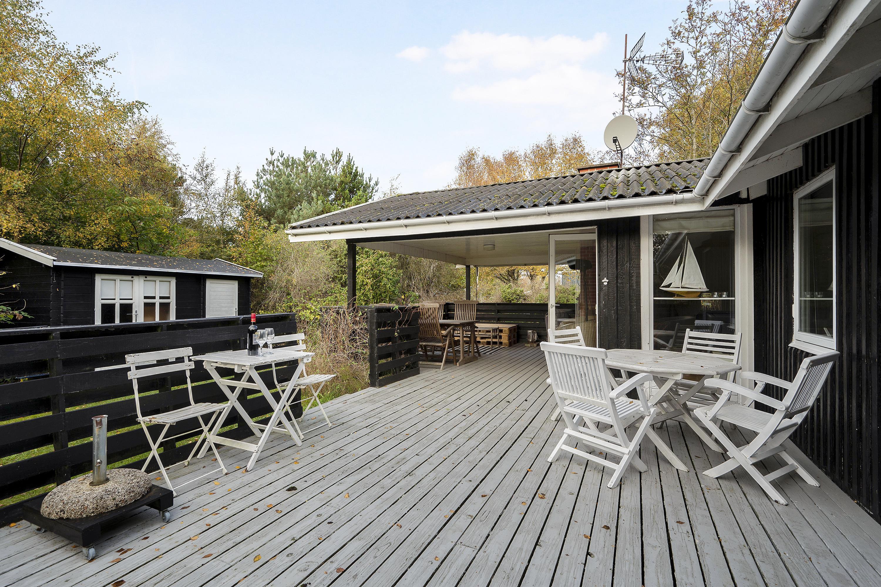 Hyggeligt sommerhus i Ebeltoft med brændeovn, overdækket terrasse og tæt på strand og skov.