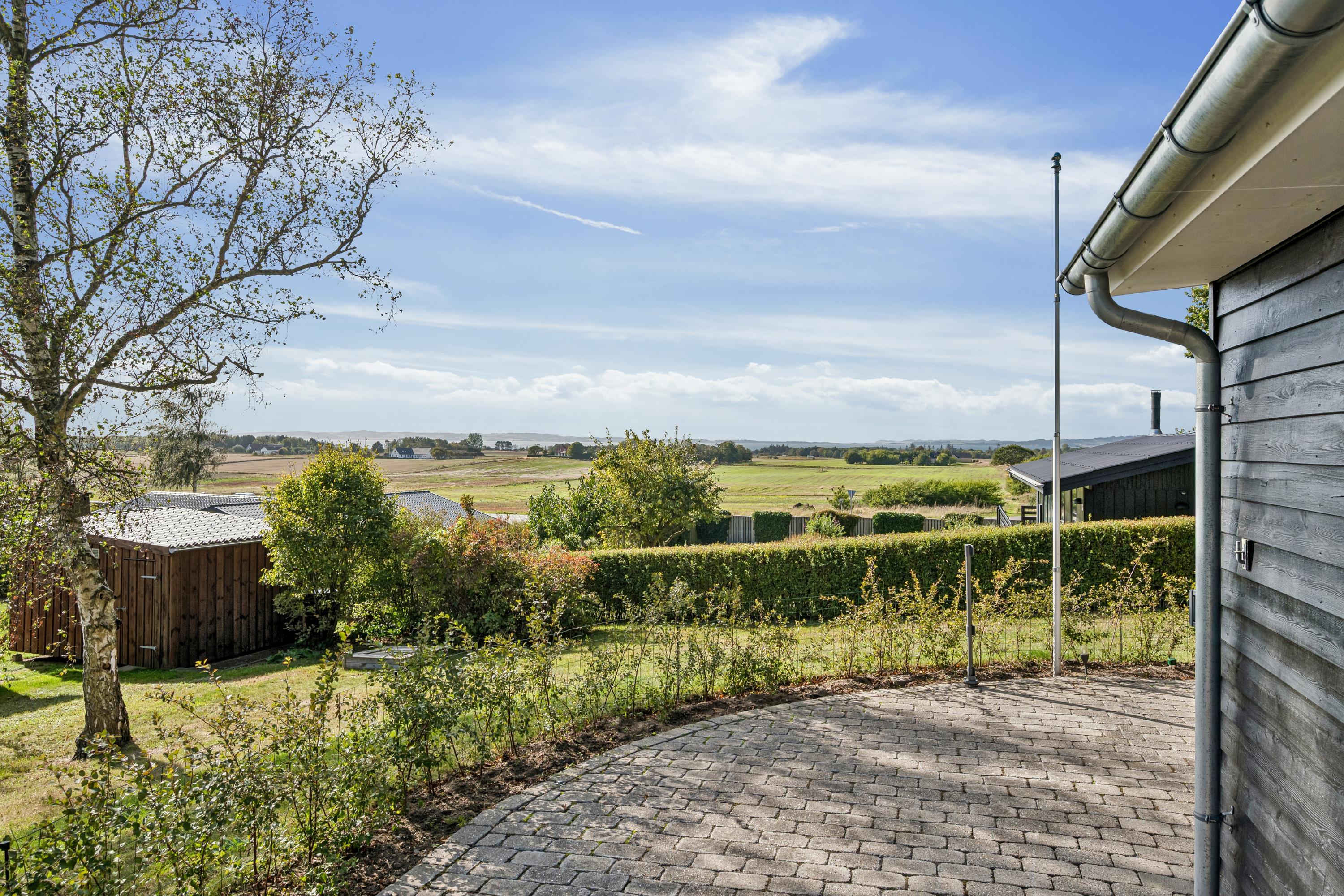 Velholdt feriehus ved Øer Strand med havudsigt, stor terrasse og hyggeligt grillhus nær Ebeltoft.