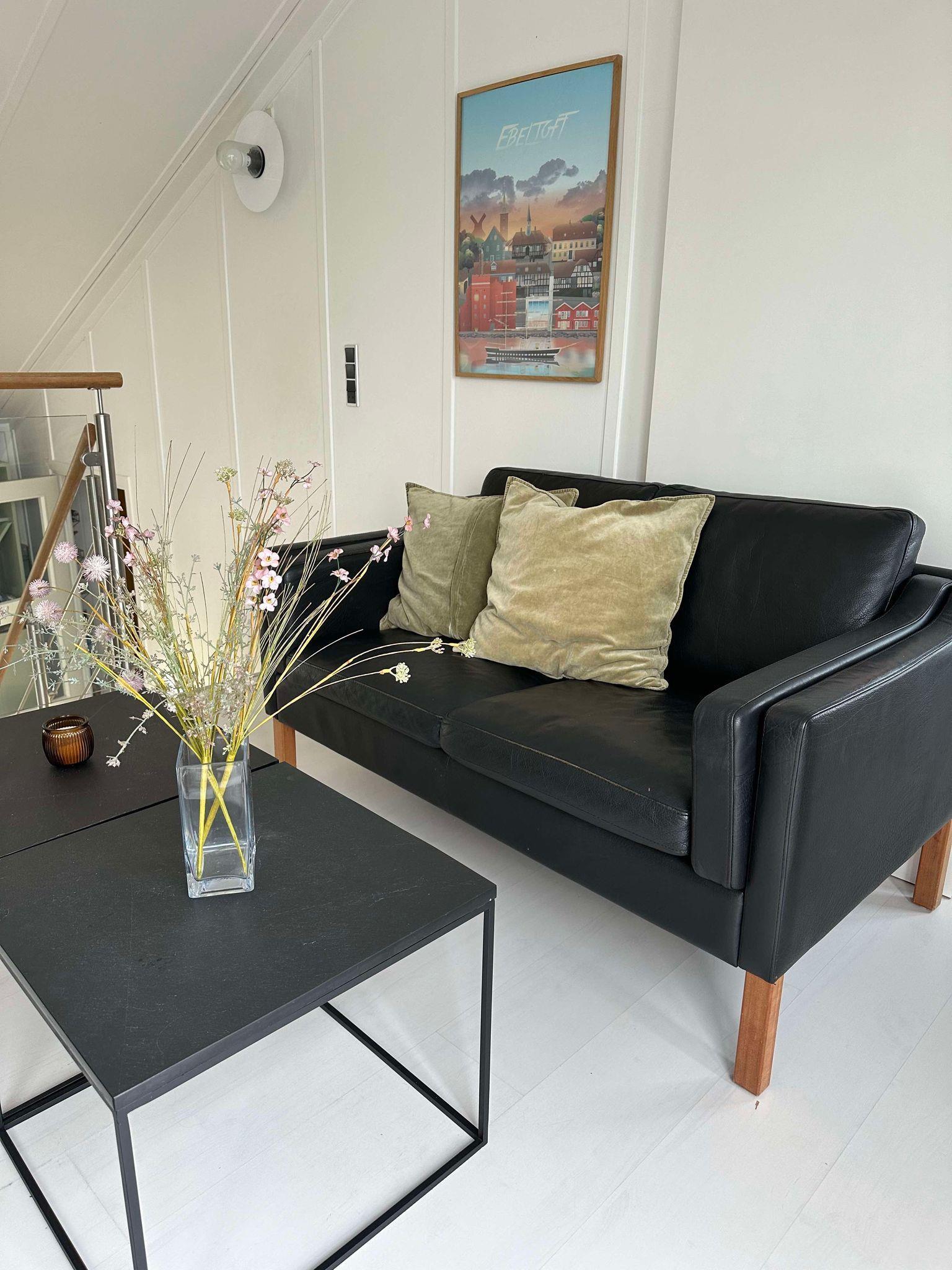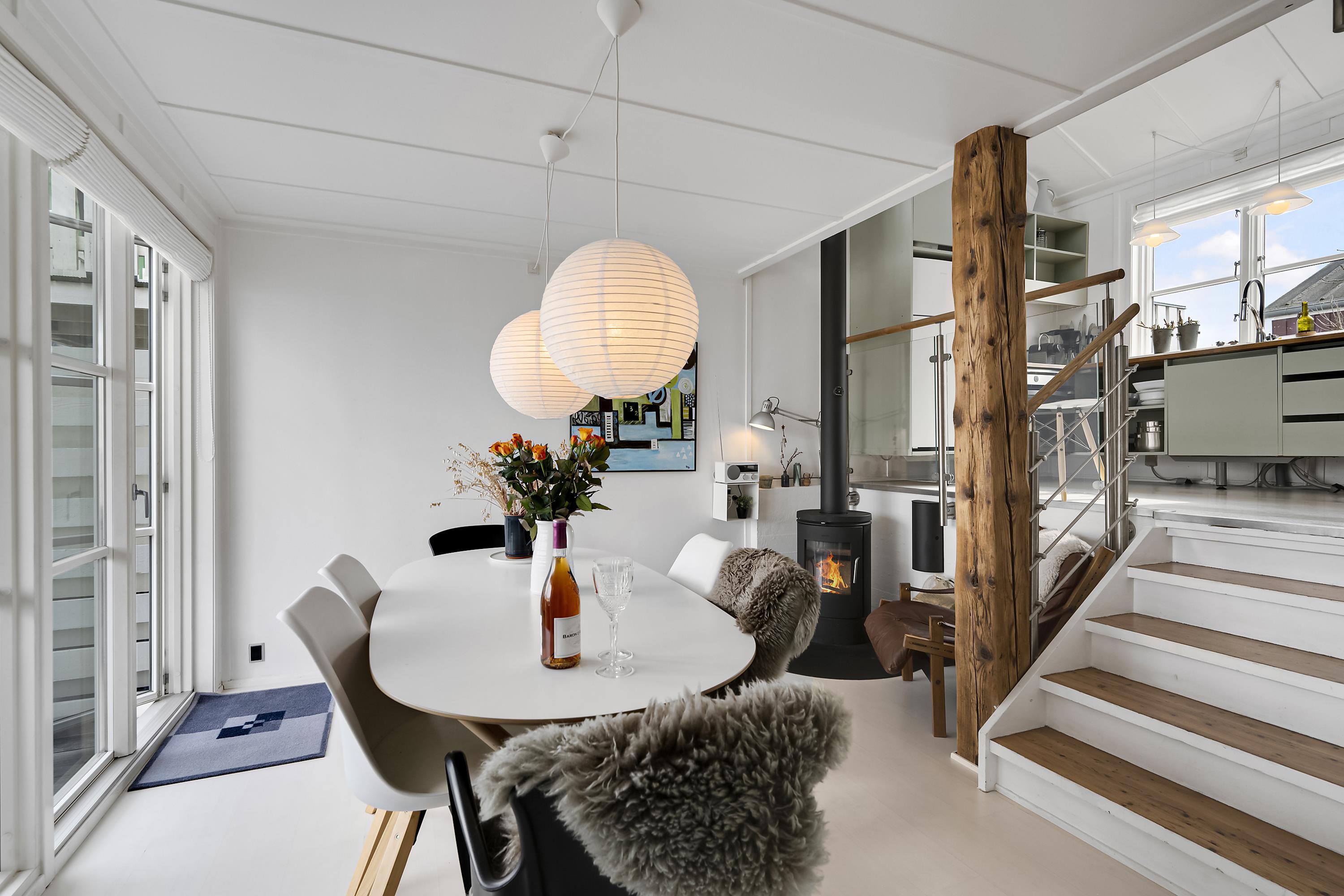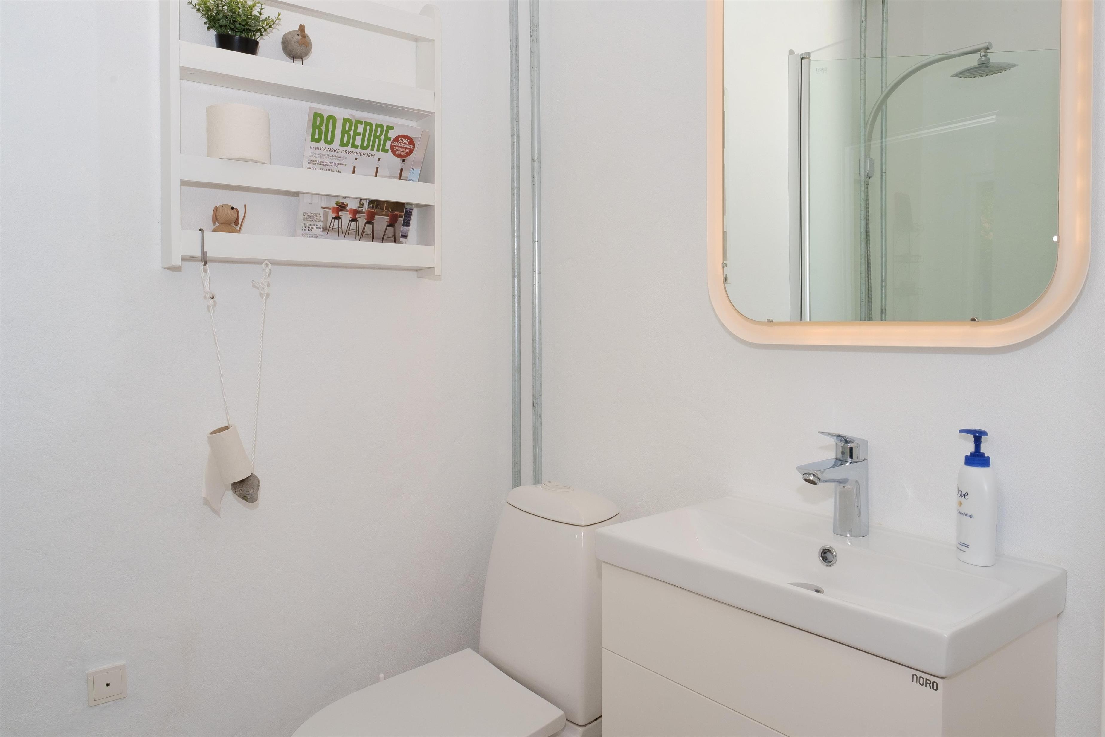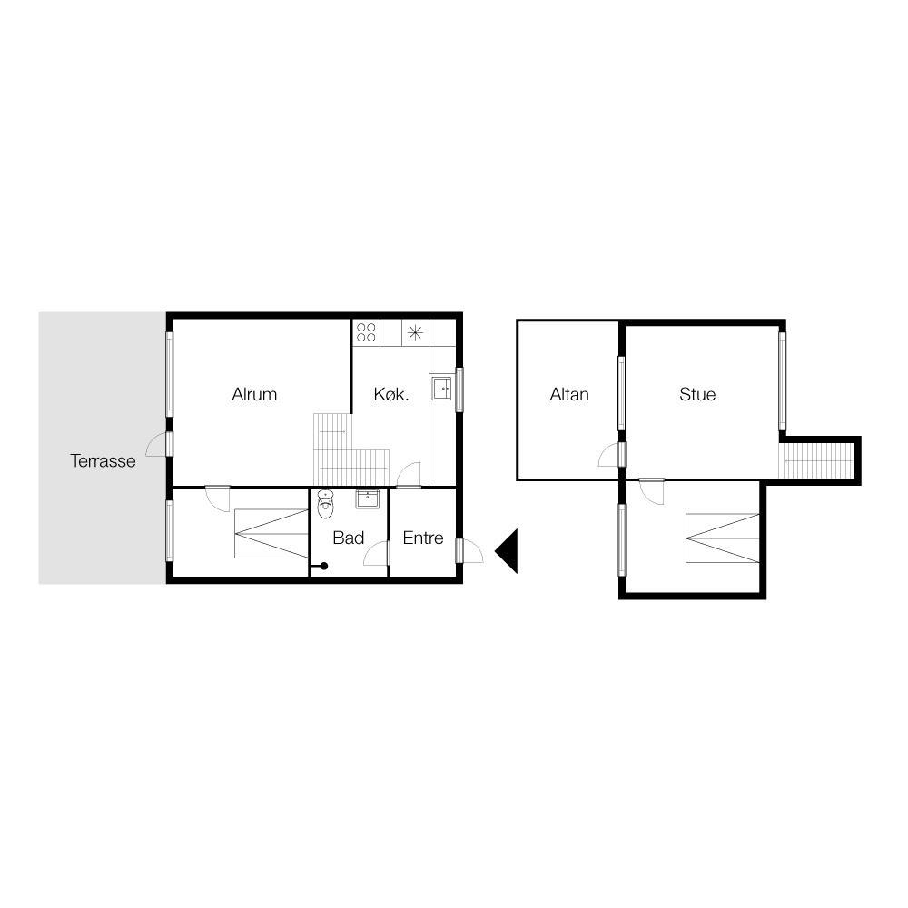Lyst og hyggeligt alrum i åben forbindelse med køkken og med udgang til terrassen. Her er spiseafdeling til 5 personer og et kvart plan op til flot, veludstyret køkken med keramiske kogeplader, ovn, køle-/fryseskab og opvaskemaskine. Dejlig opholdsstue på 1. sal med sofa og lænestole og udgang til altan, samt radio. De 5 sovepladser fordeler sig på 1 soveværelse i stueplan og et værelse på 1. sal med to enkelt senge og en køjeseng ovenover. Dejligt, regulært badeværelse i stueplan med bruseniche og gulvvarme. Der er mulighed for streaming via TV´et.