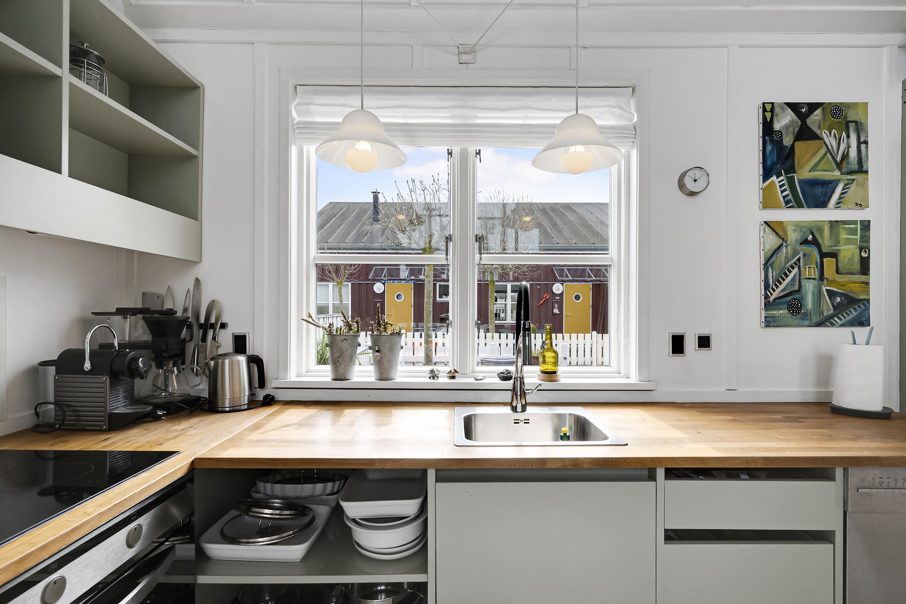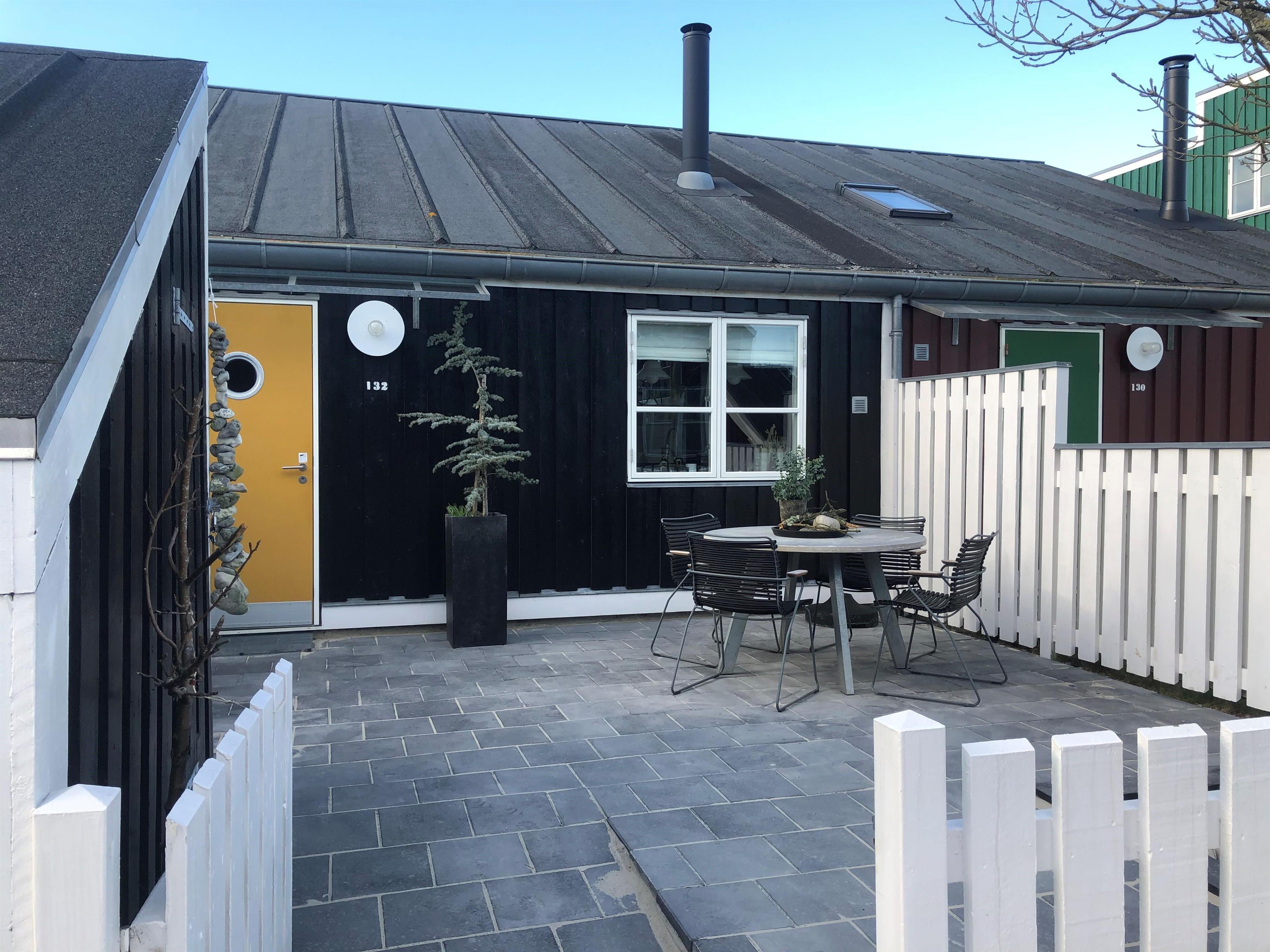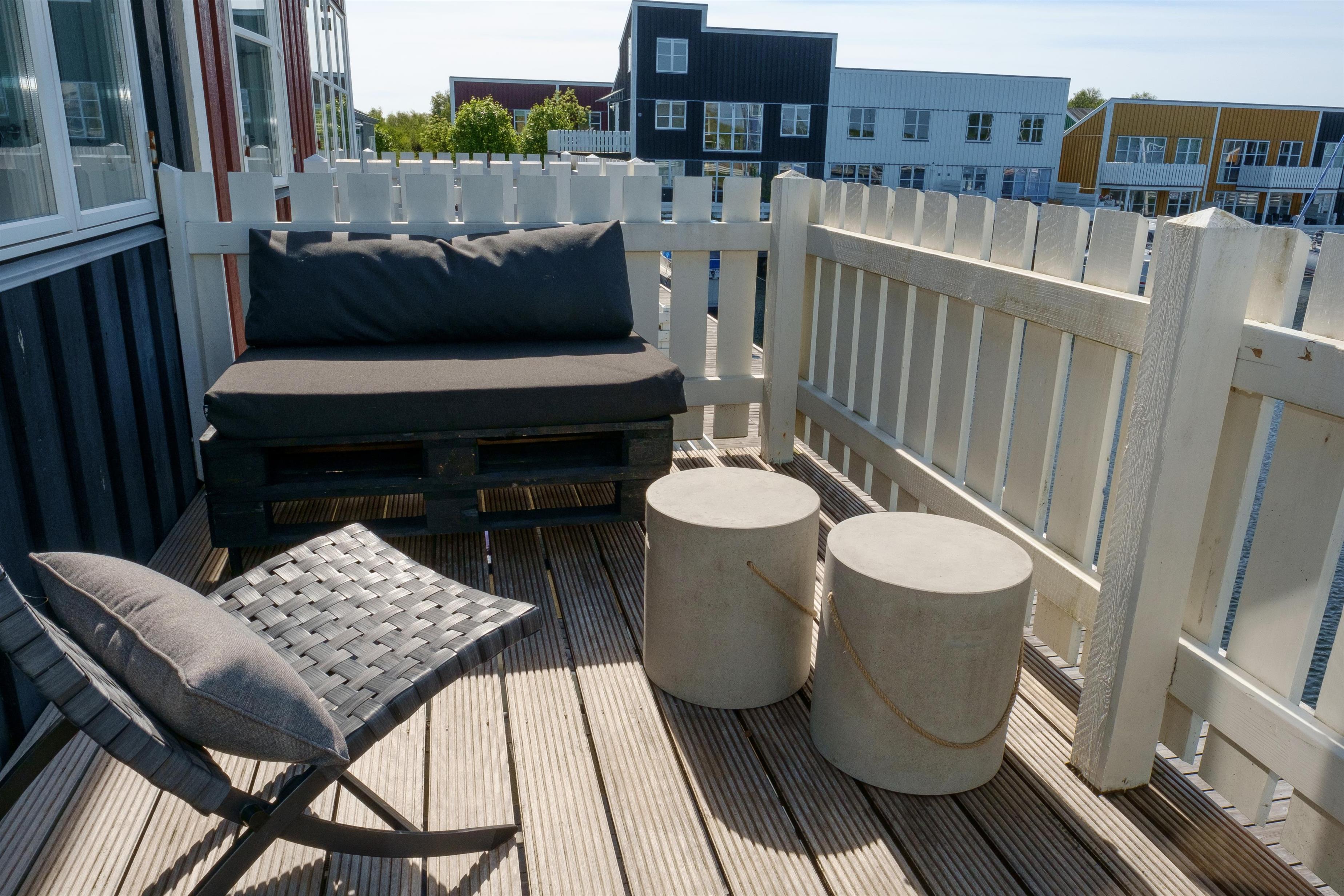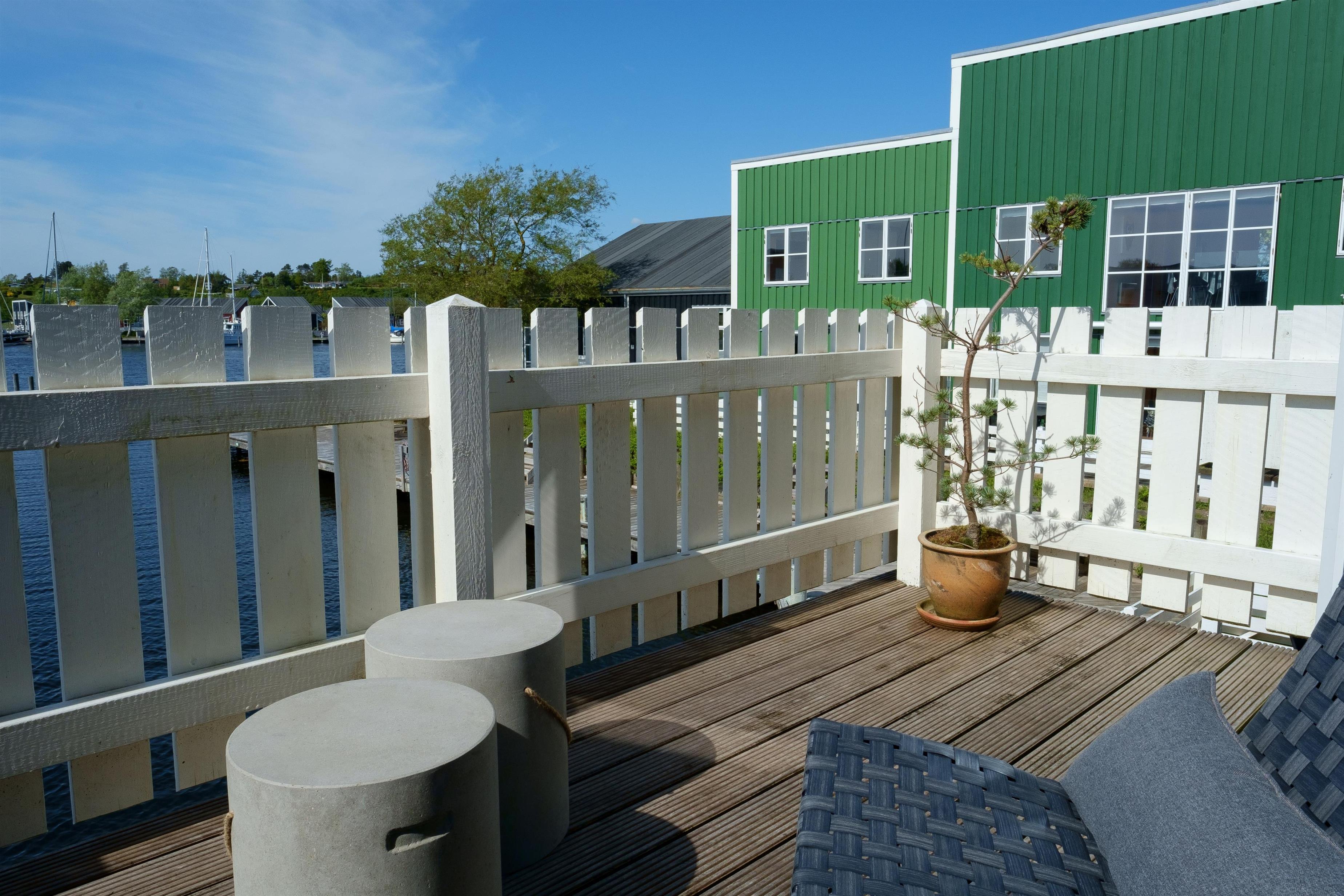 Velindrettet ferielejlighed i 2 plan beliggende i det naturskønne Øer Maritime Ferieby og med dejlig udsigt til bådpladserne fra den østvendte træterrasse og alrum samt fra altan og opholdsstue på 1. sal. Der er havemøbler, liggestole, parasol og grill. Desuden har huset en skøn, flisebelagt gårdhave ved indgangsdør mod vest.