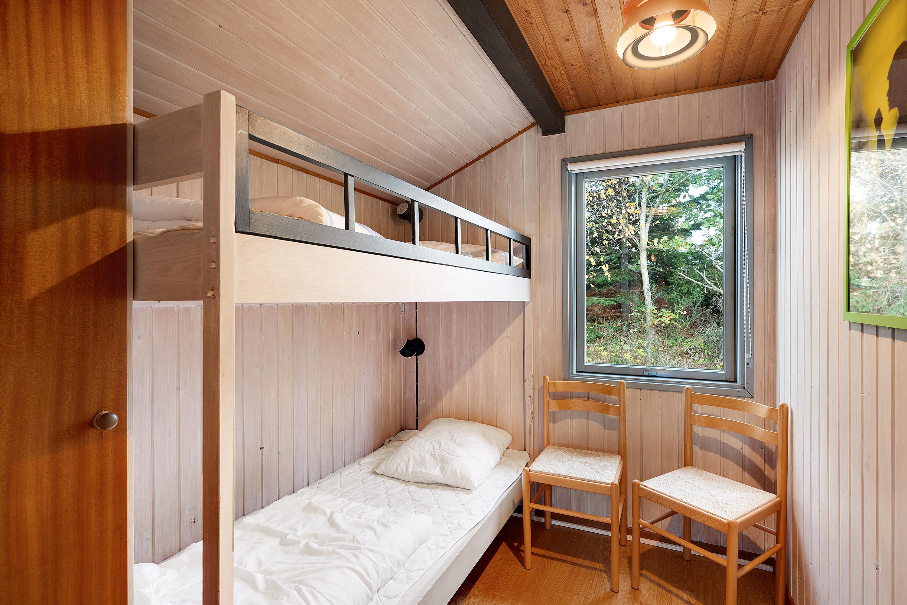 Ikke langt fra Ebeltoft finder man dette ældre, men rigtig hyggelige sommerhus. Huset indeholder en skøn lys stue med udgang til terrasse. I forbindelse med stuen finder man det lille men funktionelle køkken, hvorfra der også er udgang til en lille terrasse. Husets sovepladser fordeler sig på tre værelser; heraf et værelse med dobbeltseng, et værelse med to enkeltsenge og et værelse med en køjeseng. Pænt badeværelse med bruseniche. Til de små feriegæster er der en barnestol og en barneseng. Der er internet i huset og mulighed for at se TV og streamingtjenester via Chromecast/Appel-TV. Huset er beliggende på en grund med stor græsplæne som er velegnet til leg og boldspil og til de små feriegæster er der en sandkasse.