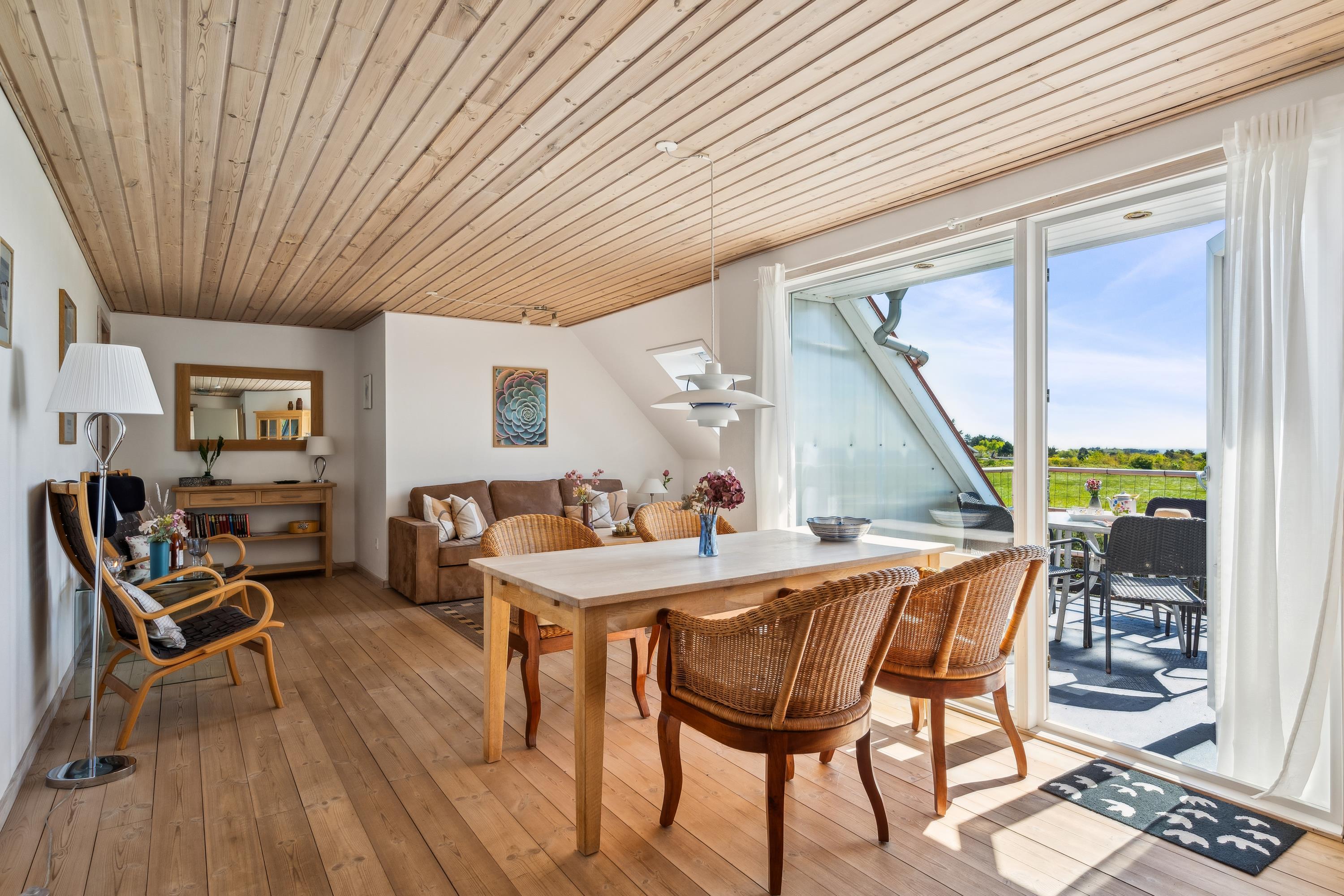 Fire lyse ferielejligheder på Øer Strand med panoramaudsigt over Kattegat og gode faciliteter til familier.