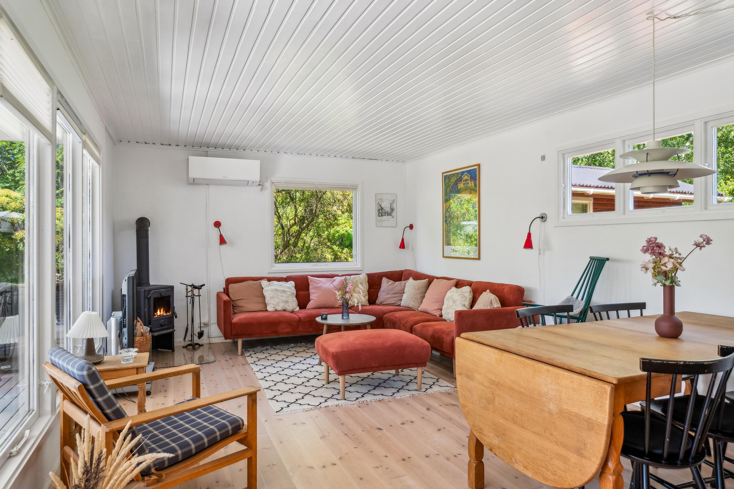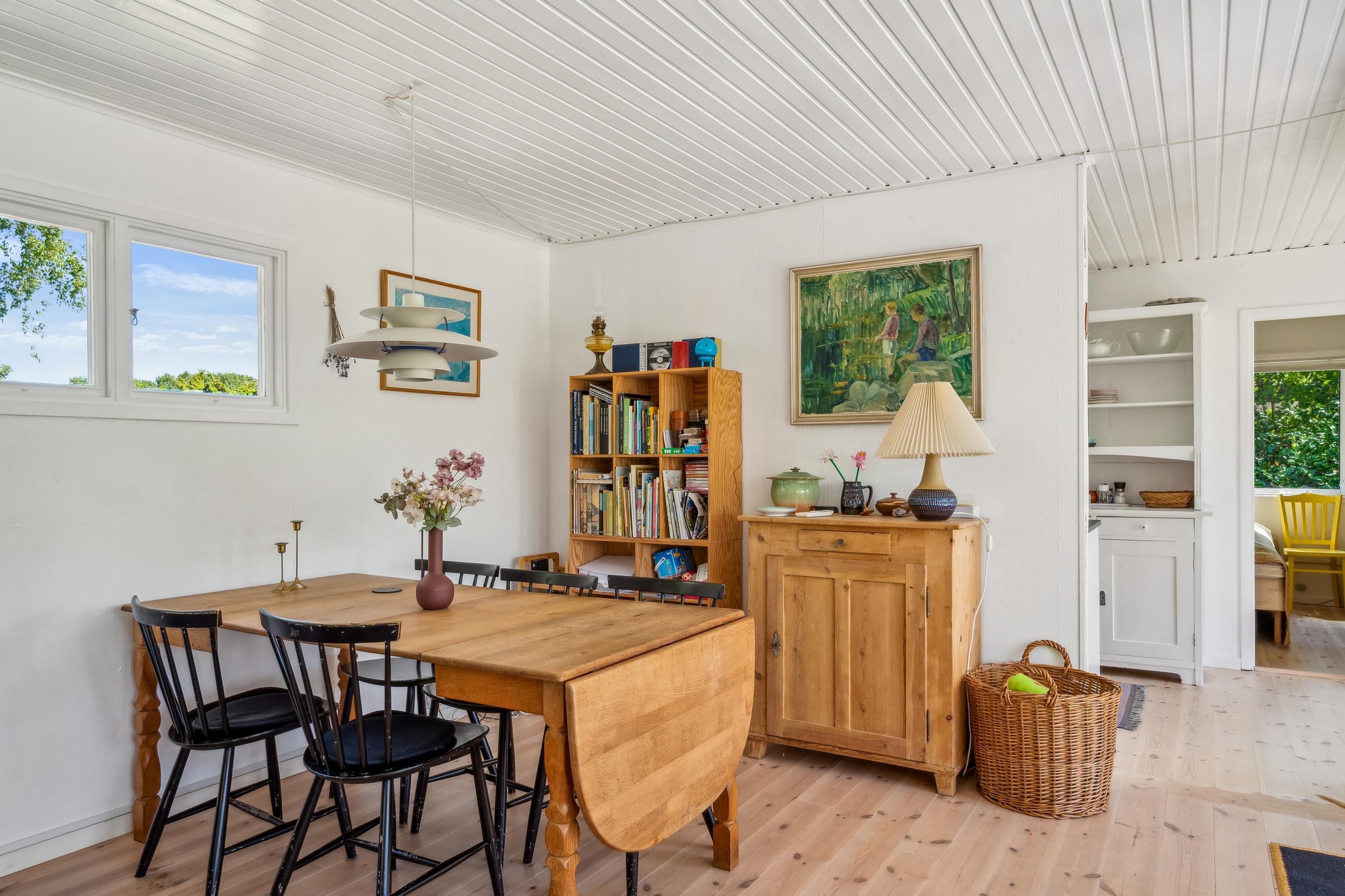 Dette hyggelige og klassiske sommerhus ligger i det attraktive område ude på øerne ved Ebeltoft – et fredeligt og naturskønt hjørne af Djursland, hvor de små, rolige veje, duften af fyrretræer og nærheden til kysten skaber den helt særlige feriestemning, mange forbinder med sommer i Ebeltoft.