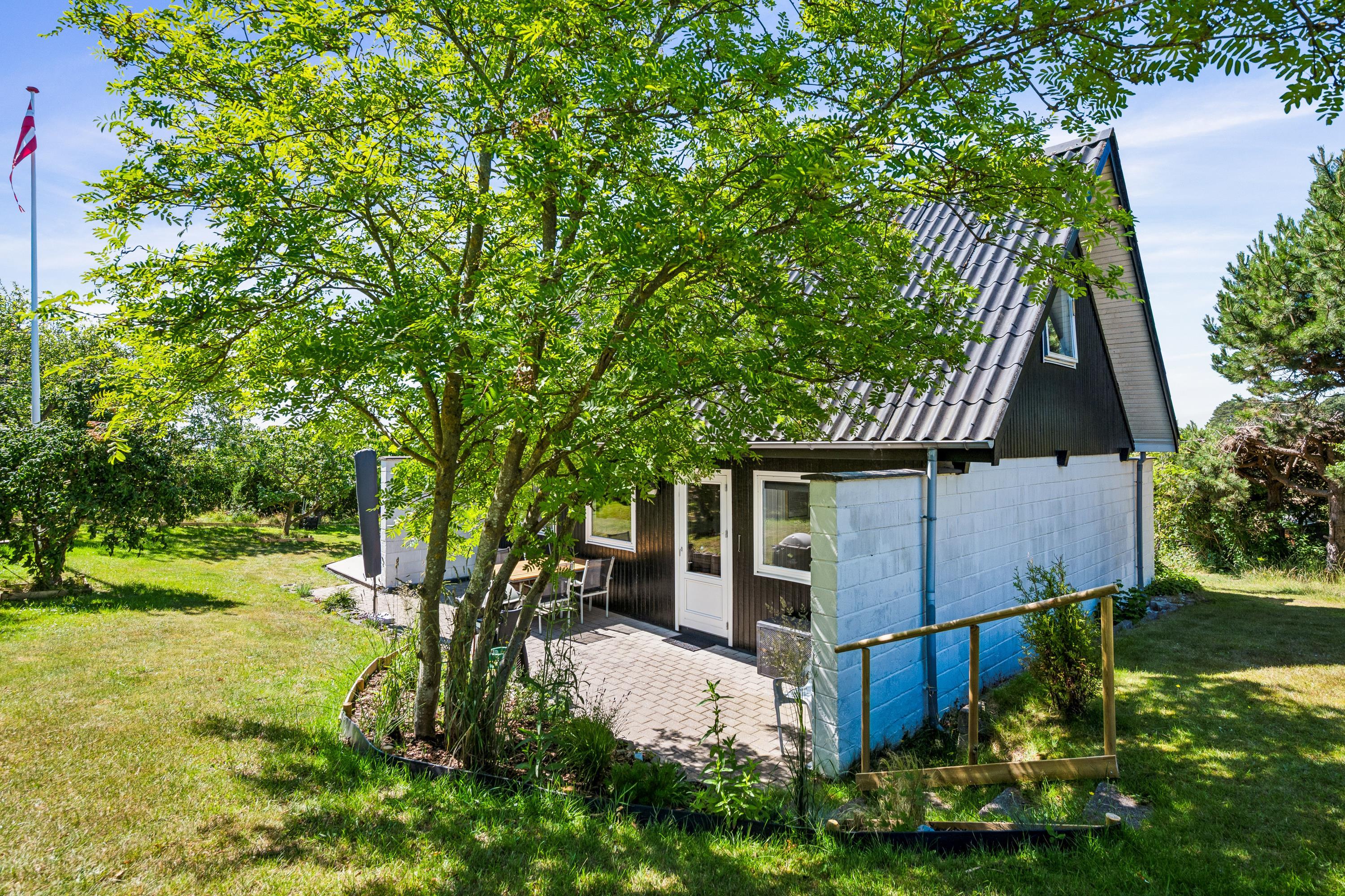 Velholdt feriehus tæt på Ebeltoft med smuk udsigt, terrasse og stor have til udendørs aktiviteter.
