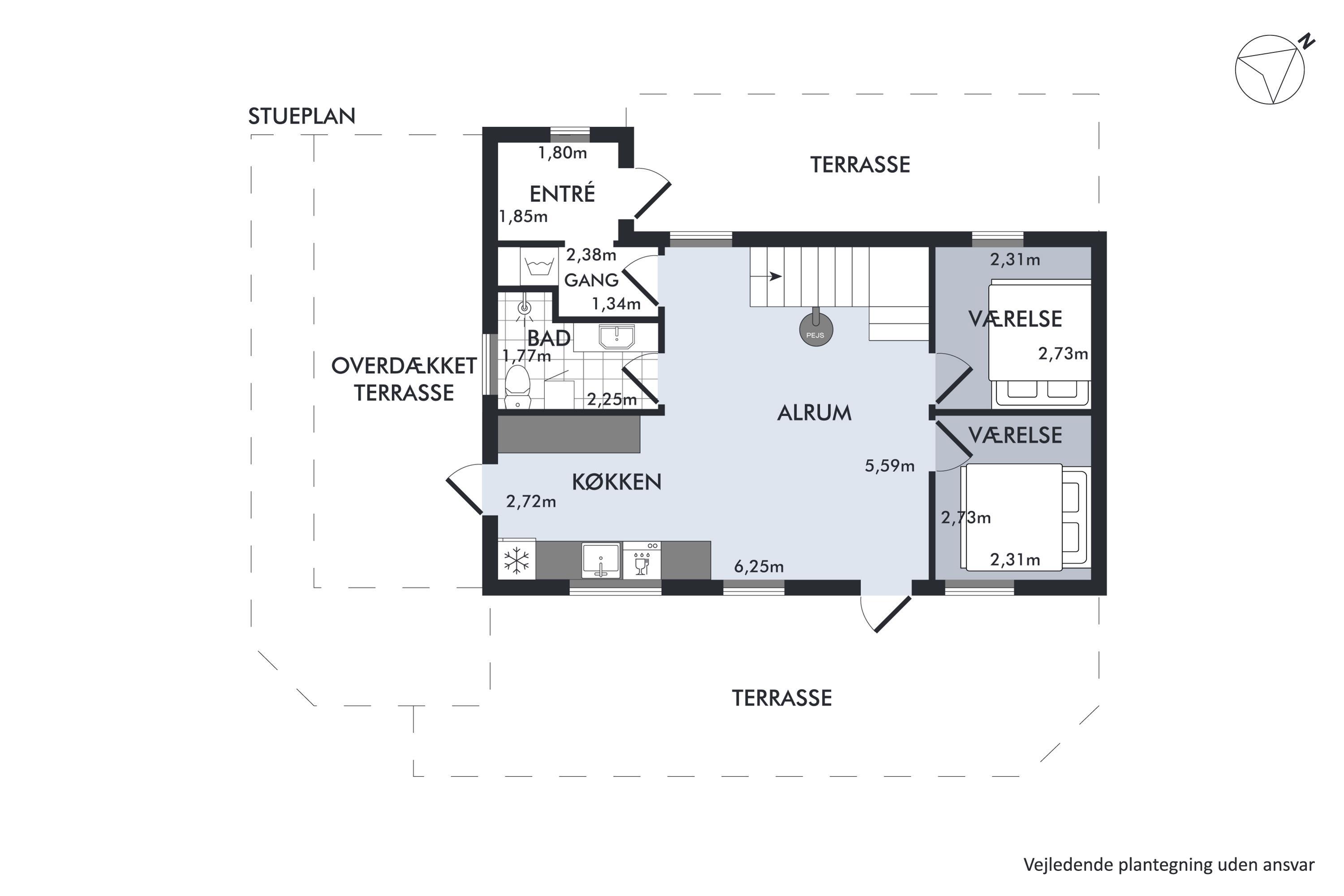 Afstand indkøb1,2 km